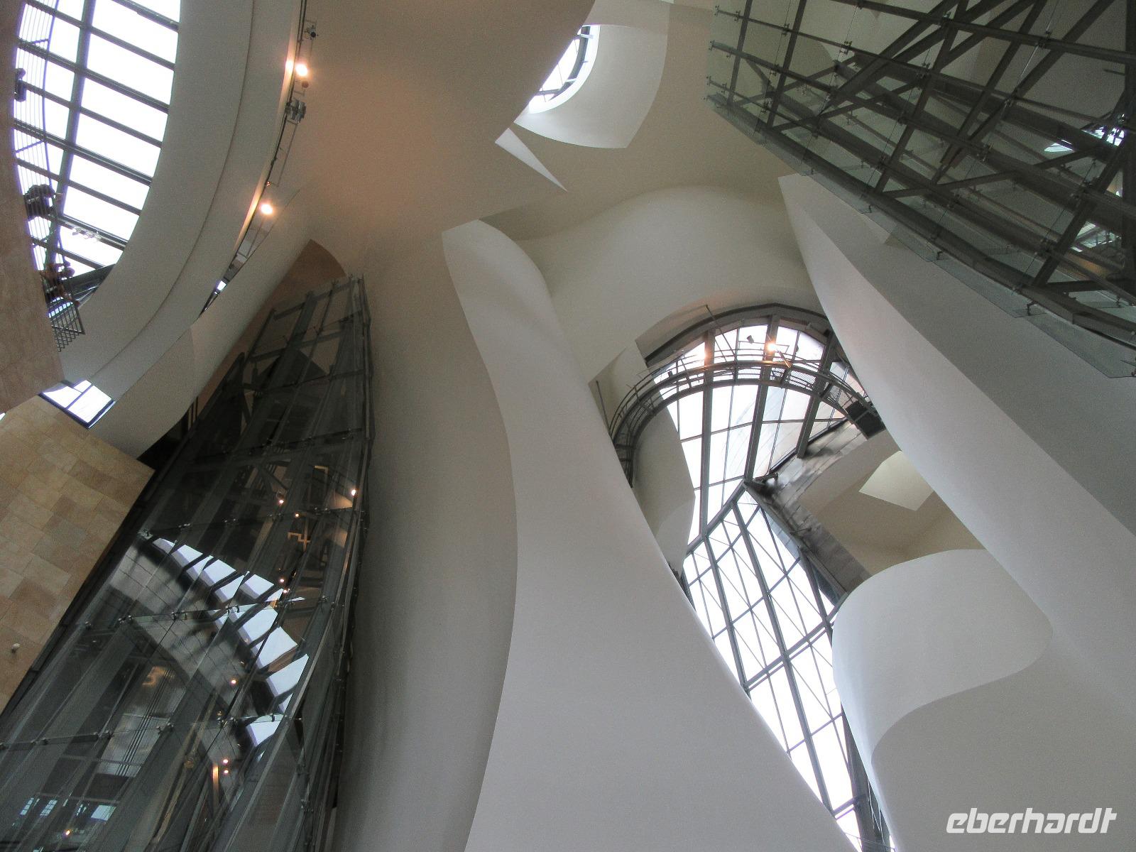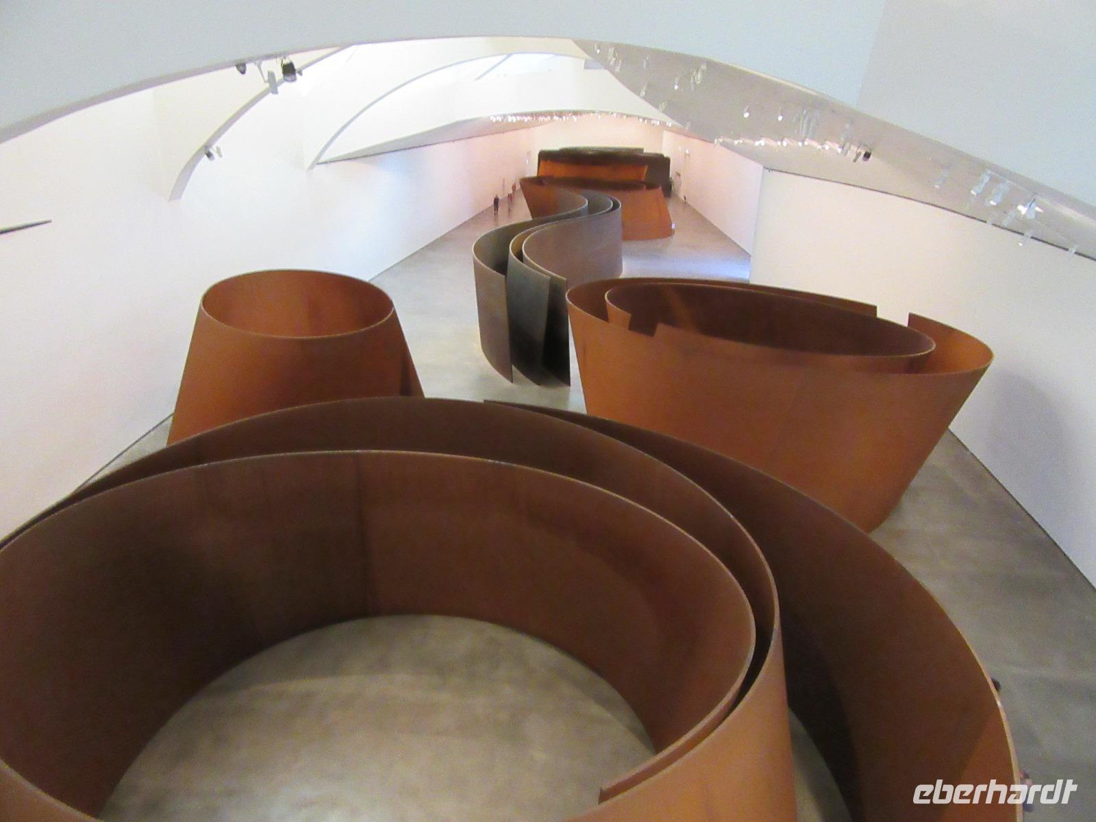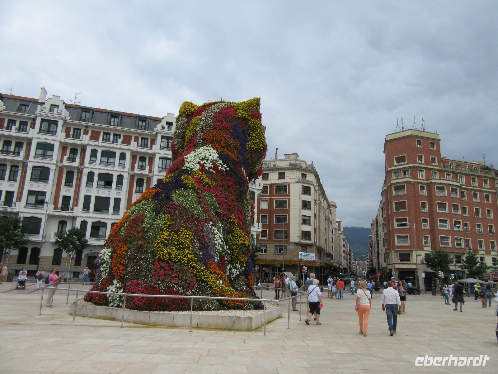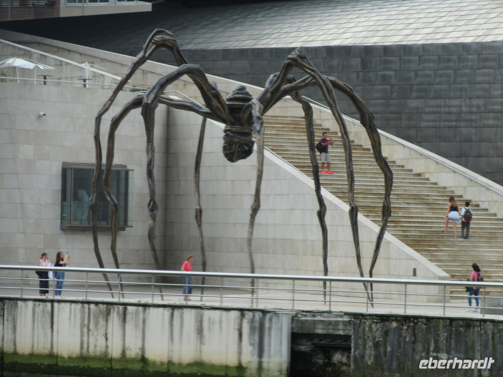 Nach diesem Bummel fuhren wir zum Guggenheim-Museum, wo uns die Titan-Lamine mit ihren Formen fasziniert haben. Außen fanden wir die gigantische Spinne „Maman" (Mutter) und den „Der Große Baum und die Augen", nicht zu vergessen, den hübschen Blumen-Hund „Puppy". Kaum drin, haben wir die Bedeutung der verschiedensten Vorstellungen verstanden und gewusst, warum das Museum die Form eines Schiffes hat.