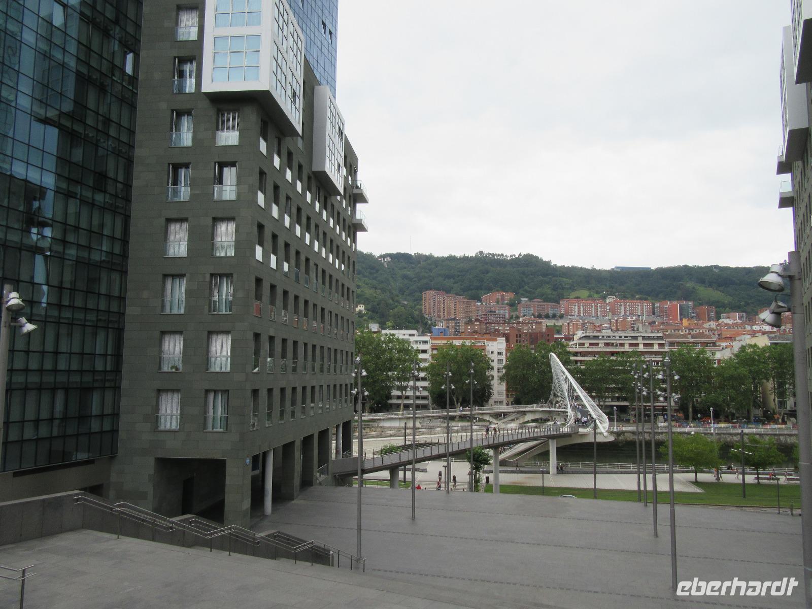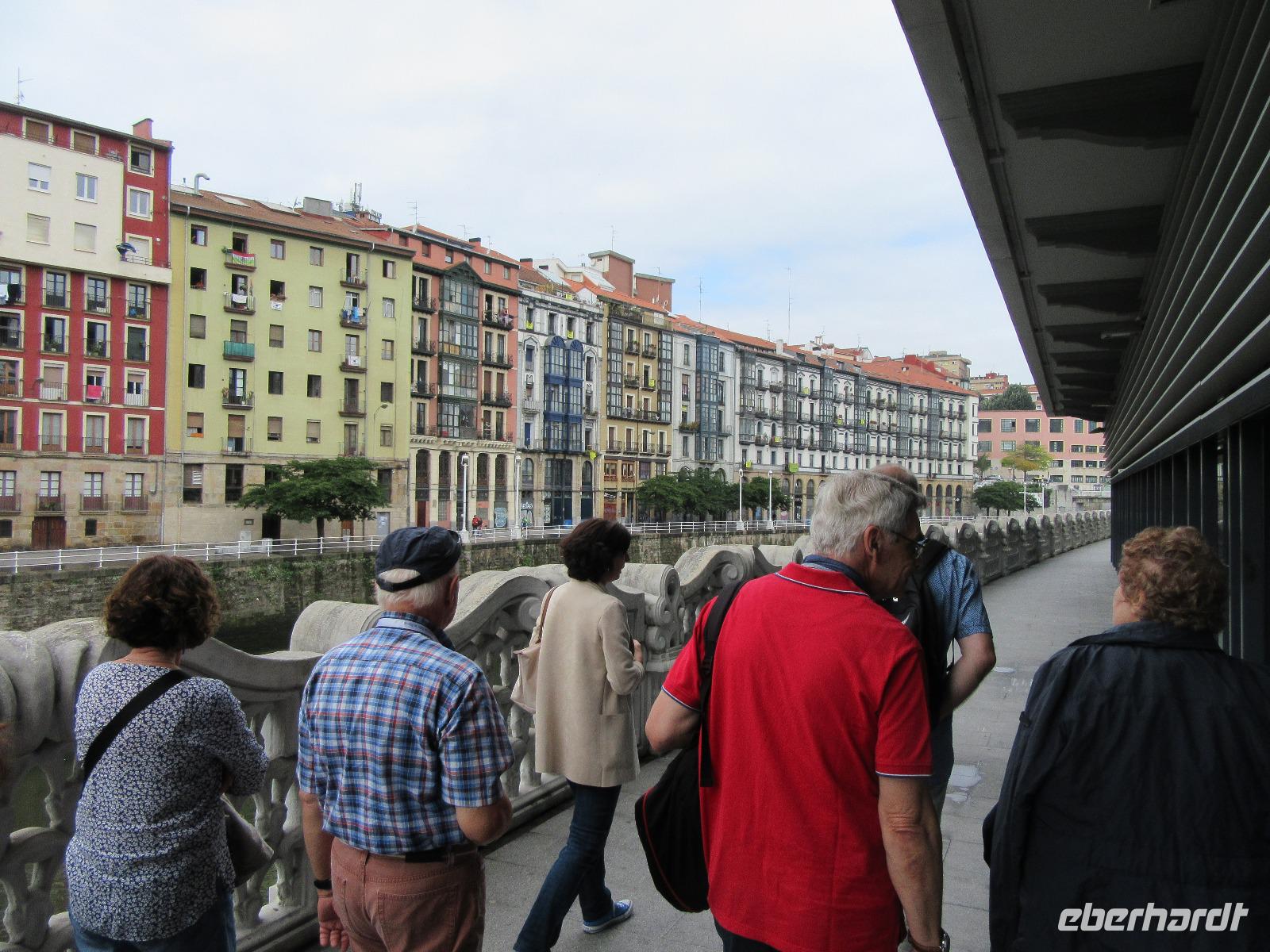 Bilbao bedeutet „Zwei Ufer", weil es eine gute Verbindung zwischen der Altstadt und der Neustadt hat. Es ist bewundernswert, wie die neuen Gebäude uns die Altstadt durch ihre Glas-Fassaden zeigen.