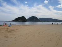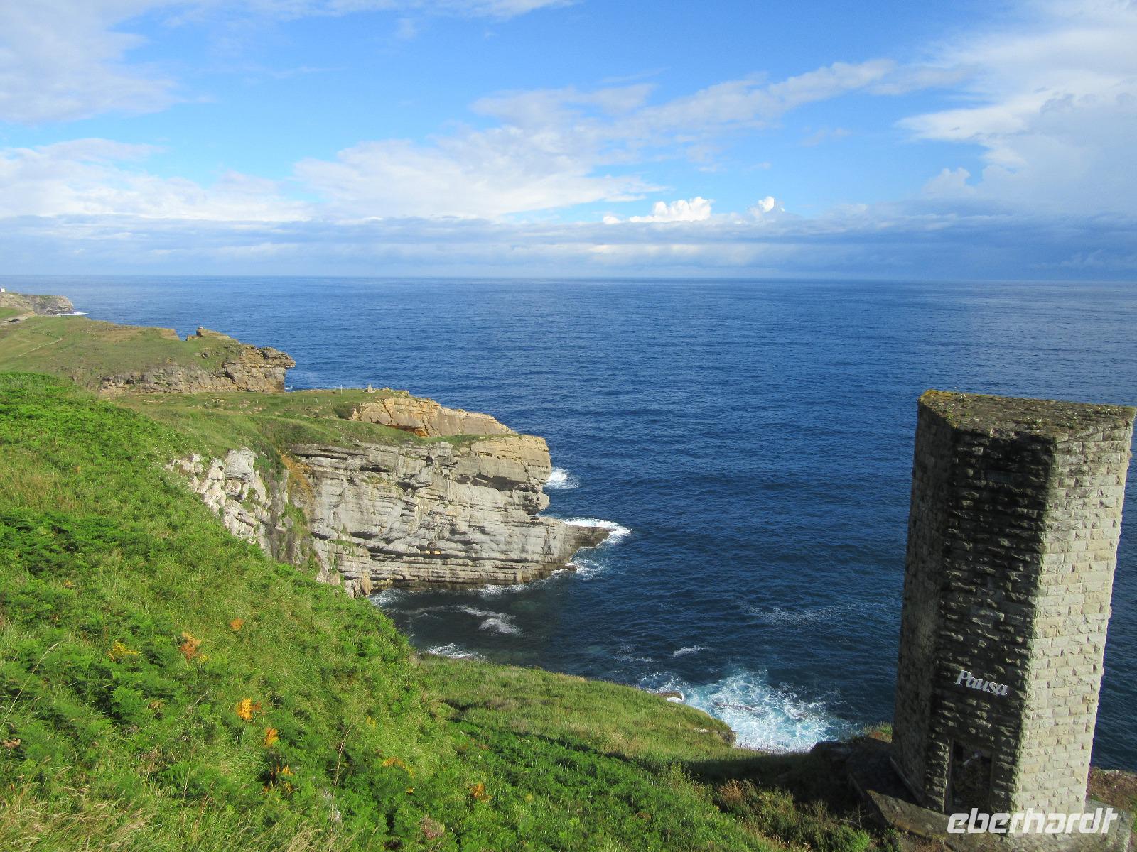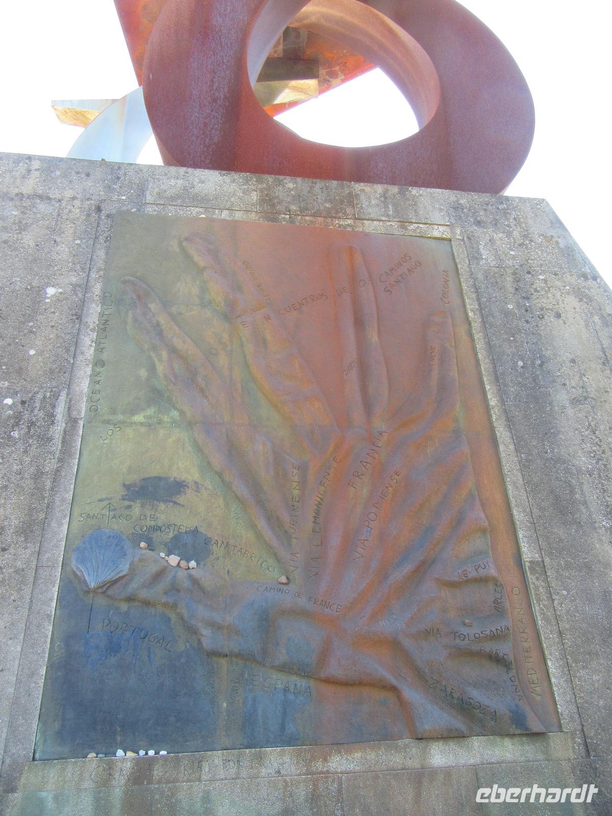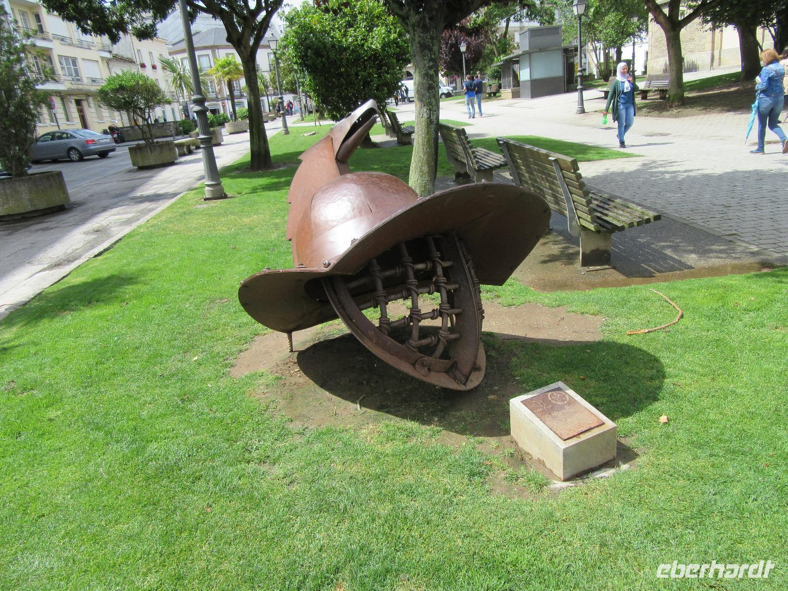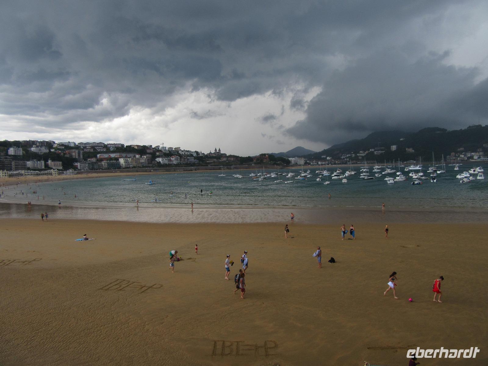 Angekommen in San Sebastián, haben wir uns vom Concha-Strand überraschen lassen. Dieser Strand heißt „La Concha", weil er die Form einer Muschel hat. Wir sind am westlichen Teil des Strandes ausgestiegen und bis zum Wind-Kamm gelaufen. Diese Stahl-Elemente wurden 1976 in den Stein bei Eduardo Chillida gezogen und wurden Pablo Picasso, Salvador Allende und Pablo Neruda gewidmet.