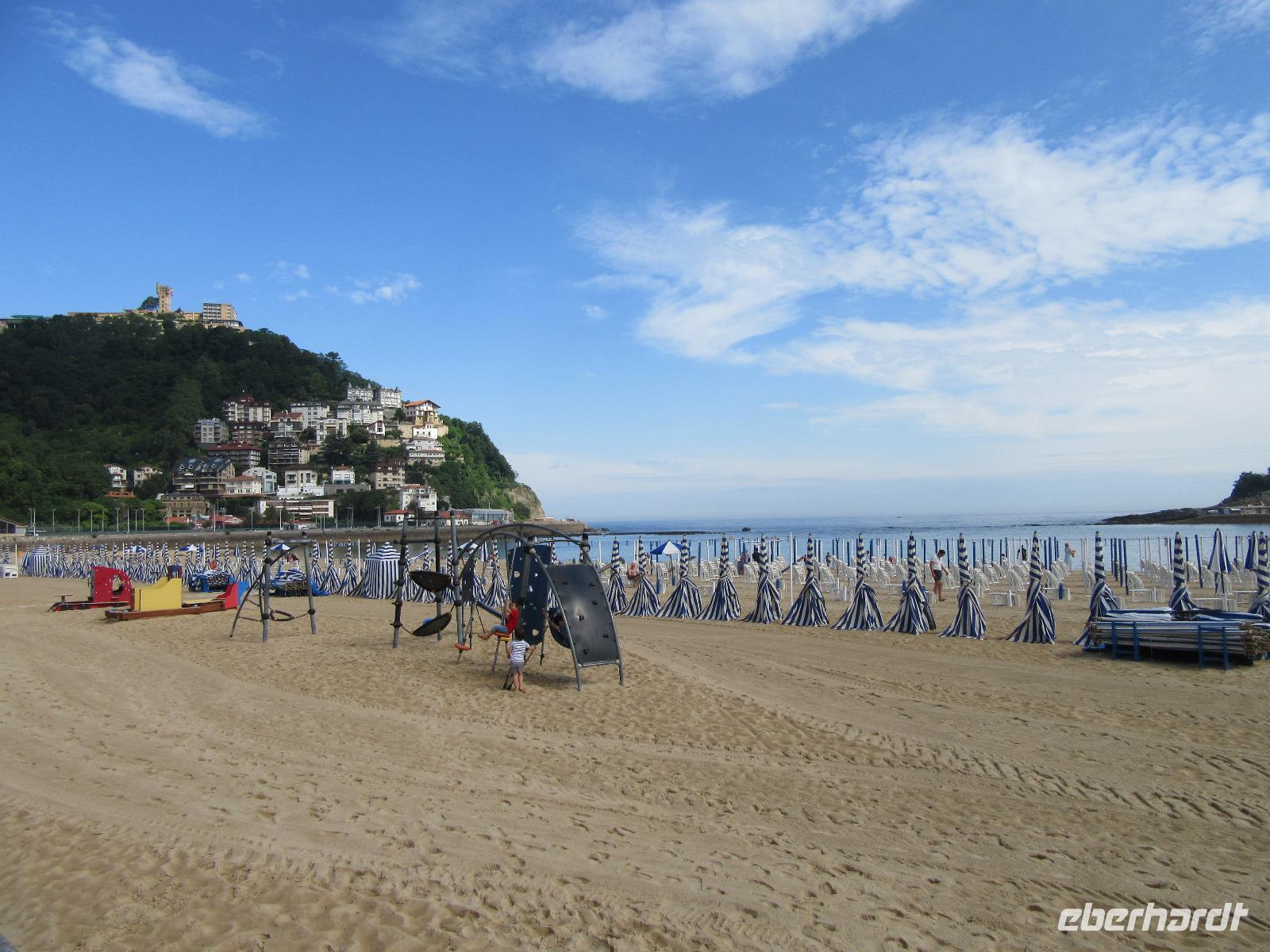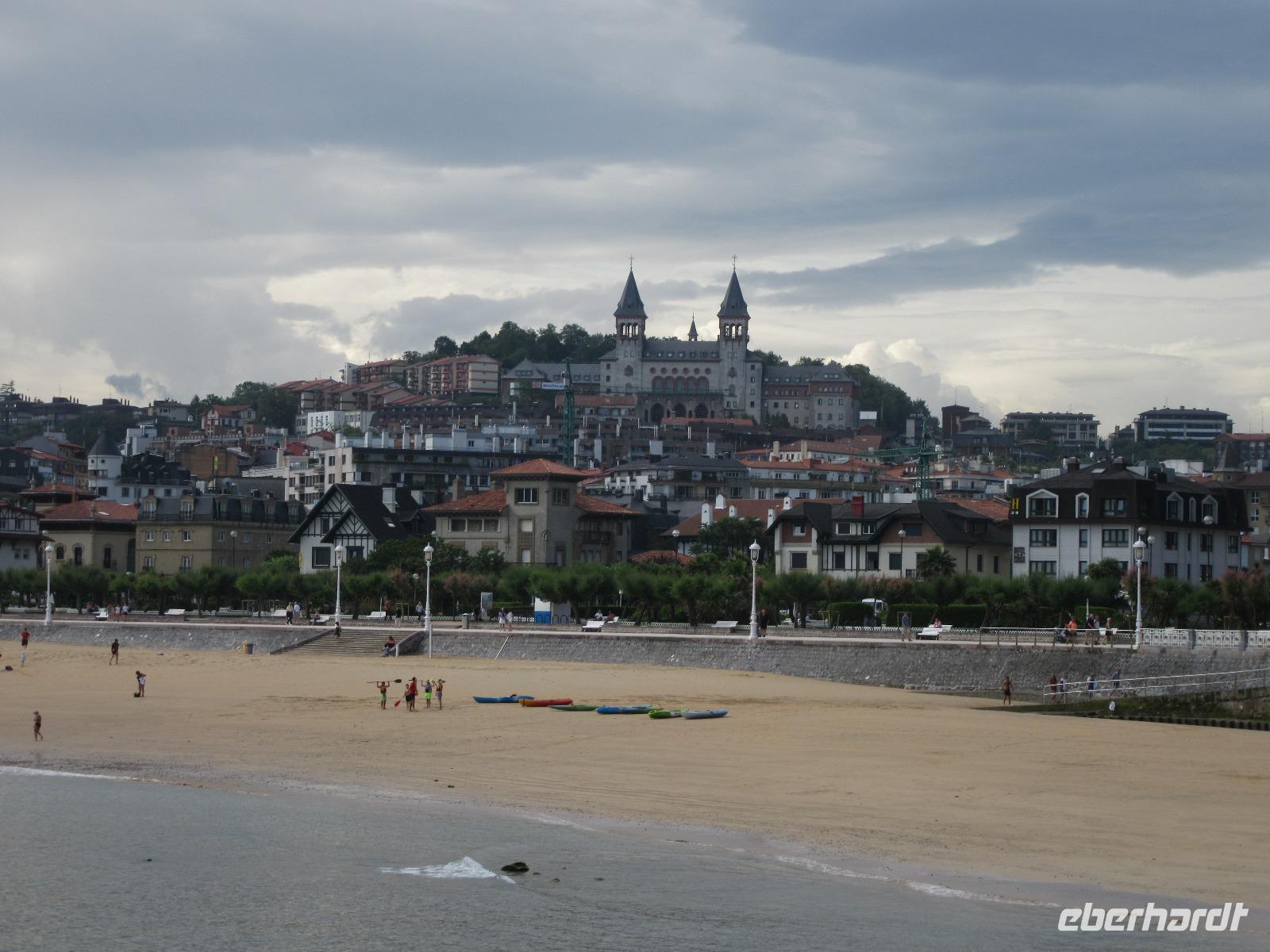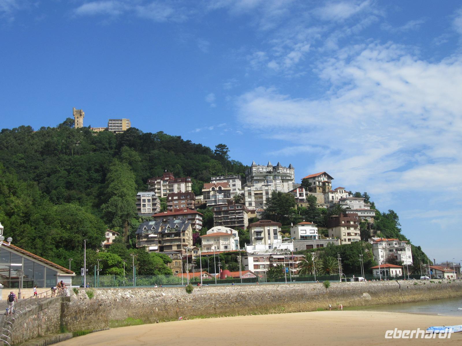 Auf unserer linken Seite sahen wir den Berg Igueldo mit Seilbahn und Leuchtturm, wo wir einen Foto-Stopp gemacht haben. Auf unserer rechten Seite lag der Berg Urgull mit der Bastion „La Mota" und dem Monument „Heiliges Herz Christus", der uns an die Christus-Statue auf dem Corcovado in Río de Janeiro erinnerte.