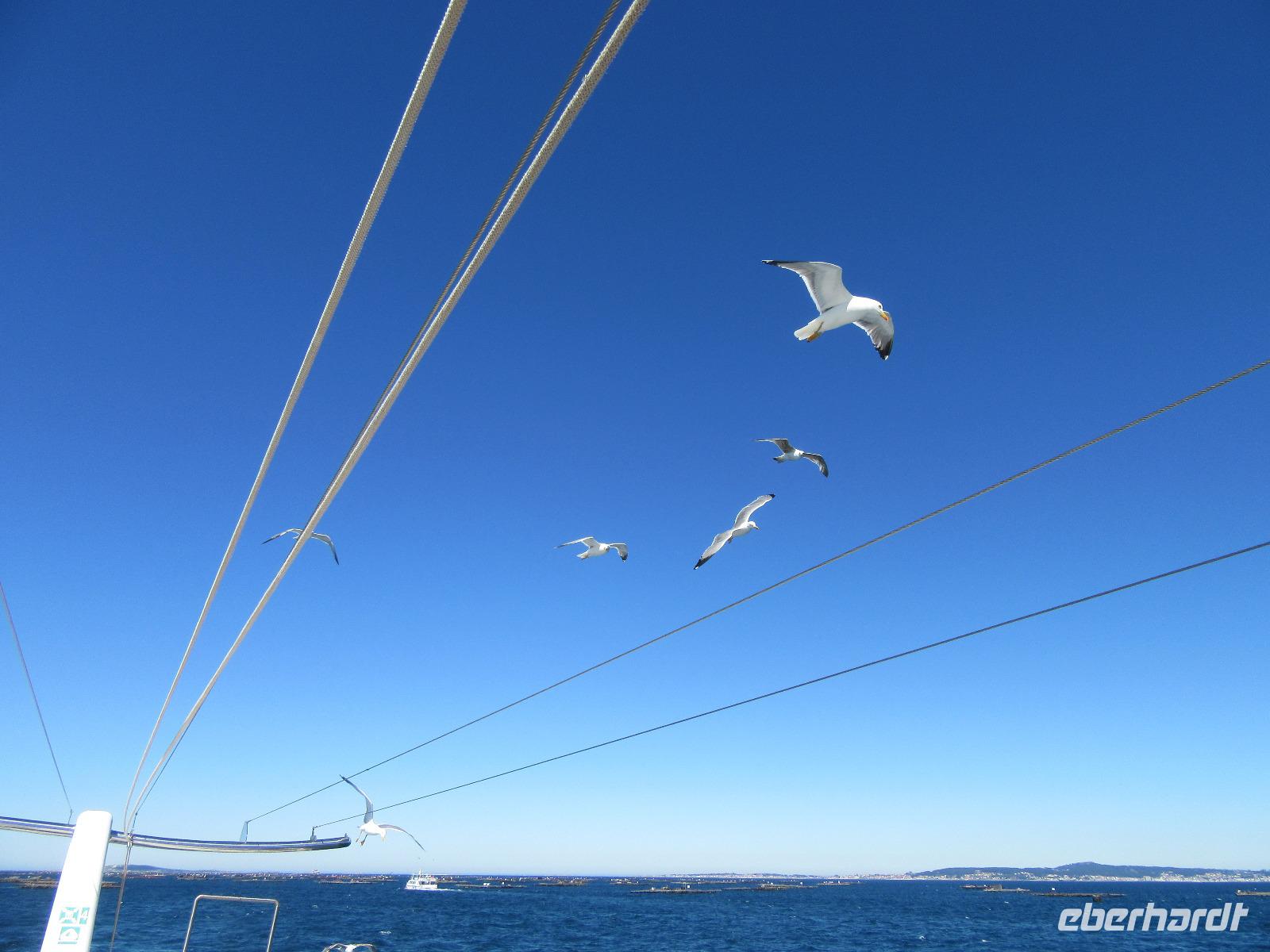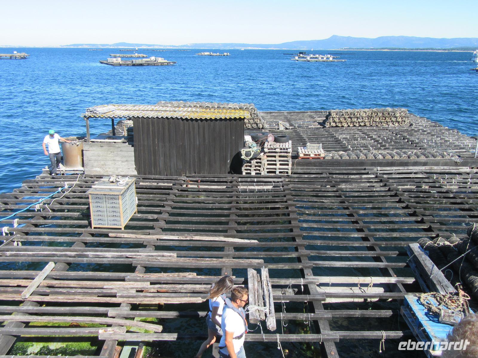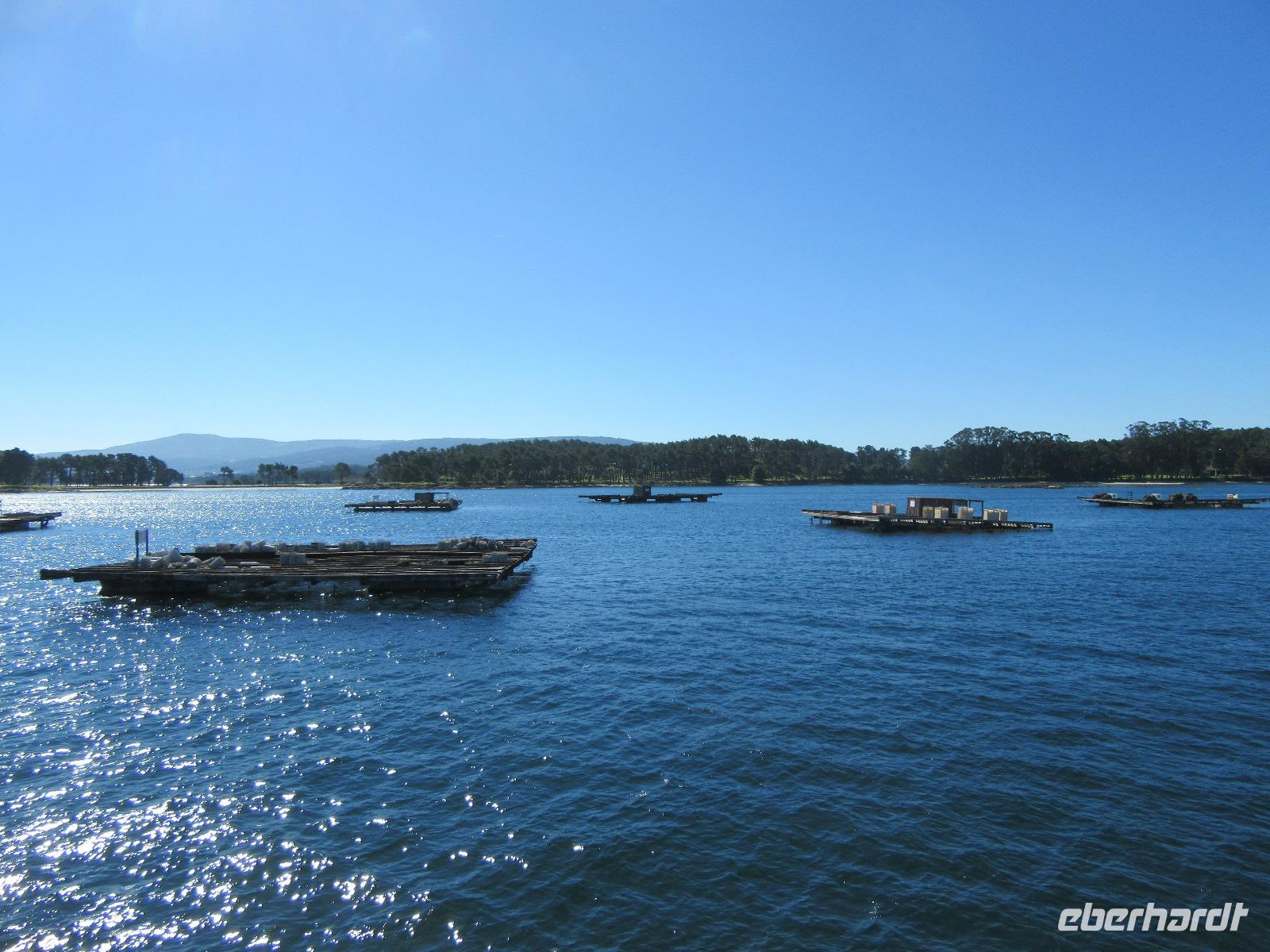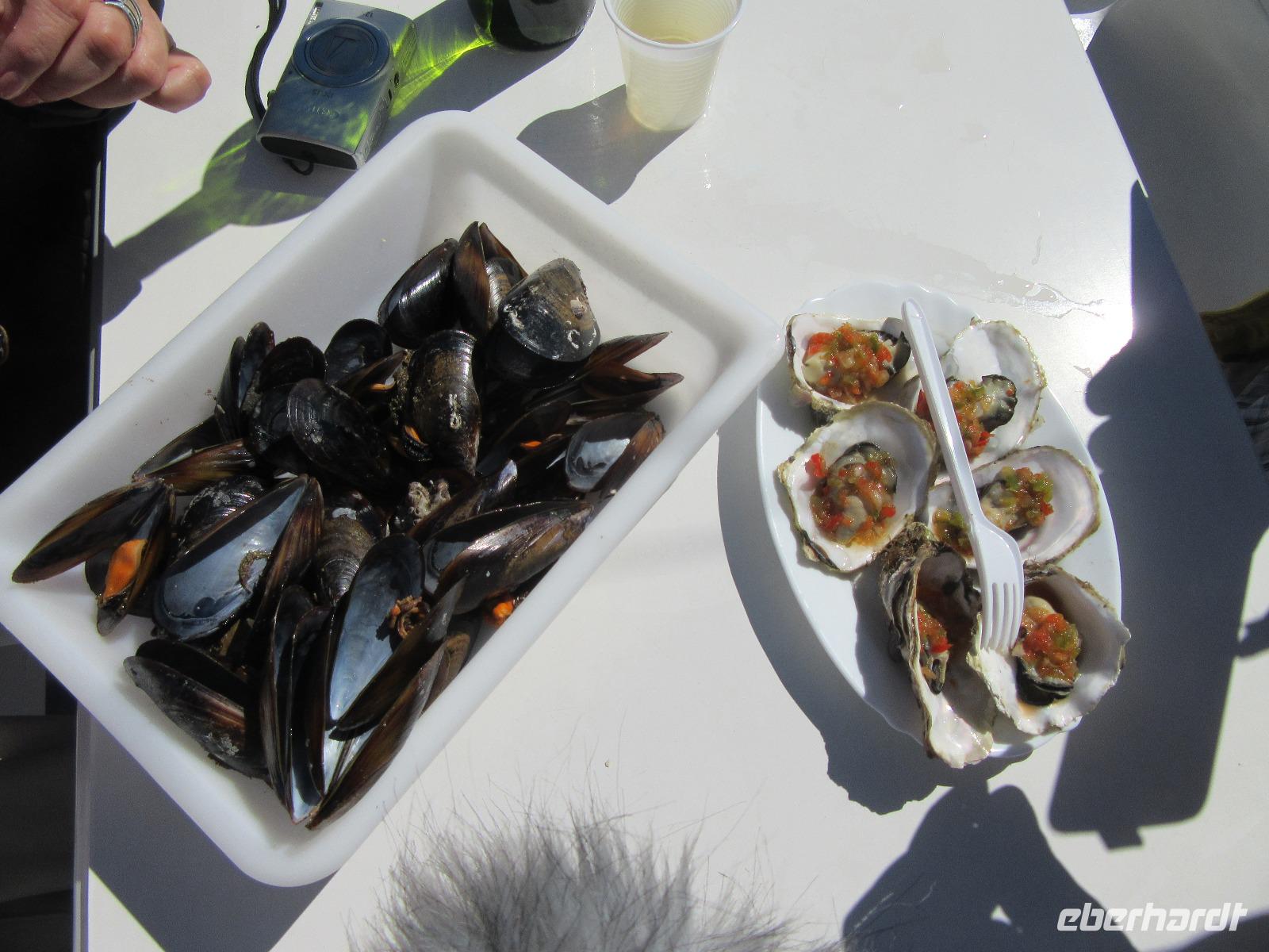 Die Sonne scheint über der Stadt Santiago de Compostela und wir fuhren Richtung Süden zur Halbinsel O'Grove. Dort sind wir in unser Boot gestiegen und begannen unsere angenehme Fahrt in die „Ria de Arosa". Wir haben die Muschelzucht „Bateas" besucht und gezeigt bekommen, wie sie die Jakobsmuscheln (Vieiras), Miesmuscheln (Mejillones) und die Austernmuscheln (Ostras) züchten. Danach besuchten wir noch die berühmte Isabel Fabrik. Nicht nur von oben sondern auch von unten, haben wir diese Muschelzucht gesehen und natürlich, die Miesmuscheln mit ins Boot bekommen und sie mit einem großartigen Albariño-Wein verkostet. Außerdem hatten wir die Möglichkeit, die leckeren Ostras zu probieren. Auf der Rückfahrt hatten wir den besten Show-Mann der Umgebung zum Tanzen und konnten unsere Bootsfahrt genießen.