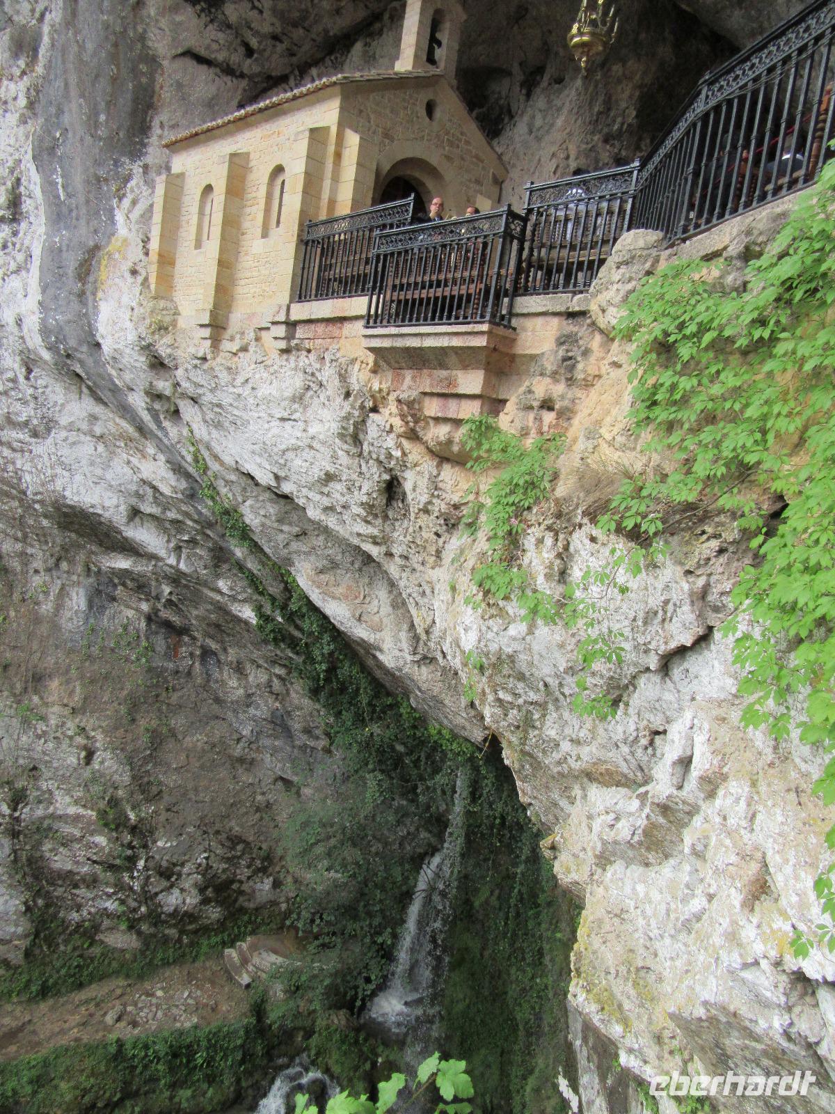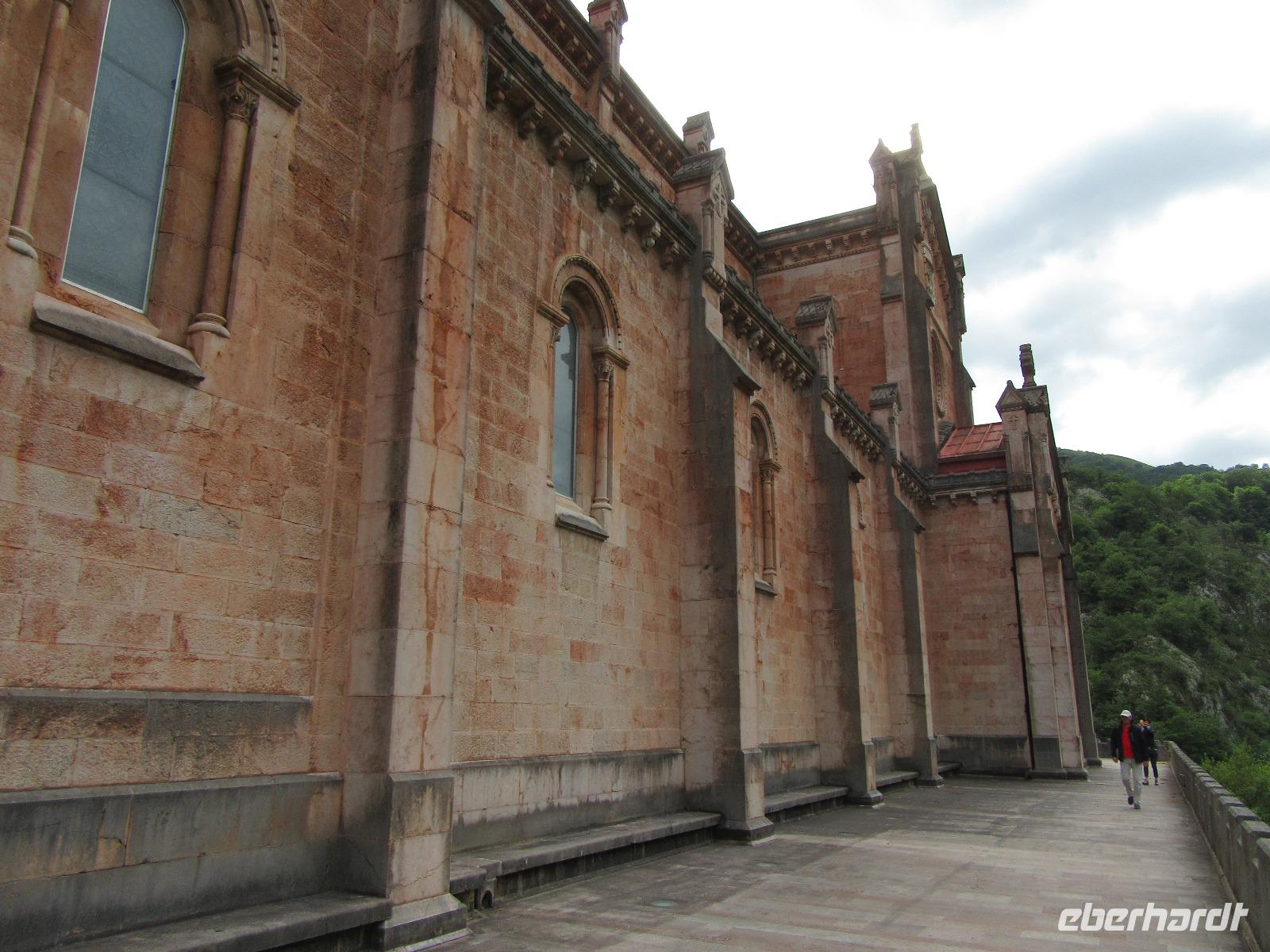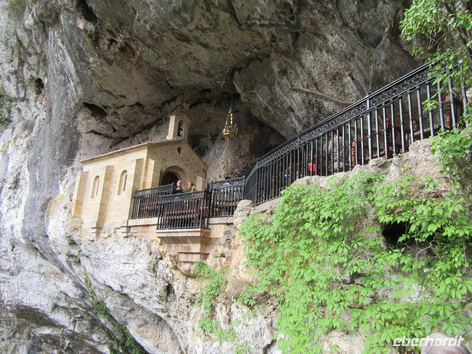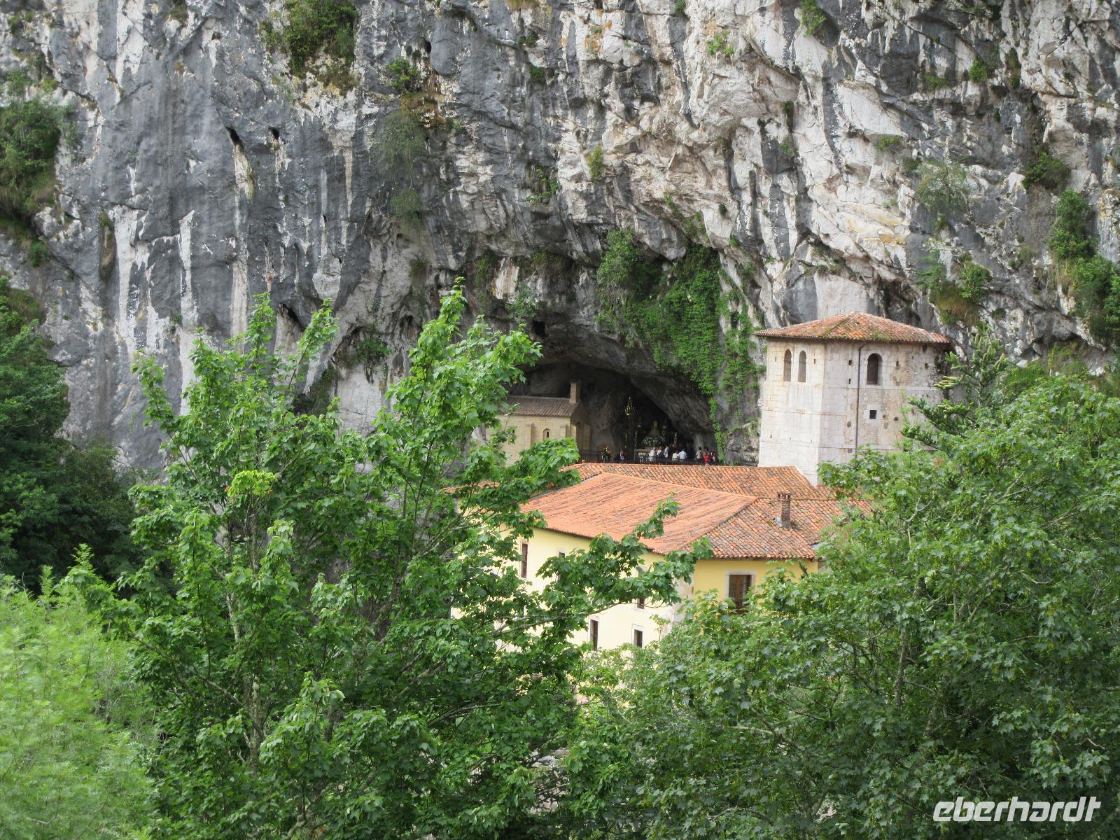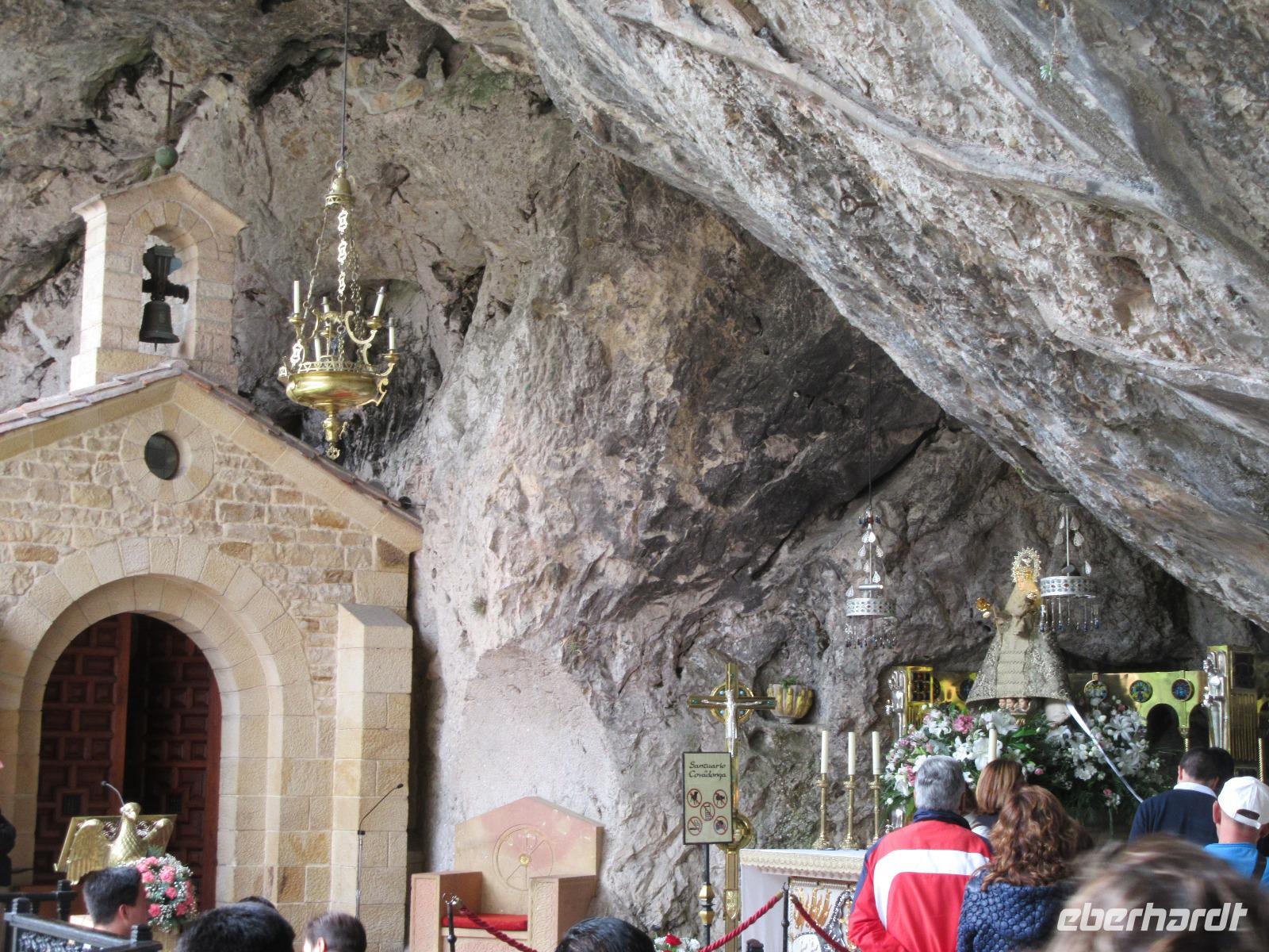 Wir stehen mit den Klängen der Wellen in Ribadesella auf. Nach unserem Frühstück fuhren wir wieder in den Nationalpark „Picos de Europa" zurück, um den Wallfahrtsort Covadonga zu besuchen. Dort haben wir das Heiligtum besucht, wo sich die Madonna von Covadonga, „die Jungfrau des Flusses" befindet. In diesem schönen Ort sahen wir die Basilika mit dem Denkmal von König Pelayo vor den Türen. Pelayo ist der erste König, der mit der Wiedereroberung angefangen hatte und gründete diesen Ort an der Heiligen Lage mit seinem Sohn Alonso I. In dem Wallfahrtsort kann man auch das Museum besuchen, das die Geschichte Covadongas erzählt. Ein Besuch der Heiligen Höhle ist in diesem Wallfahrtsort ein absolutes Muss. In der Heiligen Höhle oder „Santa Cueva" auf Spanisch, befindet sich die Madonna von Covadonga mit einer Golden Rose-Blume in der Hand und in der anderen Hand ein aus Holz geschnitztes Kind. Da sahen wir auch den mit Gold, Silber und Edelsteinen dekorierten Altar, sowie die Gräber der Könige Pelayo und Alonso I.