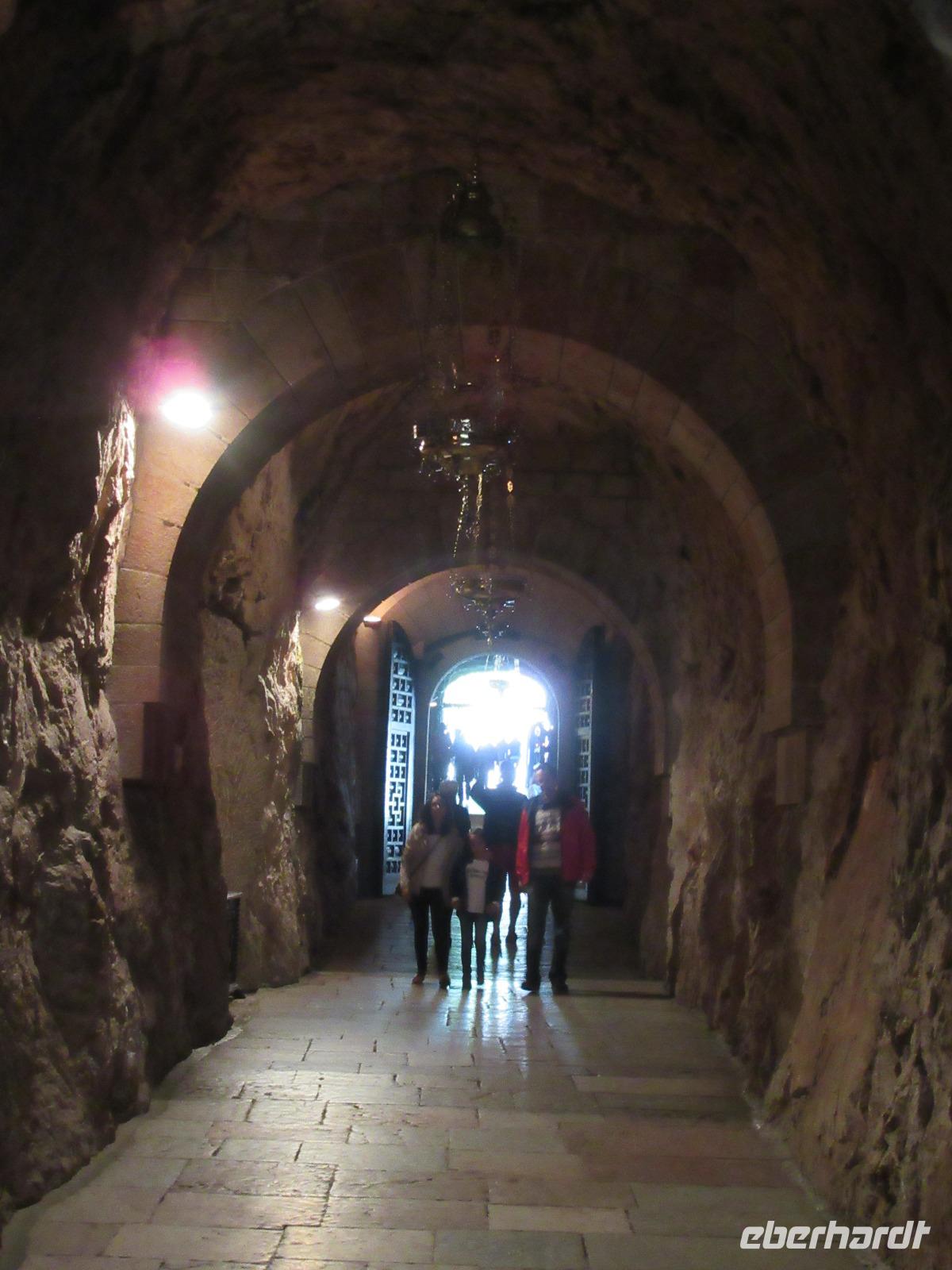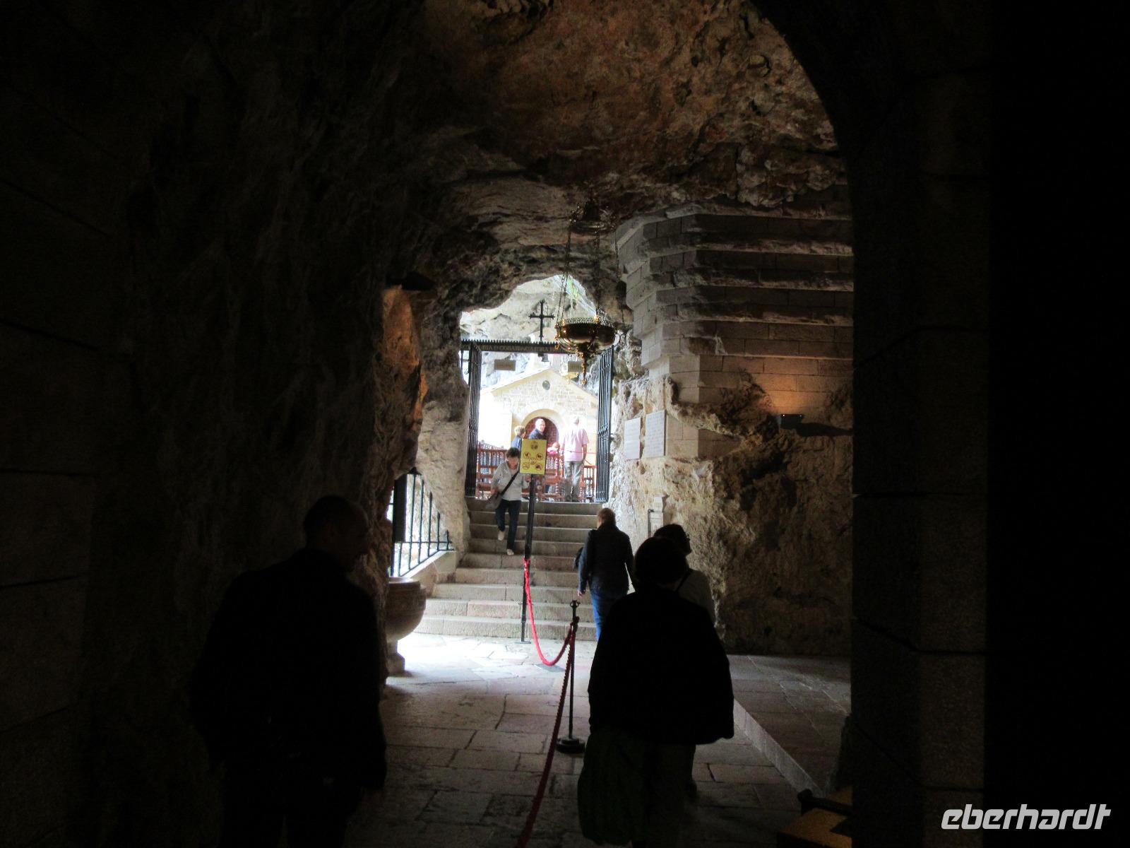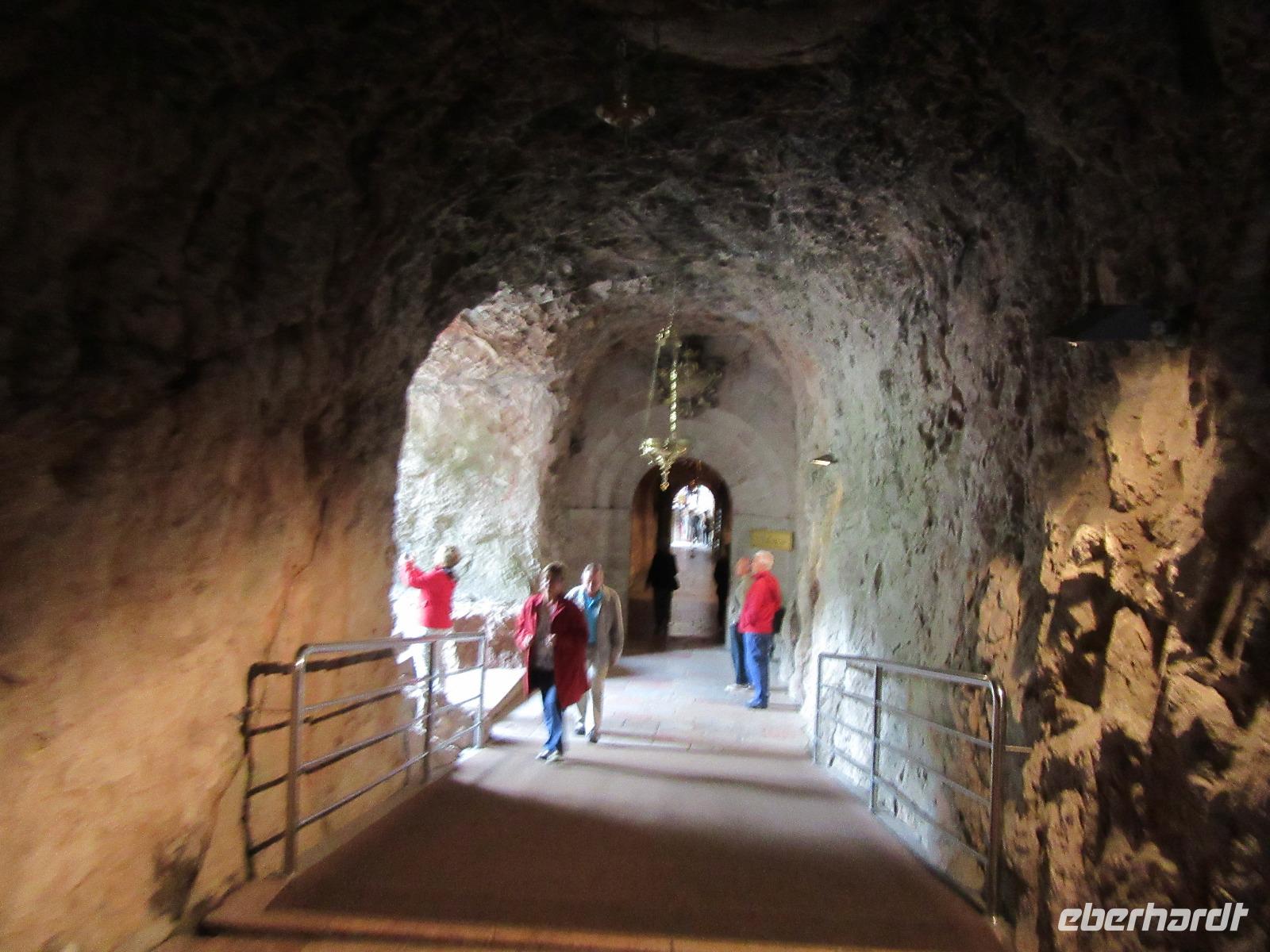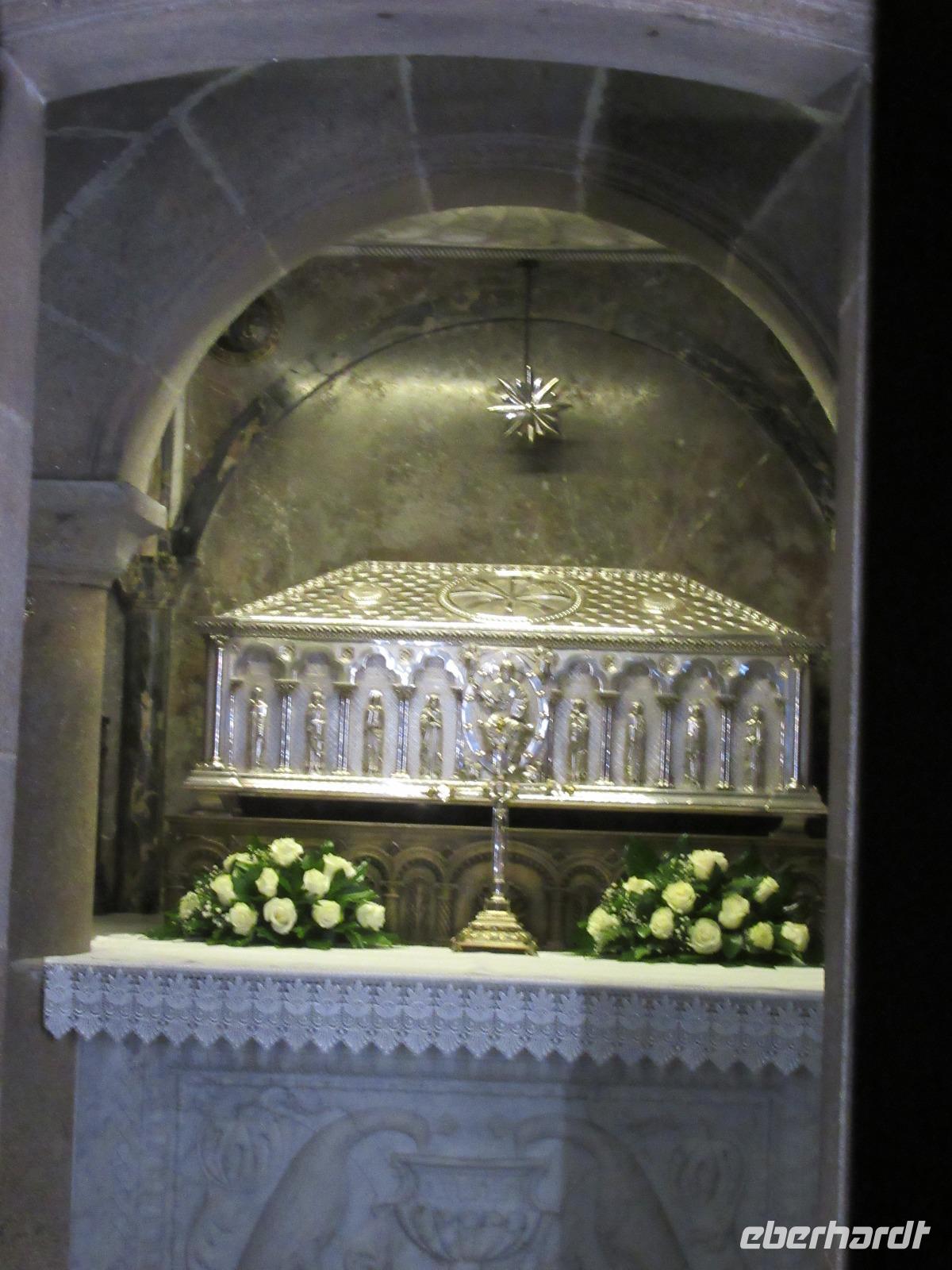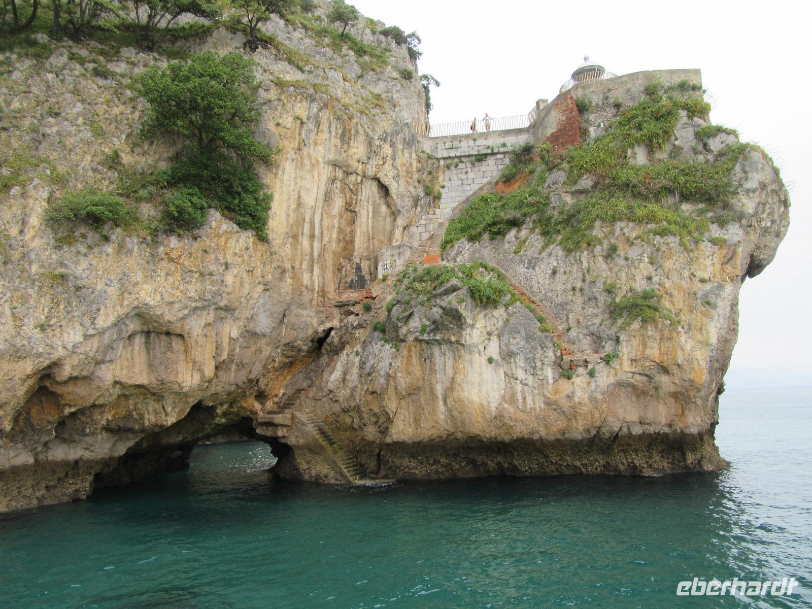 Wir stehen mit den Klängen der Wellen in Ribadesella auf. Nach unserem Frühstück fuhren wir wieder in den Nationalpark „Picos de Europa" zurück, um den Wallfahrtsort Covadonga zu besuchen. Dort haben wir das Heiligtum besucht, wo sich die Madonna von Covadonga, „die Jungfrau des Flusses" befindet. In diesem schönen Ort sahen wir die Basilika mit dem Denkmal von König Pelayo vor den Türen. Pelayo ist der erste König, der mit der Wiedereroberung angefangen hatte und gründete diesen Ort an der Heiligen Lage mit seinem Sohn Alonso I. In dem Wallfahrtsort kann man auch das Museum besuchen, das die Geschichte Covadongas erzählt. Ein Besuch der Heiligen Höhle ist in diesem Wallfahrtsort ein absolutes Muss. In der Heiligen Höhle oder „Santa Cueva" auf Spanisch, befindet sich die Madonna von Covadonga mit einer Golden Rose-Blume in der Hand und in der anderen Hand ein aus Holz geschnitztes Kind. Da sahen wir auch den mit Gold, Silber und Edelsteinen dekorierten Altar, sowie die Gräber der Könige Pelayo und Alonso I.
