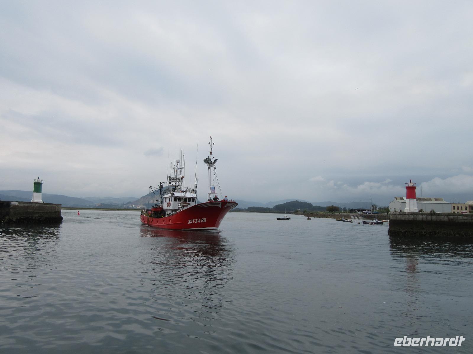 Es ging weiter mit unserem Bummel. Auf unserem Weg zum Hafen sahen wir traditionelle Häuser und Straßen. Angekommen im Hafen, sind wir in unser Boot gestiegen und durch die Bucht von Santoña gefahren. Besonders war, wie die verschiedenen Fischer-Boote im Hafen mit den Anchovis angekommen sind, sowie der Felsen mit dem Pferde-Leuchtturm. Dieser Leuchtturm ist so benannt, weil der Kalkstein unter dem Leuchtturm dem Kopf eines Pferdes ähnelt.