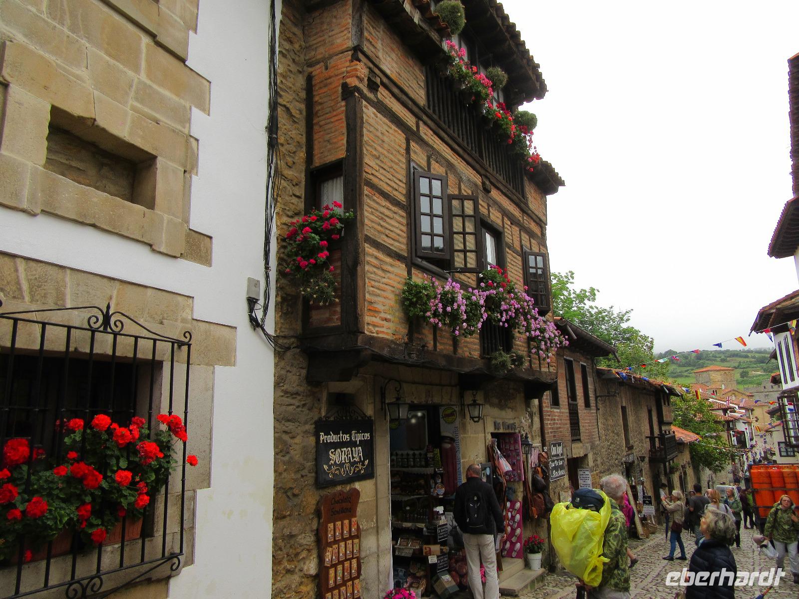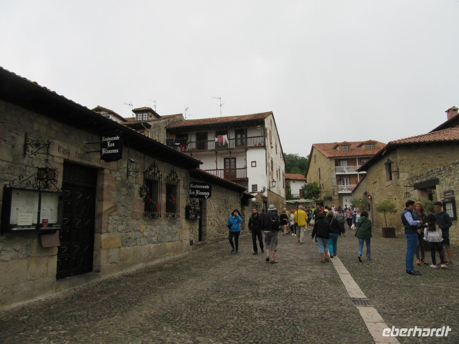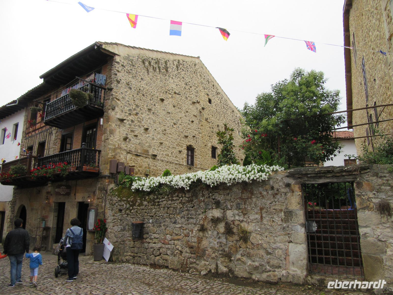 Wir konnten unsere Bootsfahrt nicht beenden, ohne einen Süßwein zu probieren. Zurück in Santoña machten wir eine Kaffee-Pause und fuhren weiter nach Santillana del Mar. In diesem charakteristischen Dorf, fühlten wir uns ins Mittelalter zurückversetzt und sahen die typischen Kalkfassaden und Holzbalkone. Diese Balkone sind außerdem sehr hübsch mit Blumentöpfen dekoriert. Die Verbindung zum Jakobsweg kann man überall in den Kirchen oder an den Muscheln an der Straße erkennen. In diesem schönen Dorf hatten wir Freizeit für unsere eigenen Entdeckungen und unsere Mittagspause.