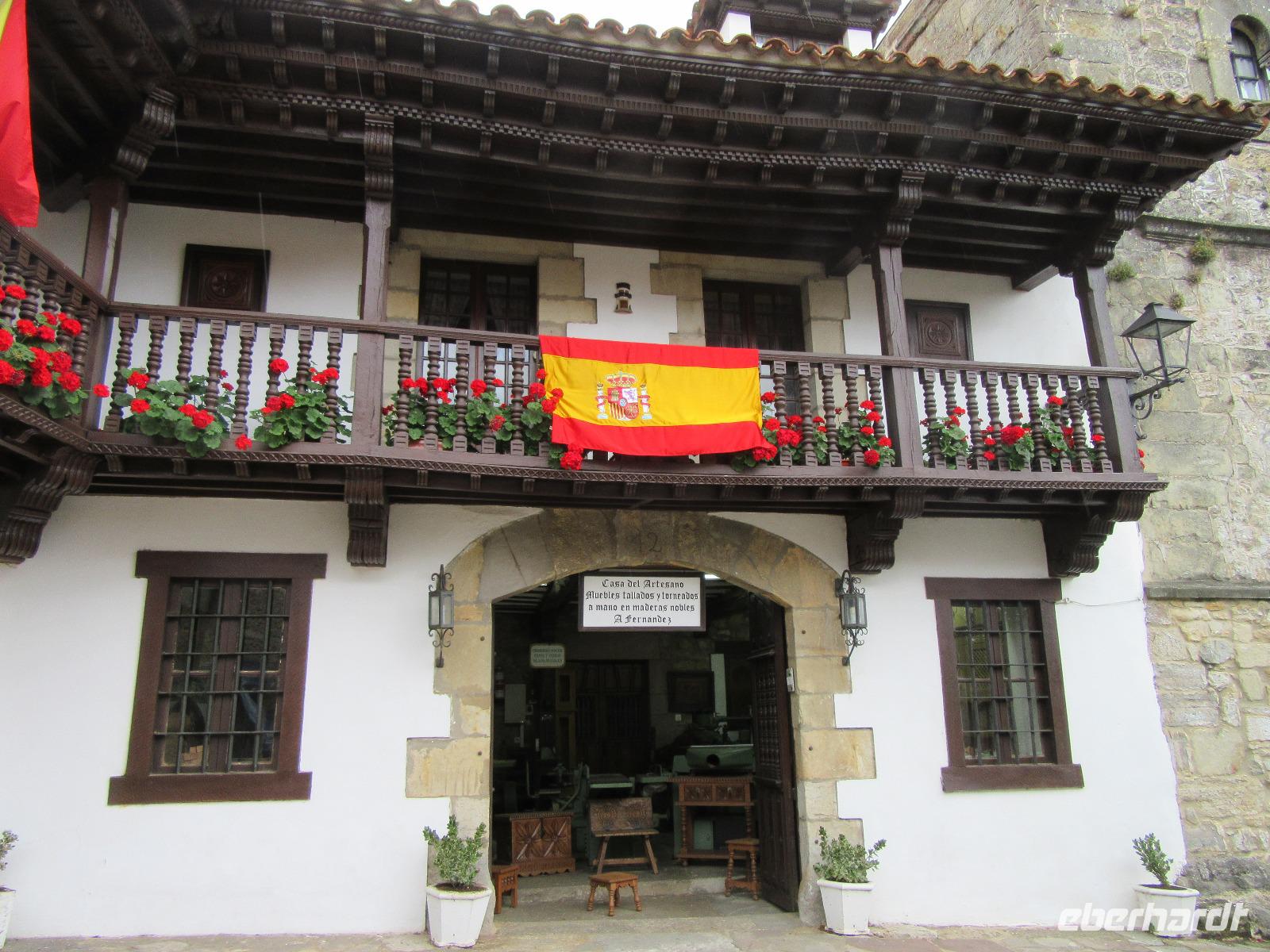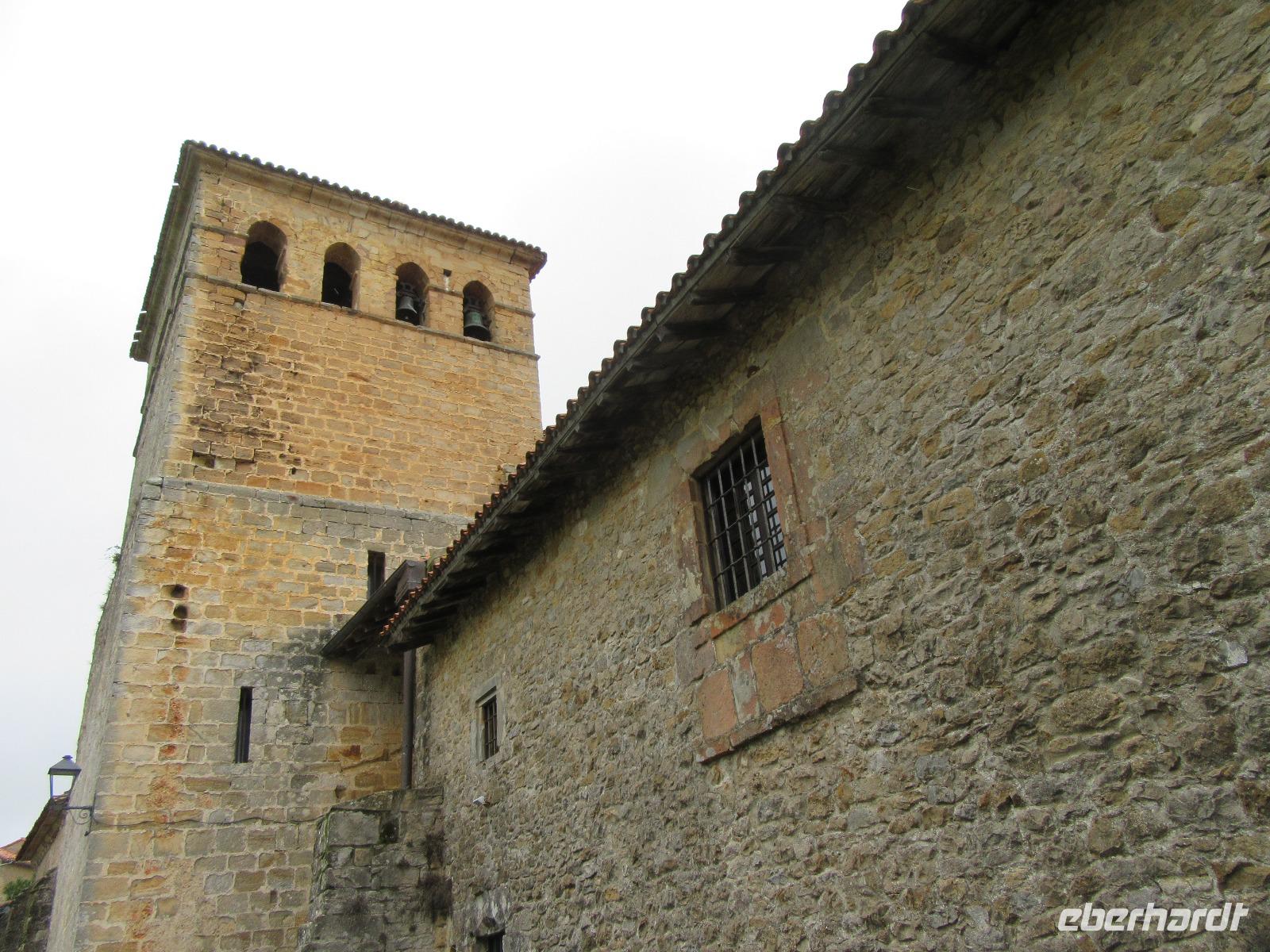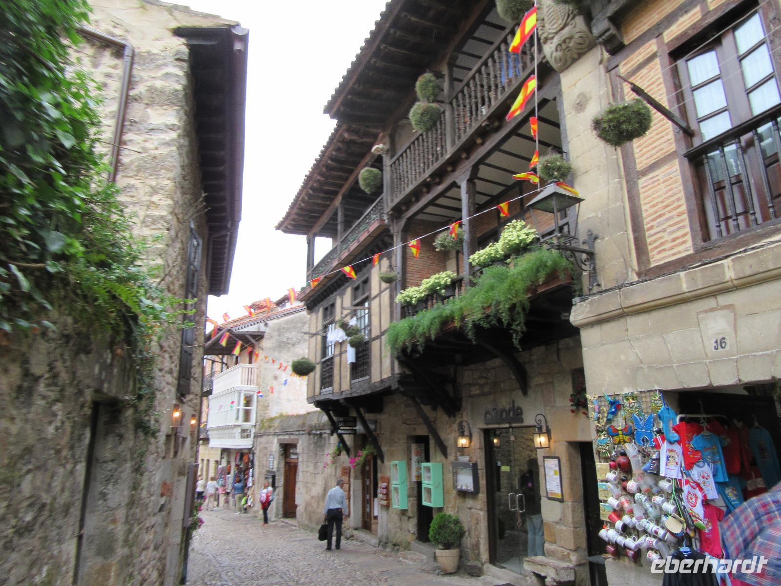 Wir konnten unsere Bootsfahrt nicht beenden, ohne einen Süßwein zu probieren. Zurück in Santoña machten wir eine Kaffee-Pause und fuhren weiter nach Santillana del Mar. In diesem charakteristischen Dorf, fühlten wir uns ins Mittelalter zurückversetzt und sahen die typischen Kalkfassaden und Holzbalkone. Diese Balkone sind außerdem sehr hübsch mit Blumentöpfen dekoriert. Die Verbindung zum Jakobsweg kann man überall in den Kirchen oder an den Muscheln an der Straße erkennen. In diesem schönen Dorf hatten wir Freizeit für unsere eigenen Entdeckungen und unsere Mittagspause.