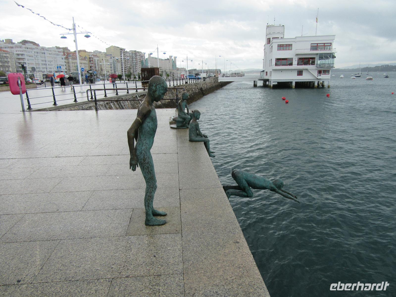 Nach dieser kleinen Besichtigung der Halbinsel Magdalena, fuhren wir weiter in die Altstadt. Da sahen wir das Monument „Los Raqueros", die vier Kinder, die ins Wasser springen, um die Münzen von den Touristen abzuholen.