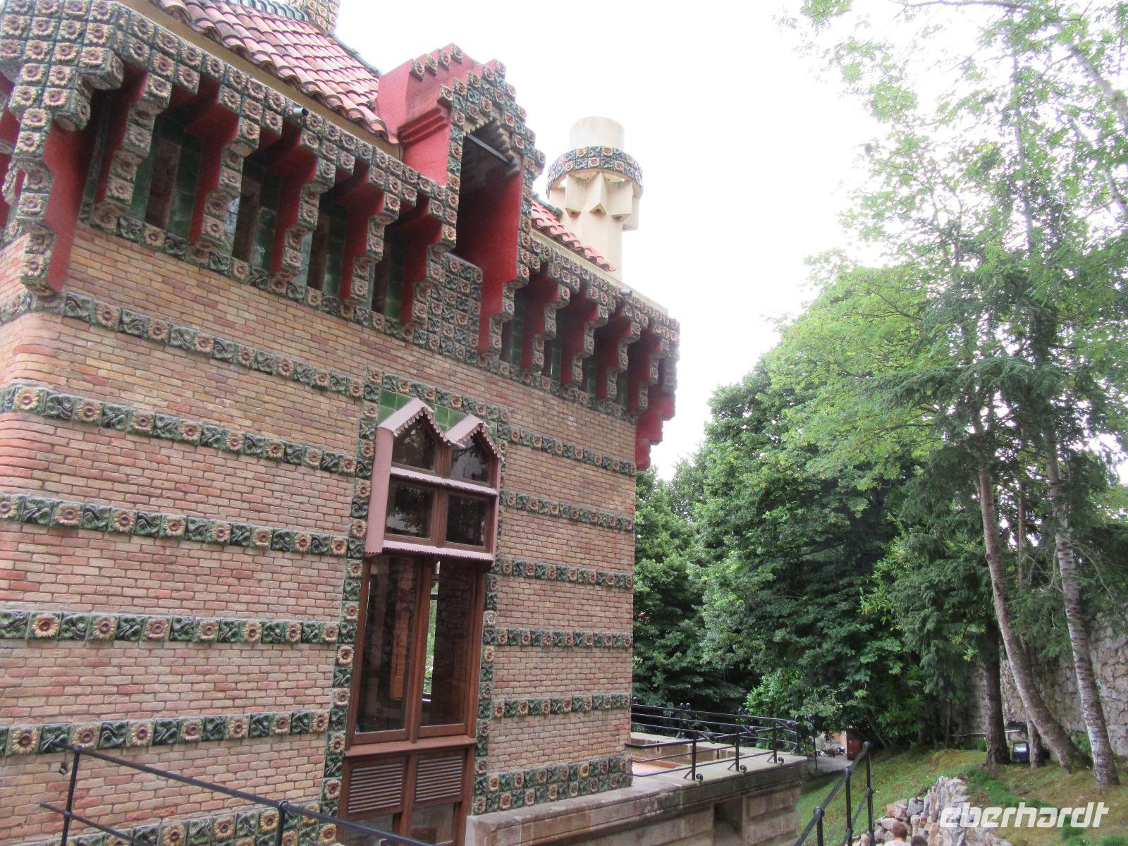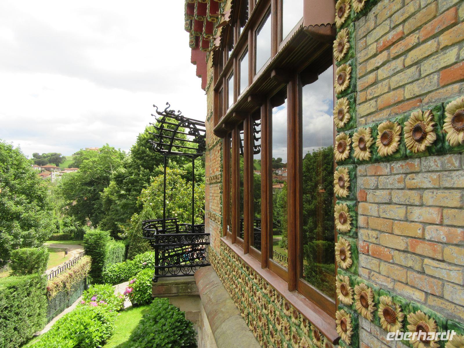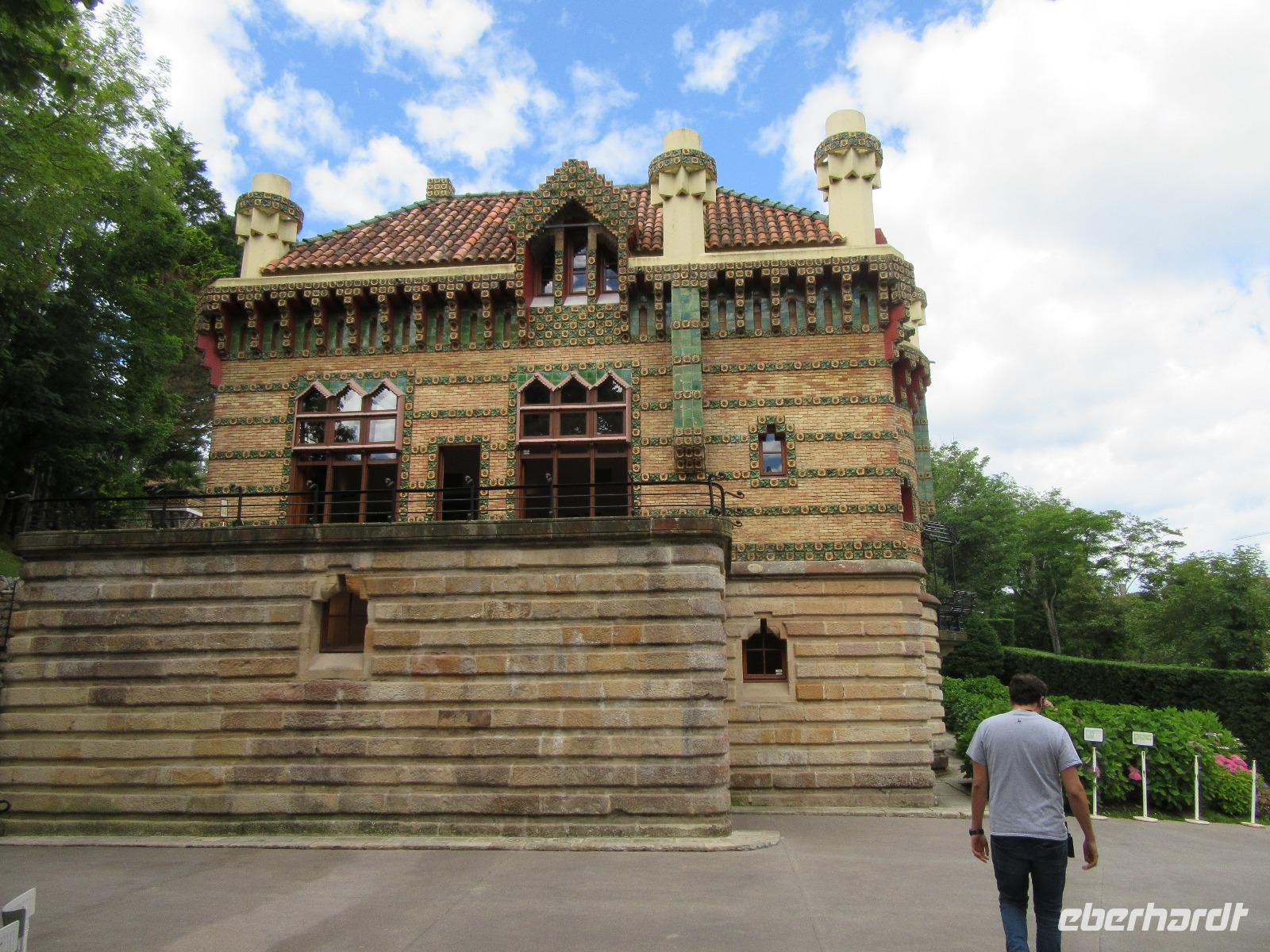 Nach unserer Besichtigung von Santander fuhren wir weiter nach Comillas und besuchten die Villa Quijano, bekannt als „die Laune von Gaudí". Dieses schöne Haus überraschte uns mit ihrer Verbindung zwischen Kunst, Natur, Religion und Musik. Das Haus sieht wie ein Croissant aus und funktioniert wie eine Sonnenblume. Einen Eindruck dieses Konzeptes haben wir gekriegt vom Schlafzimmer, über das Badezimmer, das Hauptzimmer für Musik bis zum Wohn- und Raucherzimmer. Die genannten Räume sind von Ost nach West angebaut, genauso wie die Sonne jeden Tag im Haus ankommt. Wir kamen in diese „Laune Gaudís" und sahen in jedem Zimmer die verschiedensten Elemente, die das Leben bequemer machten. Obwohl nur 30 Jahre alt, baute Gaudi dieses Gebäude 1985 für Herrn Quijano, der diese charakteristische Harmonie von seinem Werk bewundert hat. Alles hat eine Bedeutung und eine Erklärung: die Naturelemente, die Tiere, die Instrumente spielen, die melodischen Fenster,...Alles total schön und eine Überraschung für uns.