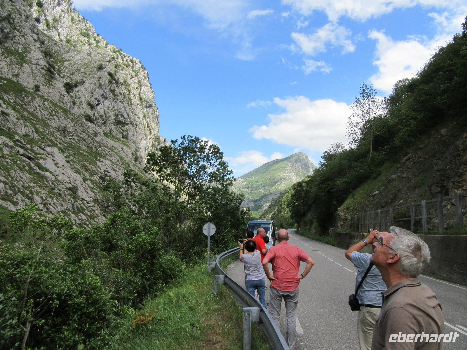 Danach fuhren wir weiter nach San Vicente de la Barquera. Dort hatten wir Freizeit, um direkt am Hafen ein leckeres Essen zu uns zu nehmen, bevor wir zum Nationalpark an der Spitze Europas fahren. Von der Küste sind wir landeinwärts in die Berge gefahren. Dort besuchten wir das berühmte Höhlen-Käserei-Museum Cabrales. Bei einer Besichtigung in der Höhle wurde uns ein Video gezeigt, dann haben wir die Tradition und eine neue Methode der Käseherstellung kennengelernt. Natürlich haben wir diesen Cabrales-Käse probiert mit einer typischen Sidra aus Asturien.