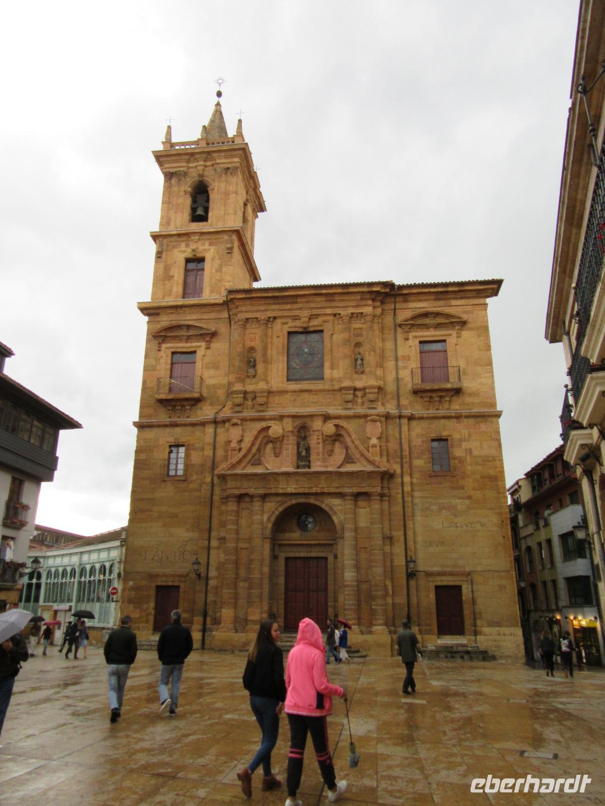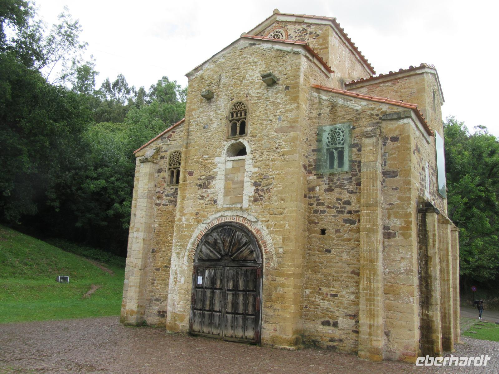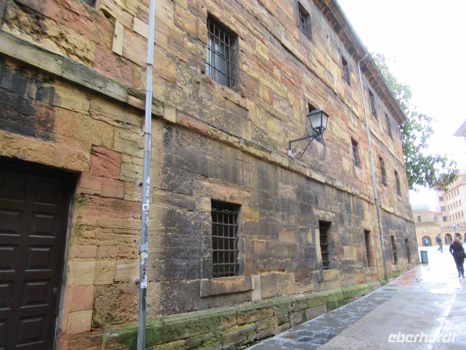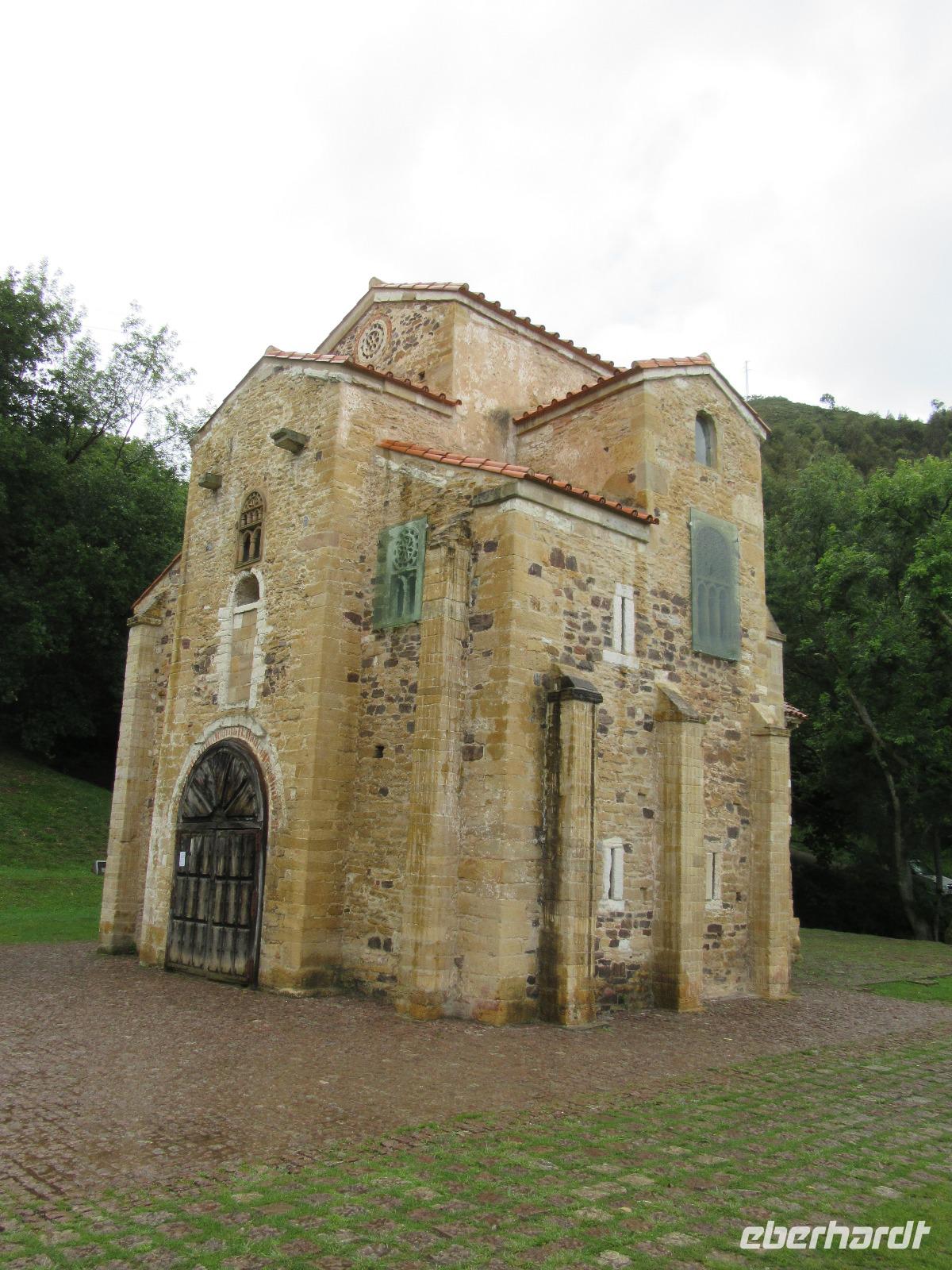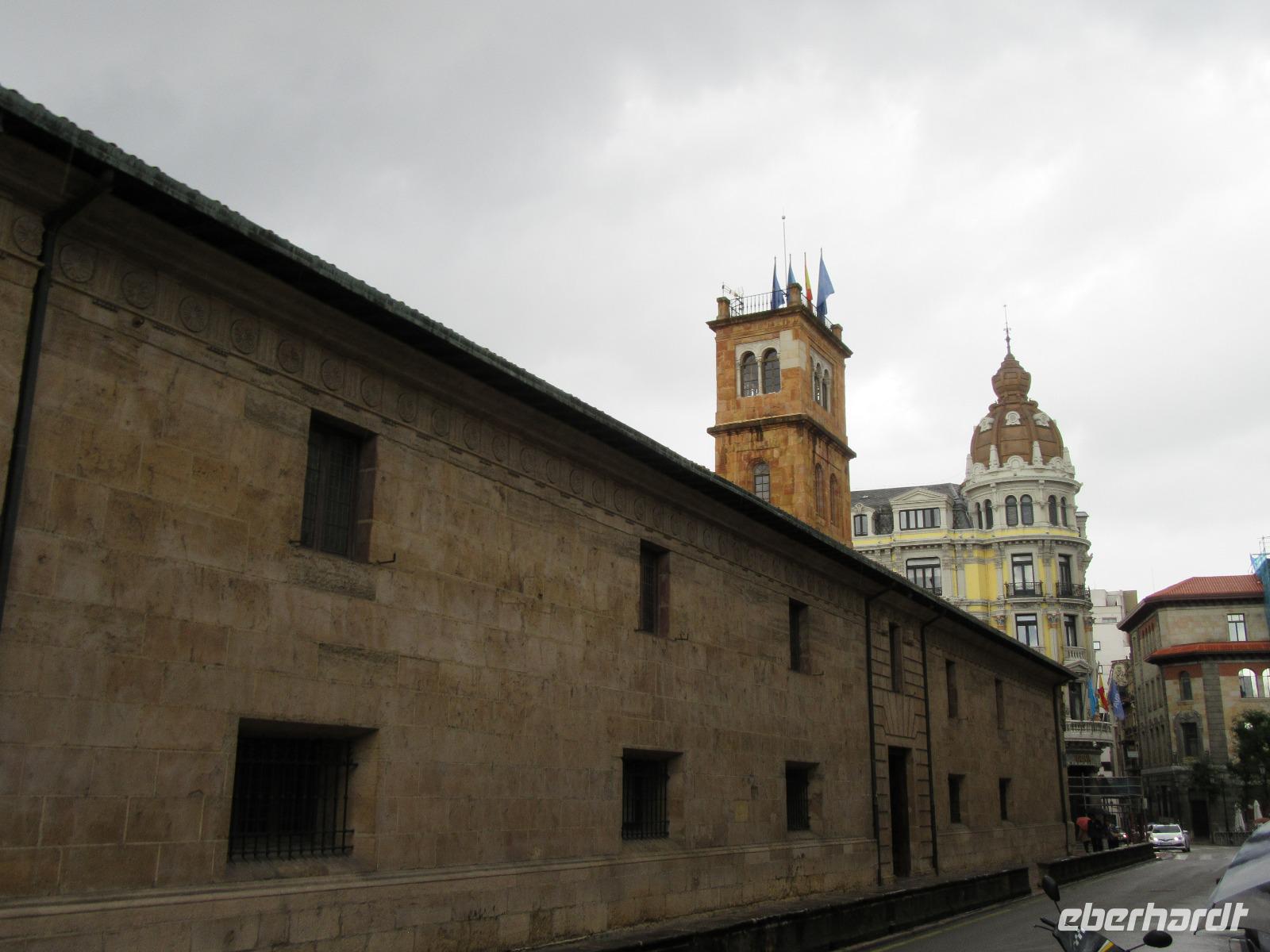 Danach fuhren wir weiter in die Hauptstadt Asturiens: Oviedo. In Oviedo haben wir unsere örtliche Reiseleiterin Marian kennengelernt und mit unserer Führung begonnen. Erst besuchten wir die Monumente des Naranco-Berges. Da haben wir die Reste der präromanischen Geschichte Asturiens gesehen, die bei der UNESCO als Weltkulturerbe erklärt wurden. Die Kirche „San Miguel de Lillo" war unser Ausgangspunkt. Da sahen wir verschiedene Elemente besonders von diesem Stil, obwohl nur zwei der drei Teile des Gebäudes immer noch erhalten sind. Dann besuchten wir den Palast „Santa Maria del Naranco". Es ist das einzige Gebäude in diesem Stil in der ganzen Welt und deswegen ist der Verwendungszweck nicht gänzlich klar. Sicher ist, dass König Ramiro I beide Gebäude baute und benutzte.