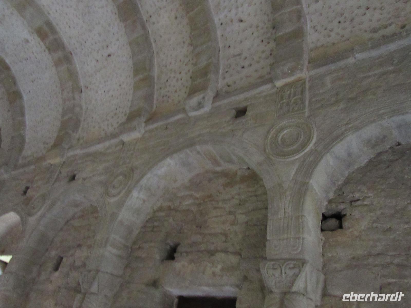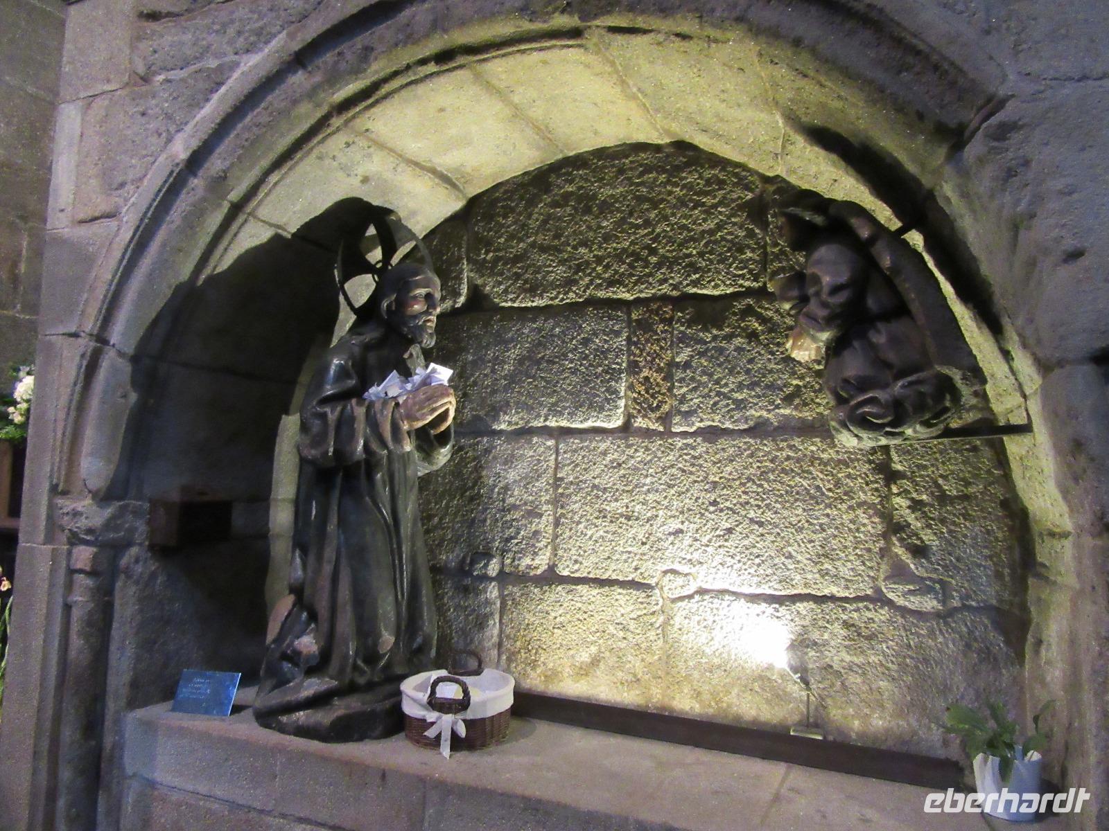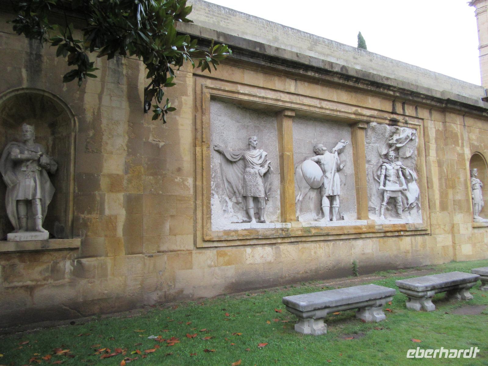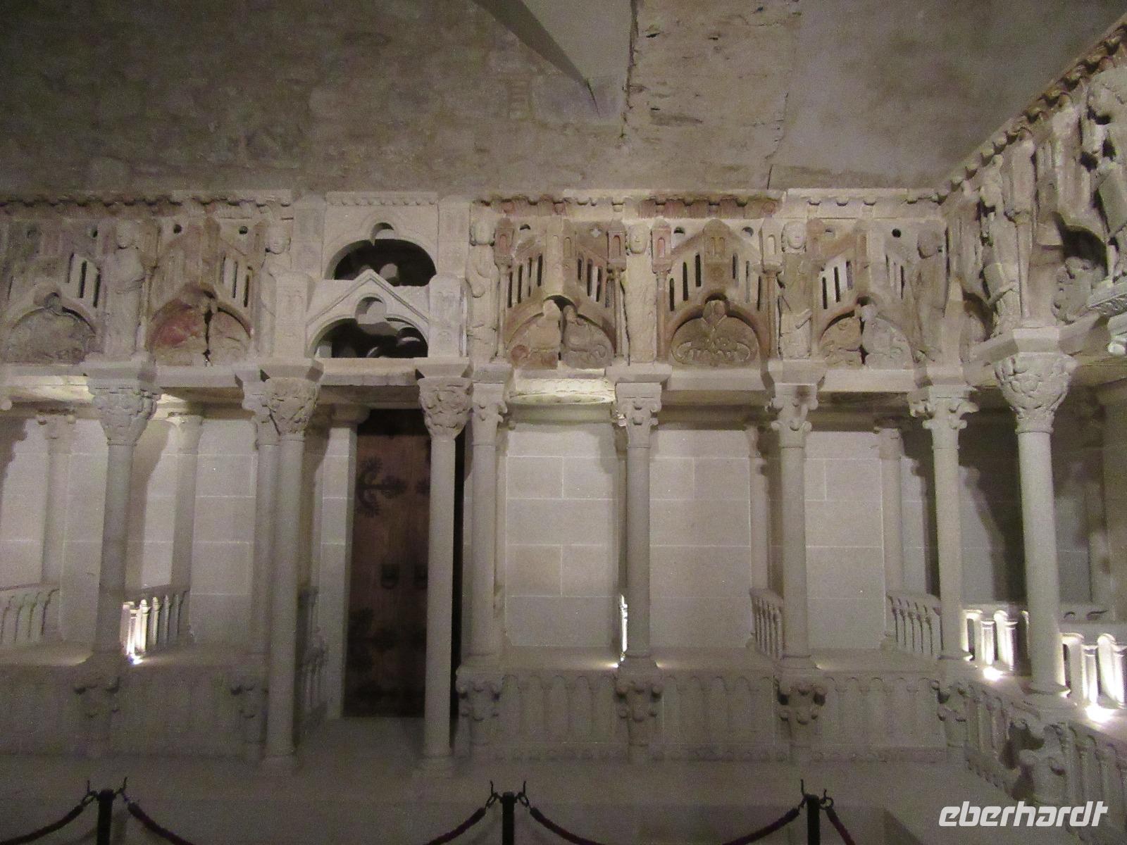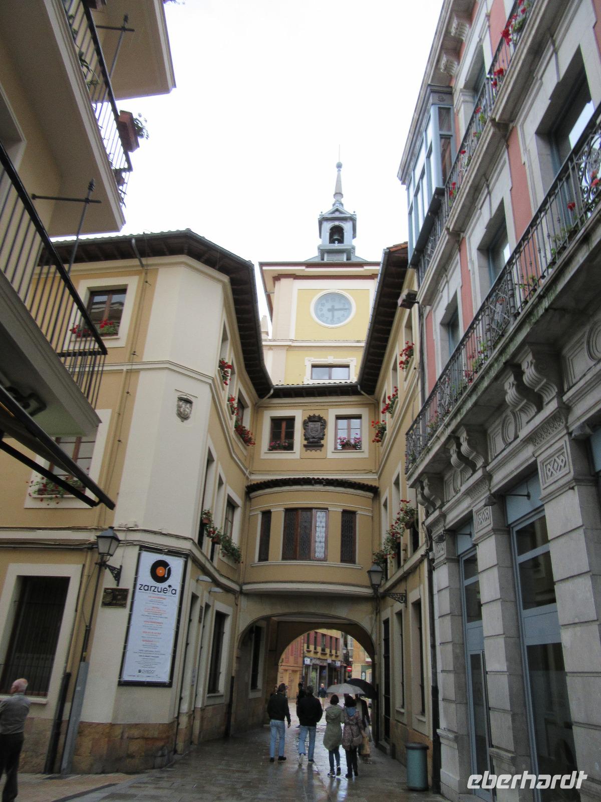 Danach fuhren wir weiter in die Hauptstadt Asturiens: Oviedo. In Oviedo haben wir unsere örtliche Reiseleiterin Marian kennengelernt und mit unserer Führung begonnen. Erst besuchten wir die Monumente des Naranco-Berges. Da haben wir die Reste der präromanischen Geschichte Asturiens gesehen, die bei der UNESCO als Weltkulturerbe erklärt wurden. Die Kirche „San Miguel de Lillo" war unser Ausgangspunkt. Da sahen wir verschiedene Elemente besonders von diesem Stil, obwohl nur zwei der drei Teile des Gebäudes immer noch erhalten sind. Dann besuchten wir den Palast „Santa Maria del Naranco". Es ist das einzige Gebäude in diesem Stil in der ganzen Welt und deswegen ist der Verwendungszweck nicht gänzlich klar. Sicher ist, dass König Ramiro I beide Gebäude baute und benutzte.