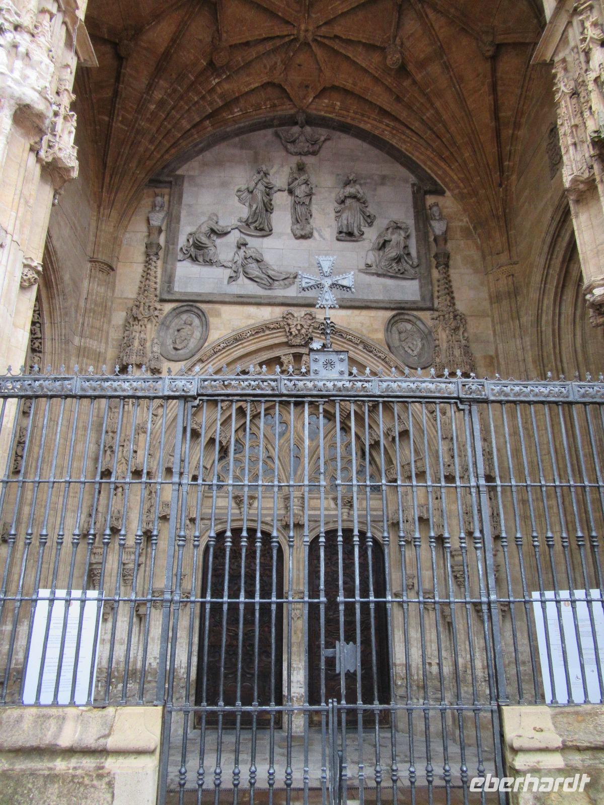 Wir verlassen die Autonome Gemeinschaft Baskenland und fuhren entlang der Nordküste Richtung Westen nach Laredo, um die mittelalterliche Altstadt zu besuchen. Laredo ist eins von vier traditionellen Fischerdörfern in Kantabrien. Ihre traditionellen Steinstraßen laden uns zu einer Reise in die Vergangenheit ein. Am Anfang haben wir die kleine Markthalle besucht, wo es jeden Tag fangfrischen Fisch gibt. Dann überquerten wir den Constitución-Platz, wo sich das alte Rathaus befindet. Wir liefen durch die San Francisco Straßen sahen das Kloster und das alte Tor der Stadtmauer. Wir gingen durch diese Hauptstraße bis zur Kirche „Heilige Maria von Himmelfahrt", wo wir die Möglichkeit hatten, um die Kirche zu besuchen. Da befindet sich einer der wichtigsten gotischen Altäre Kantrabiens.