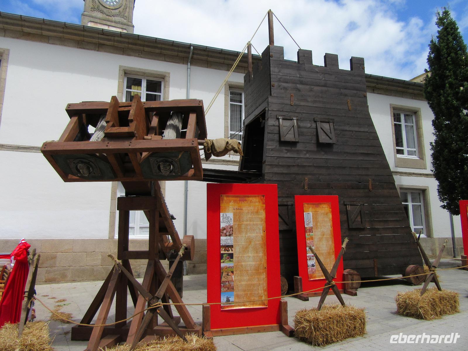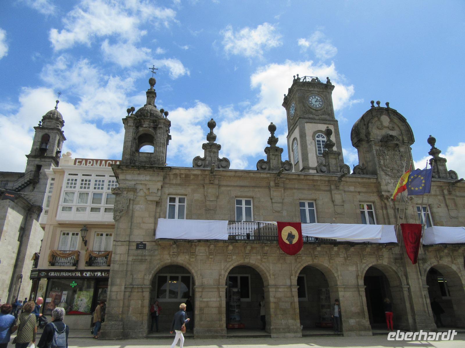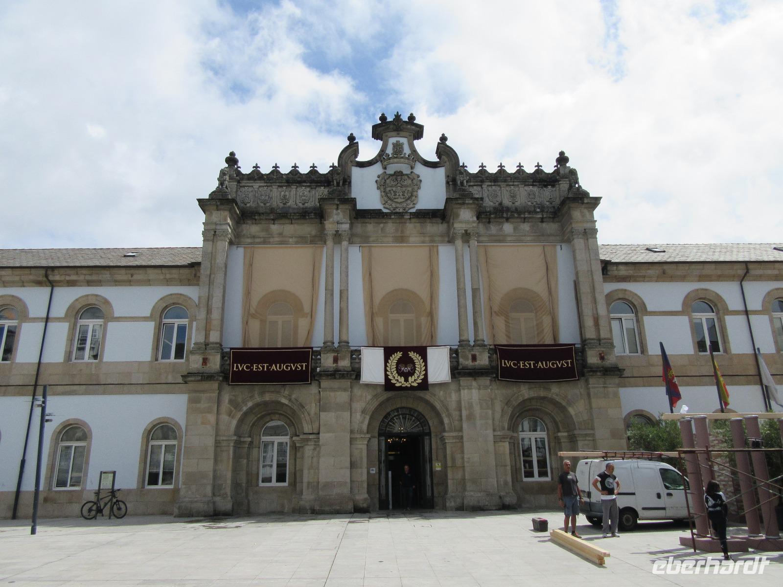 Wir verlassen die Region Asturien und kamen langsam in die Region Galizien. Unsere erste Besichtigung des Tages fand in der Stadt Lugo statt. Da sahen wir die Vorbereitung für das Stadtfest „Arde Lucus", wo die ganze Stadt in das römische Zeitalter zurückversetzt wird. Wir begannen unseren Bummel mit einem Spaziergang durch die römische Mauer, die 2000 zum Weltkulturerbe der UNESCO erklärt wurde. Dann sahen wir die Markthalle, wo wir den typischen Käse „Queso de Tetilla" verkosteten und liefen durch die Gassen der Altstadt bis zur Kathedrale und dem Hauptplatz. Da sahen wir verschiedenen Stellen, wo die örtliche Bevölkerung ihre Produkte verkaufen und die verschiedenen Anlagen für die Shows, die an diesem Wochenende stattfinden. Auf diesem Hauptplatz wurde die Stadt gegründet und wir konnten das Rathaus sehen und natürlich, Freizeit für unsere eigenen Entdeckungen sowie eine Mittagspause gehabt.