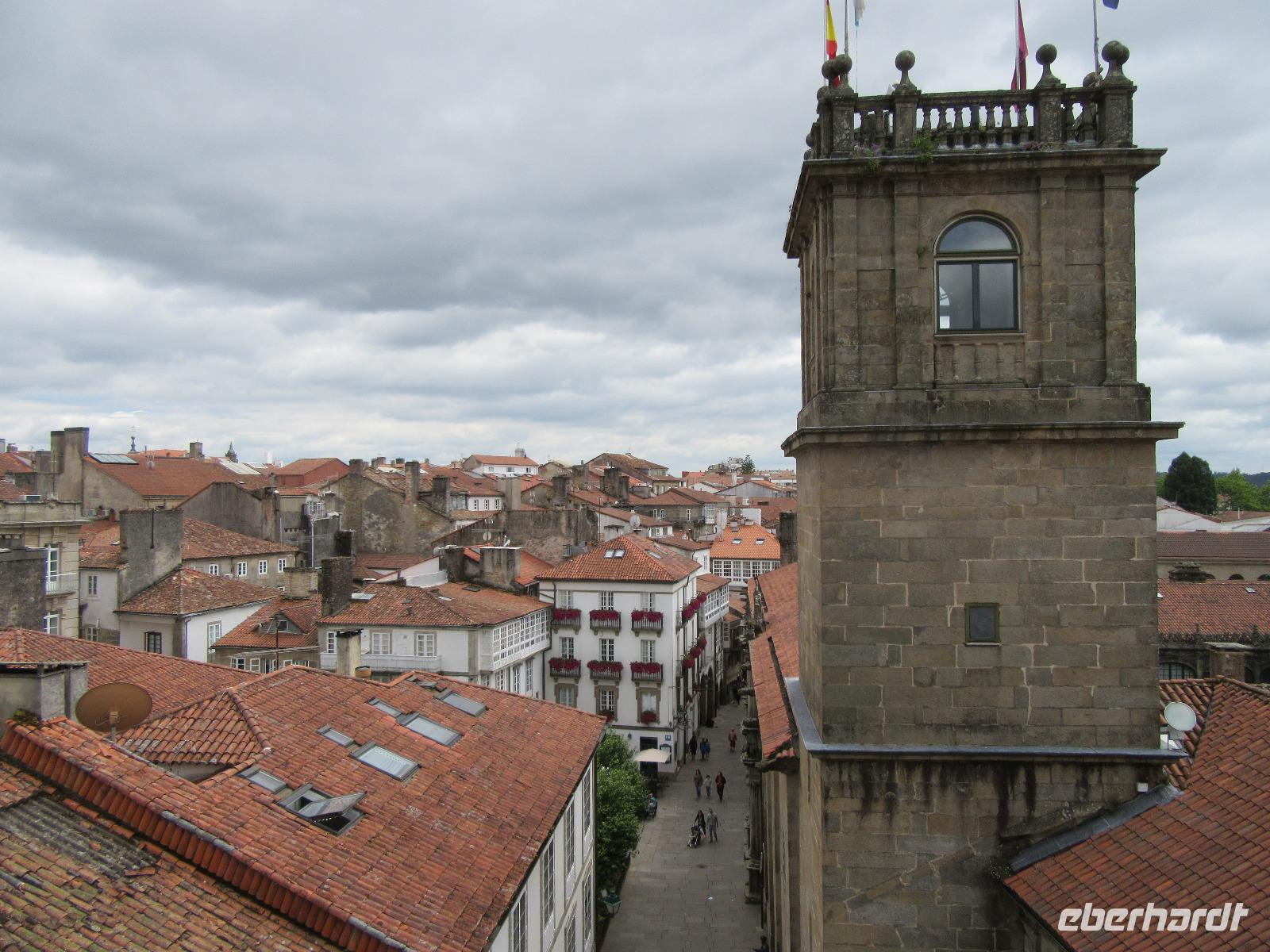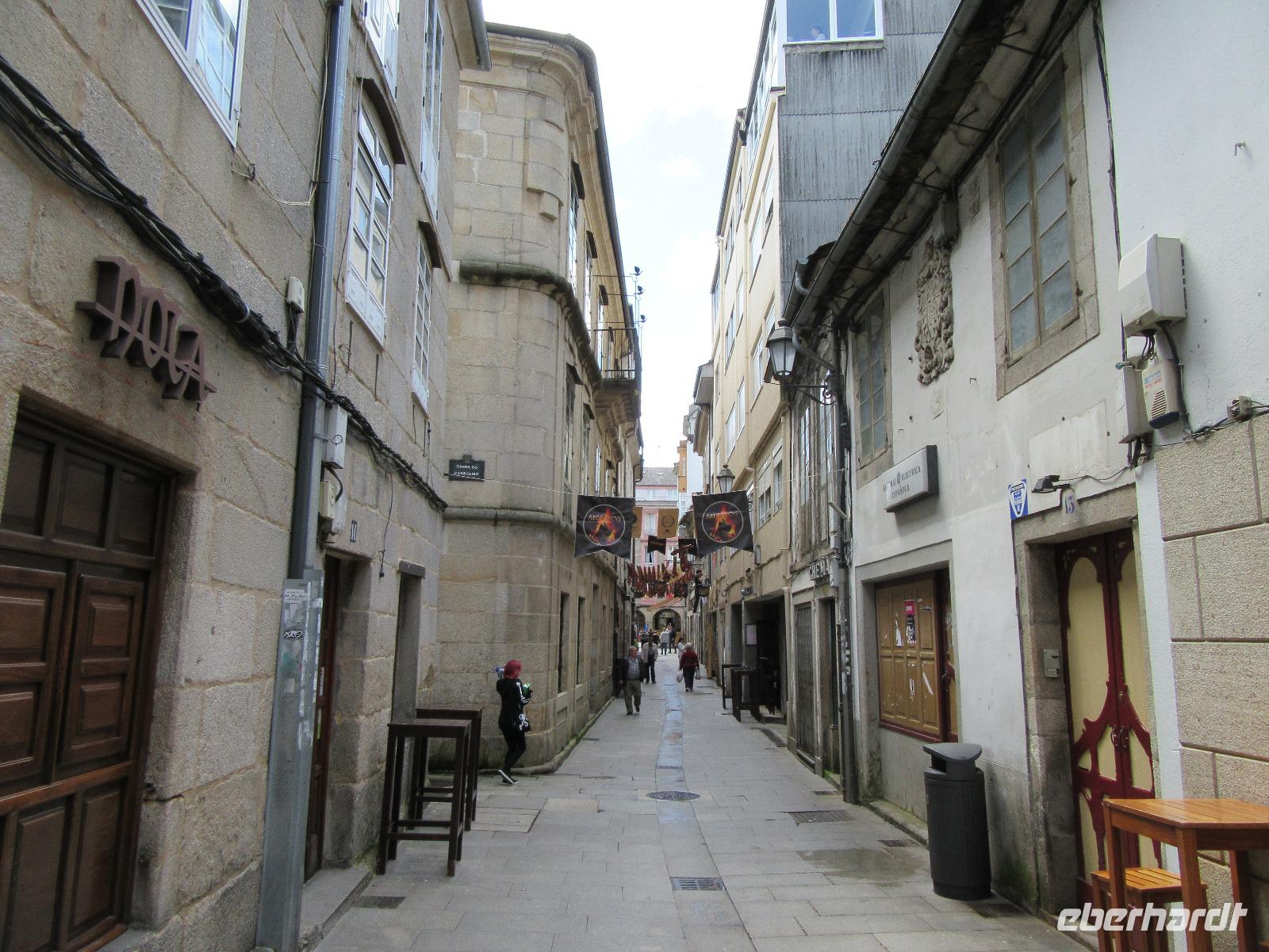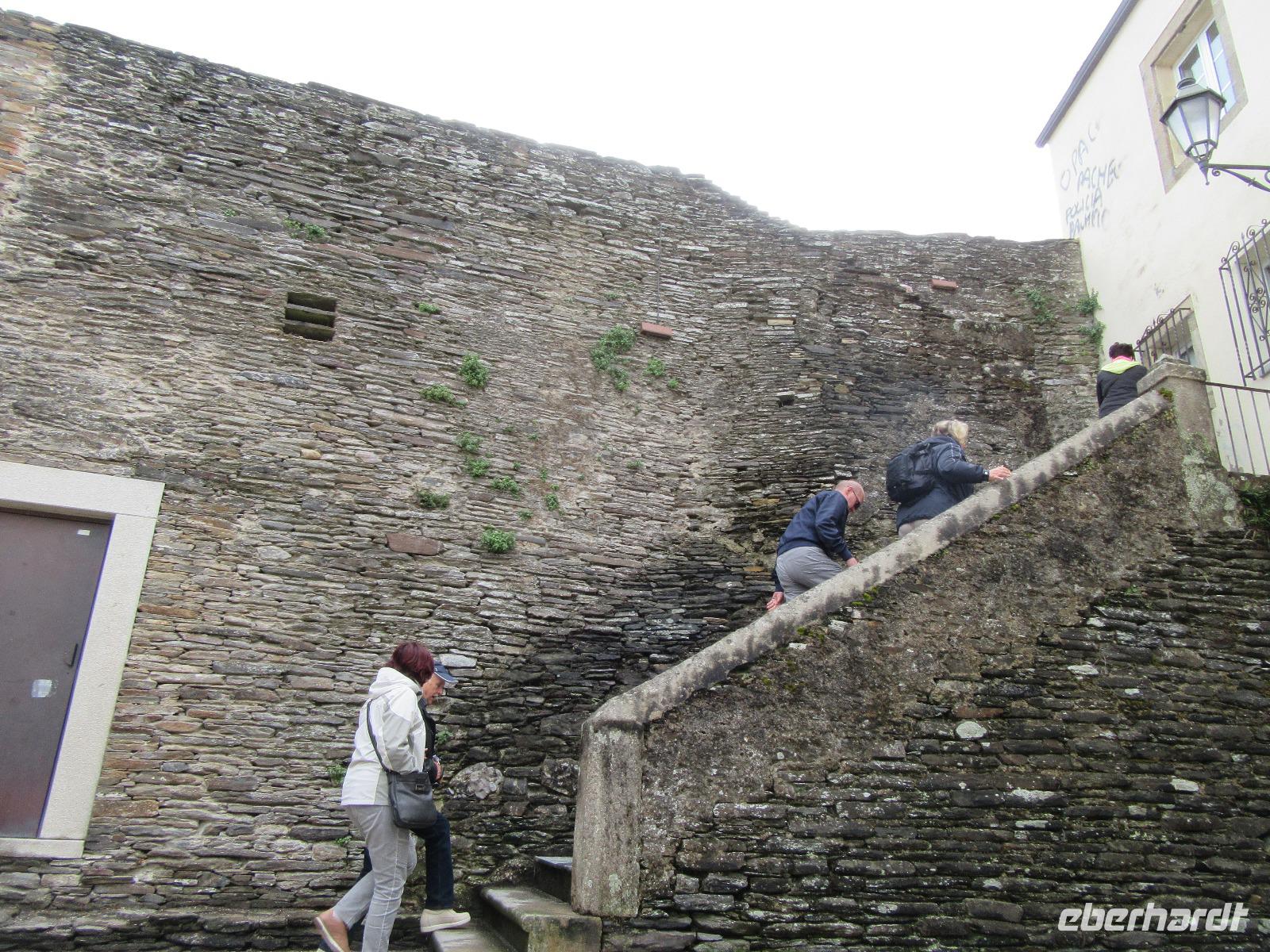 Wir verlassen die Region Asturien und kamen langsam in die Region Galizien. Unsere erste Besichtigung des Tages fand in der Stadt Lugo statt. Da sahen wir die Vorbereitung für das Stadtfest „Arde Lucus", wo die ganze Stadt in das römische Zeitalter zurückversetzt wird. Wir begannen unseren Bummel mit einem Spaziergang durch die römische Mauer, die 2000 zum Weltkulturerbe der UNESCO erklärt wurde. Dann sahen wir die Markthalle, wo wir den typischen Käse „Queso de Tetilla" verkosteten und liefen durch die Gassen der Altstadt bis zur Kathedrale und dem Hauptplatz. Da sahen wir verschiedenen Stellen, wo die örtliche Bevölkerung ihre Produkte verkaufen und die verschiedenen Anlagen für die Shows, die an diesem Wochenende stattfinden. Auf diesem Hauptplatz wurde die Stadt gegründet und wir konnten das Rathaus sehen und natürlich, Freizeit für unsere eigenen Entdeckungen sowie eine Mittagspause gehabt.