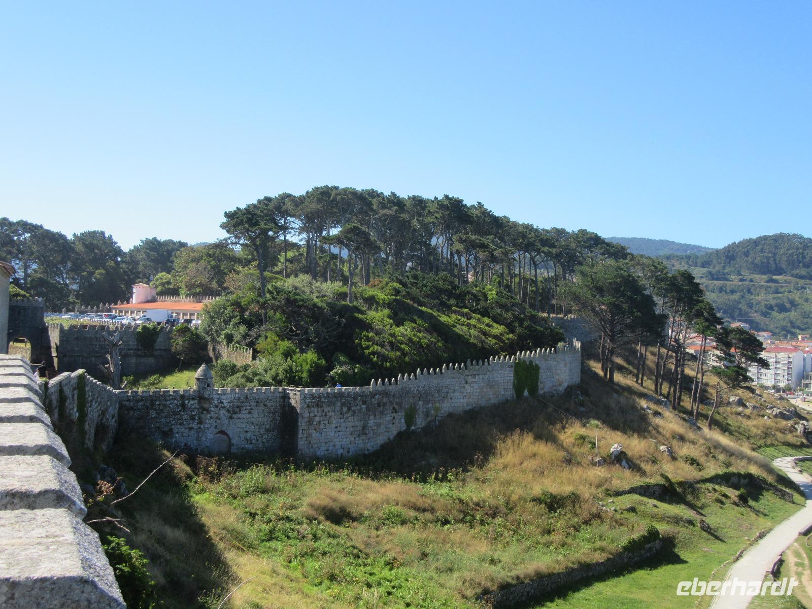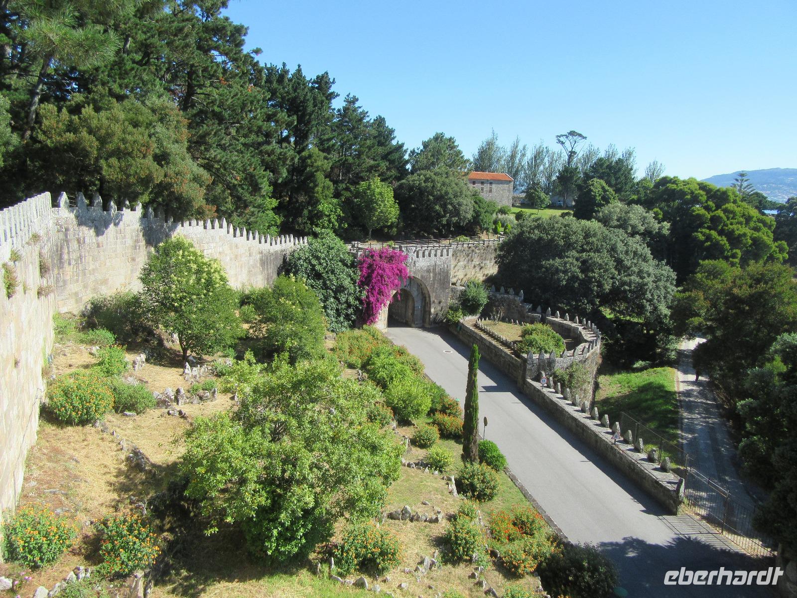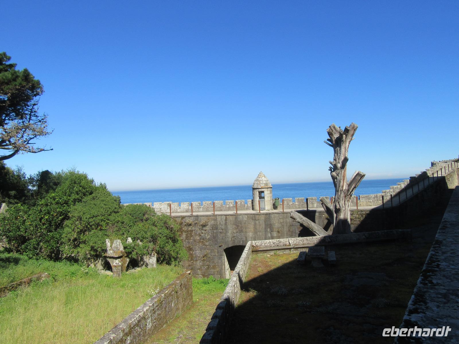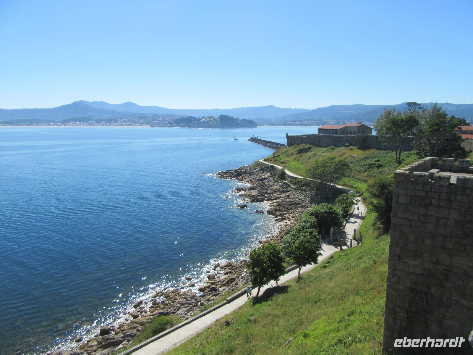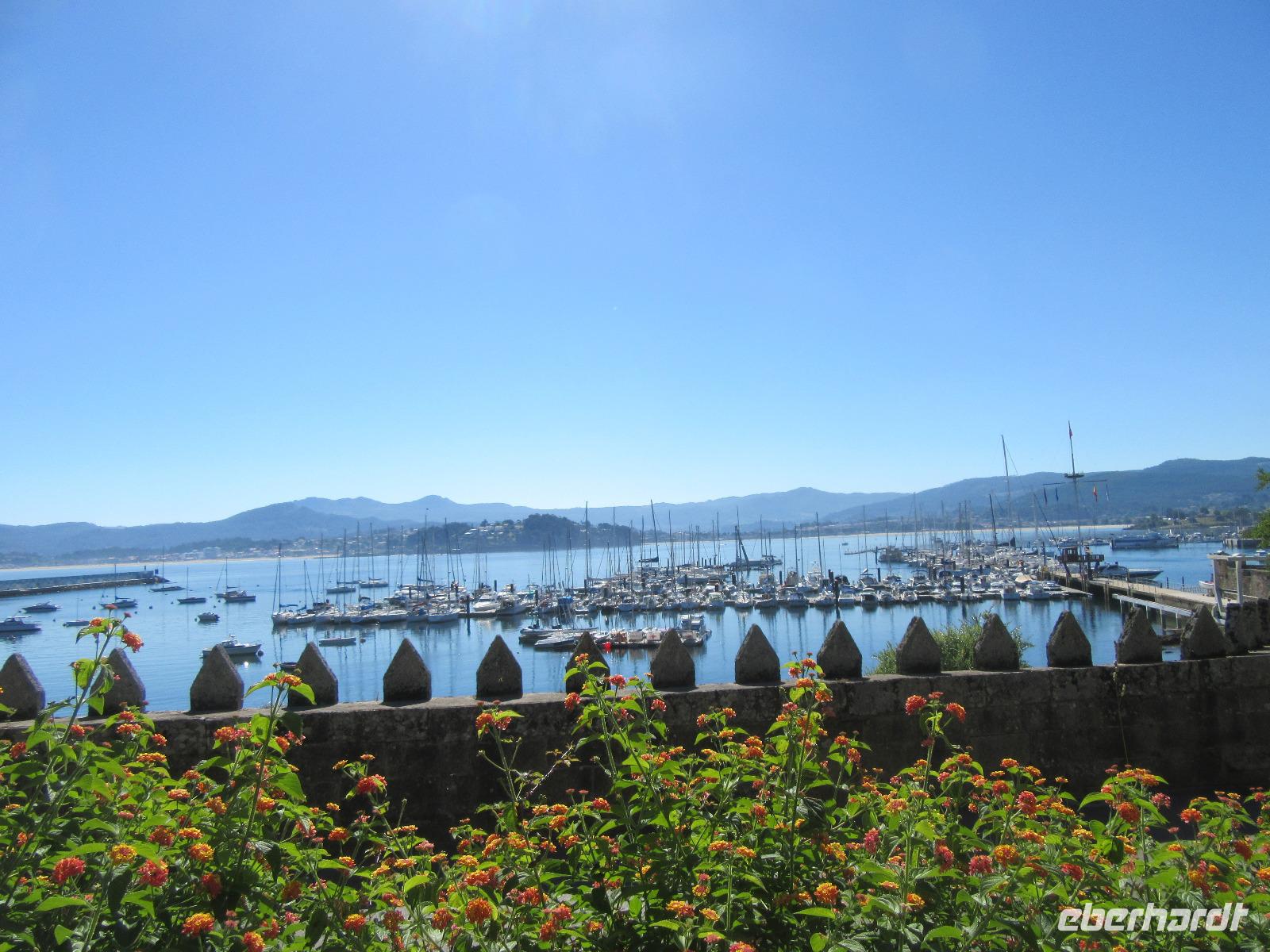 Wir verlassen Santiago de Compostela und fahren in Richtung Süden nach Baiona und die hübsche Ria de Baiona. Auf unserem Weg haben wir verschiedene Muschel-Zuchten in der Umgebung gesehen. In Baiona angekommen, fuhren wir entlang der Küste bis zur Tempelburg Monterreal. Neben der Burg haben wir den schönen Hafen und die Replik der Pinta von Christoph Kolumbus gesehen. Vor den Türen der Festung begannen wir unseren Spaziergang durch die Mauer. Langsam kamen wir auf die Mauer und gingen bis zum höchsten Teil, wo sich heutzutage der Parador befindet, ein staatliches Hotel das um die alte Festung und Burg saniert wurde. Wir hatten eine angenehme Temperatur und deswegen haben wir etwas in diesem schönen Parador getrunken, sowie den Ausblick genossen.
