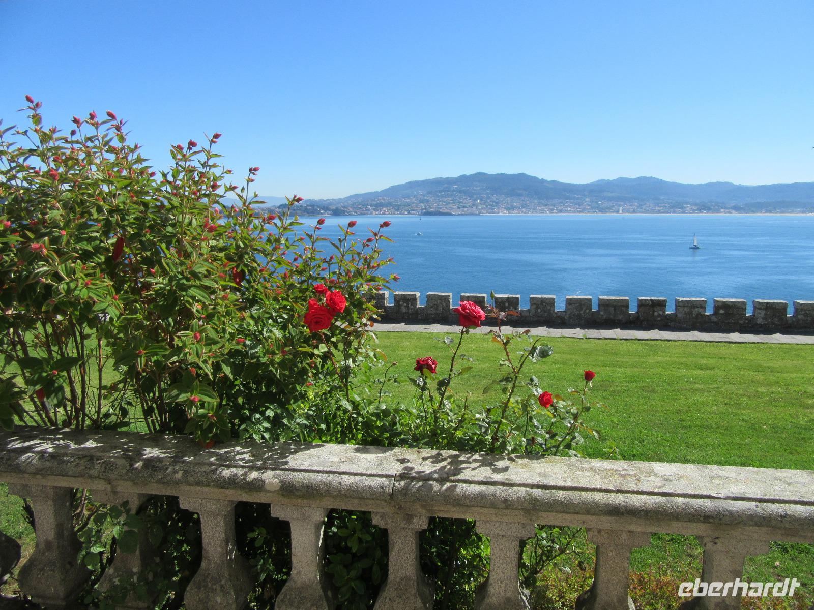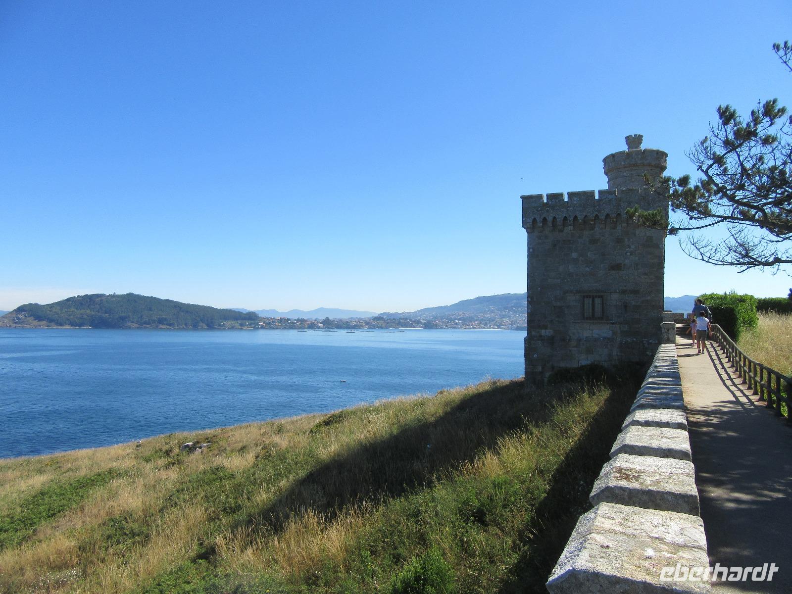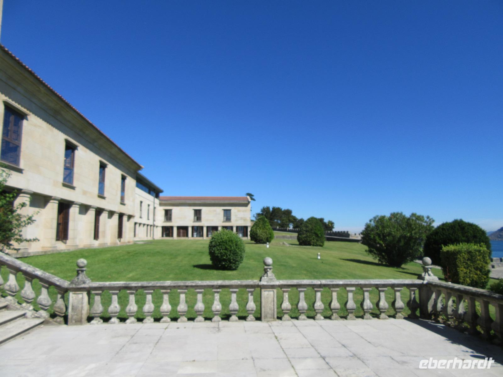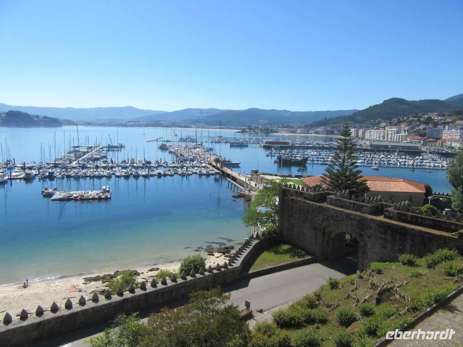 Wir verlassen Santiago de Compostela und fahren in Richtung Süden nach Baiona und die hübsche Ria de Baiona. Auf unserem Weg haben wir verschiedene Muschel-Zuchten in der Umgebung gesehen. In Baiona angekommen, fuhren wir entlang der Küste bis zur Tempelburg Monterreal. Neben der Burg haben wir den schönen Hafen und die Replik der Pinta von Christoph Kolumbus gesehen. Vor den Türen der Festung begannen wir unseren Spaziergang durch die Mauer. Langsam kamen wir auf die Mauer und gingen bis zum höchsten Teil, wo sich heutzutage der Parador befindet, ein staatliches Hotel das um die alte Festung und Burg saniert wurde. Wir hatten eine angenehme Temperatur und deswegen haben wir etwas in diesem schönen Parador getrunken, sowie den Ausblick genossen.