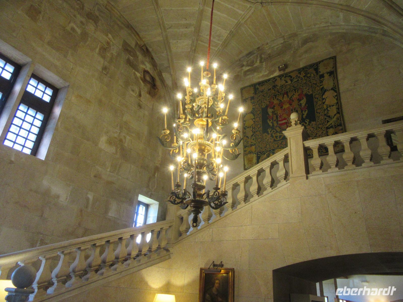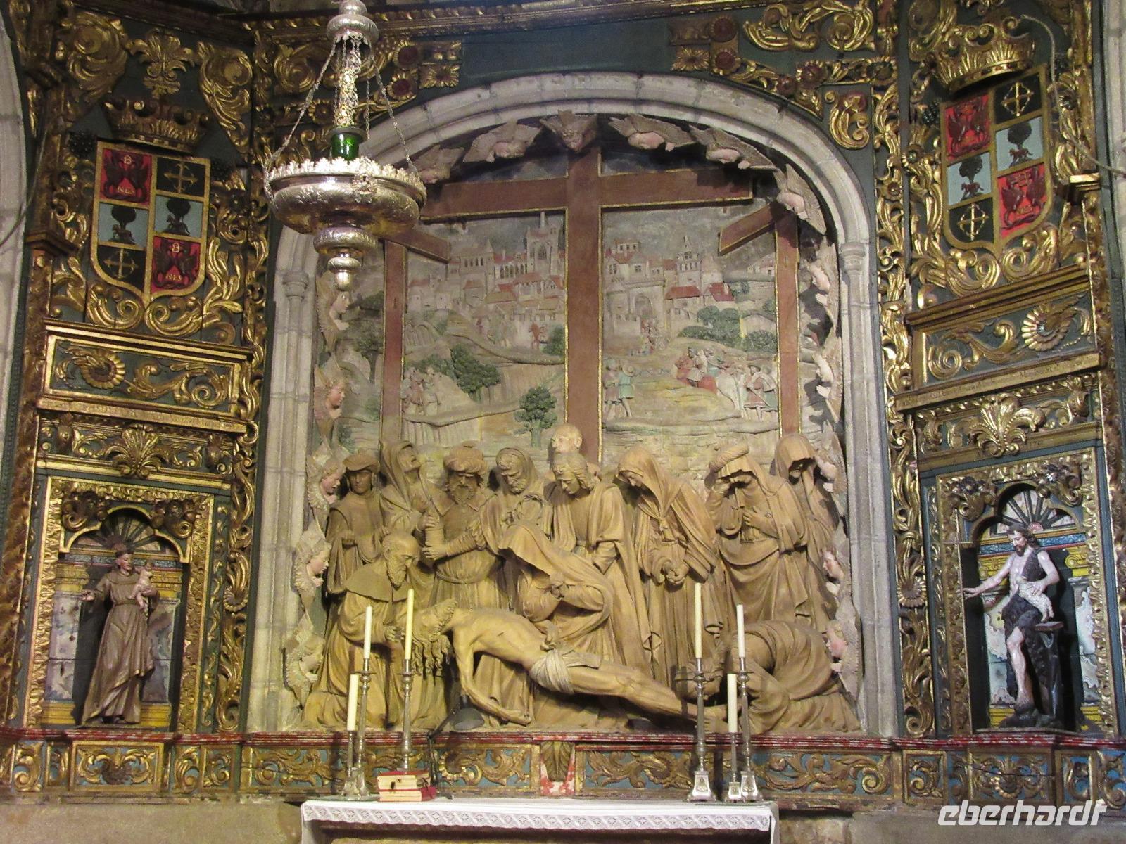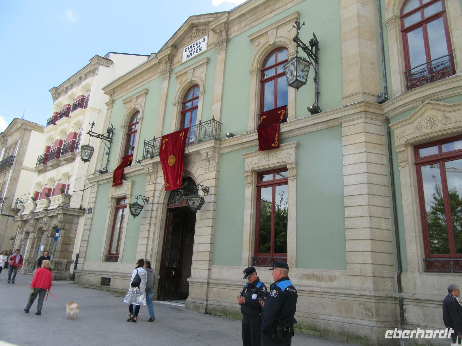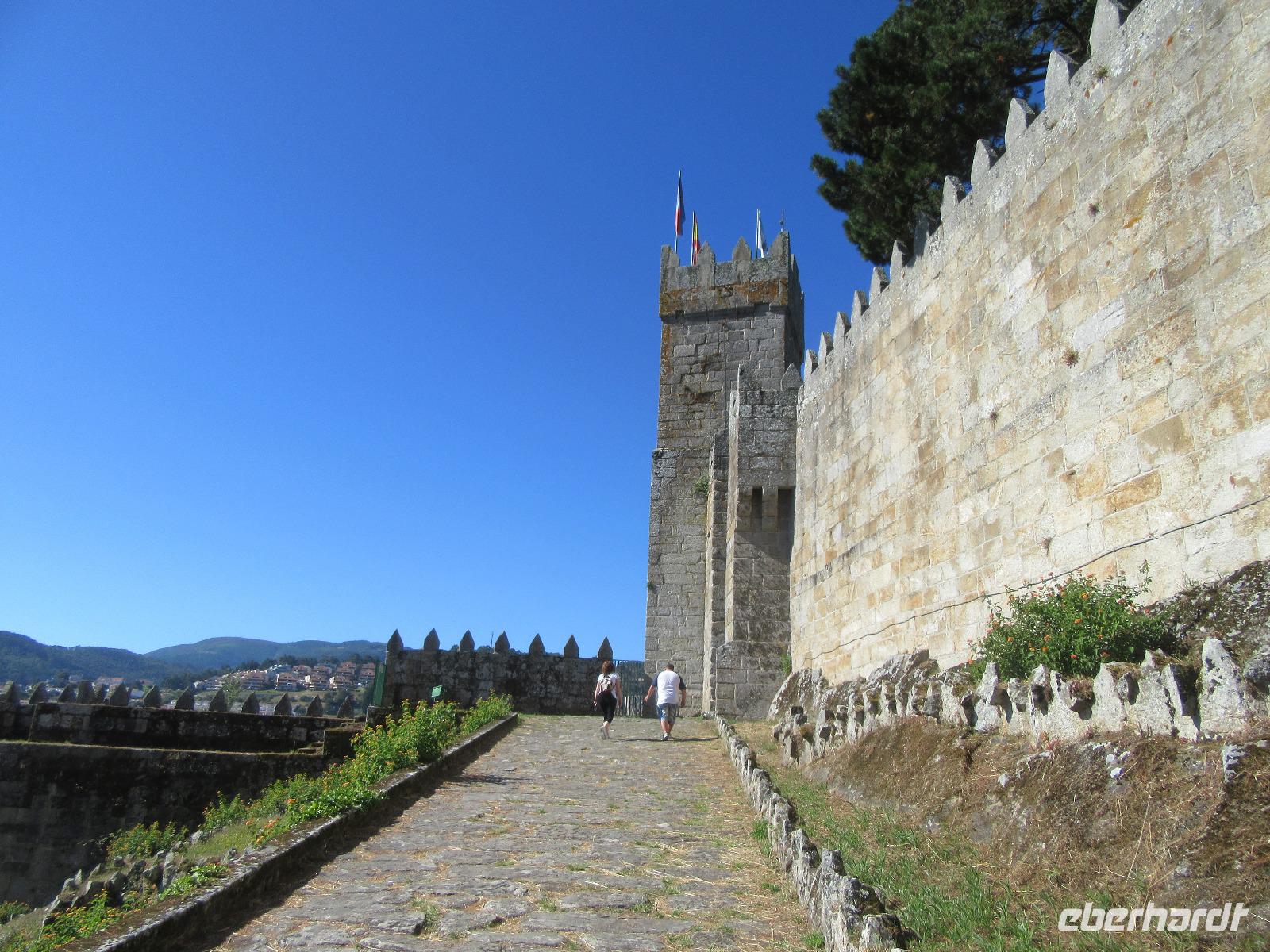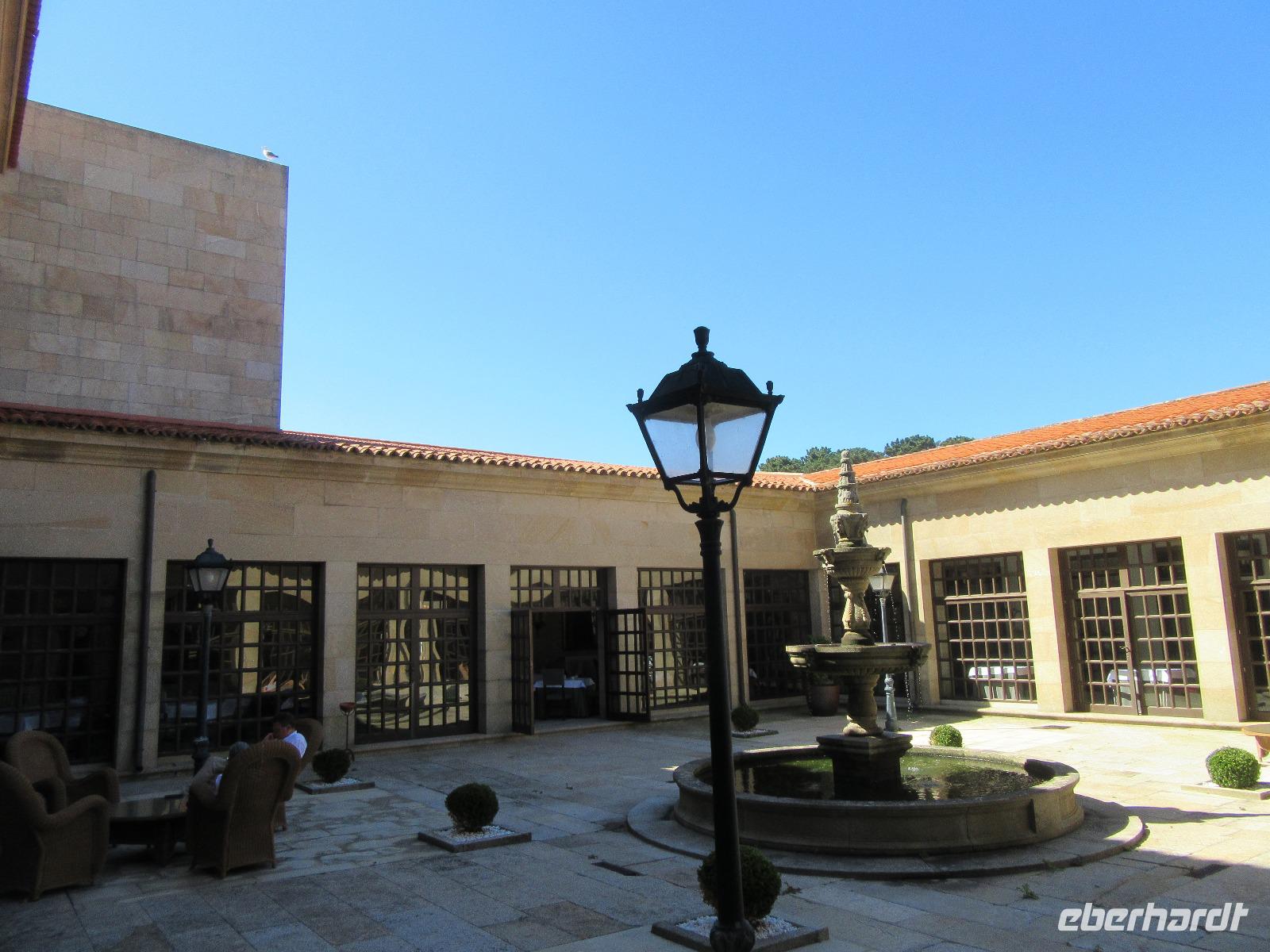 Wir verlassen Santiago de Compostela und fahren in Richtung Süden nach Baiona und die hübsche Ria de Baiona. Auf unserem Weg haben wir verschiedene Muschel-Zuchten in der Umgebung gesehen. In Baiona angekommen, fuhren wir entlang der Küste bis zur Tempelburg Monterreal. Neben der Burg haben wir den schönen Hafen und die Replik der Pinta von Christoph Kolumbus gesehen. Vor den Türen der Festung begannen wir unseren Spaziergang durch die Mauer. Langsam kamen wir auf die Mauer und gingen bis zum höchsten Teil, wo sich heutzutage der Parador befindet, ein staatliches Hotel das um die alte Festung und Burg saniert wurde. Wir hatten eine angenehme Temperatur und deswegen haben wir etwas in diesem schönen Parador getrunken, sowie den Ausblick genossen.