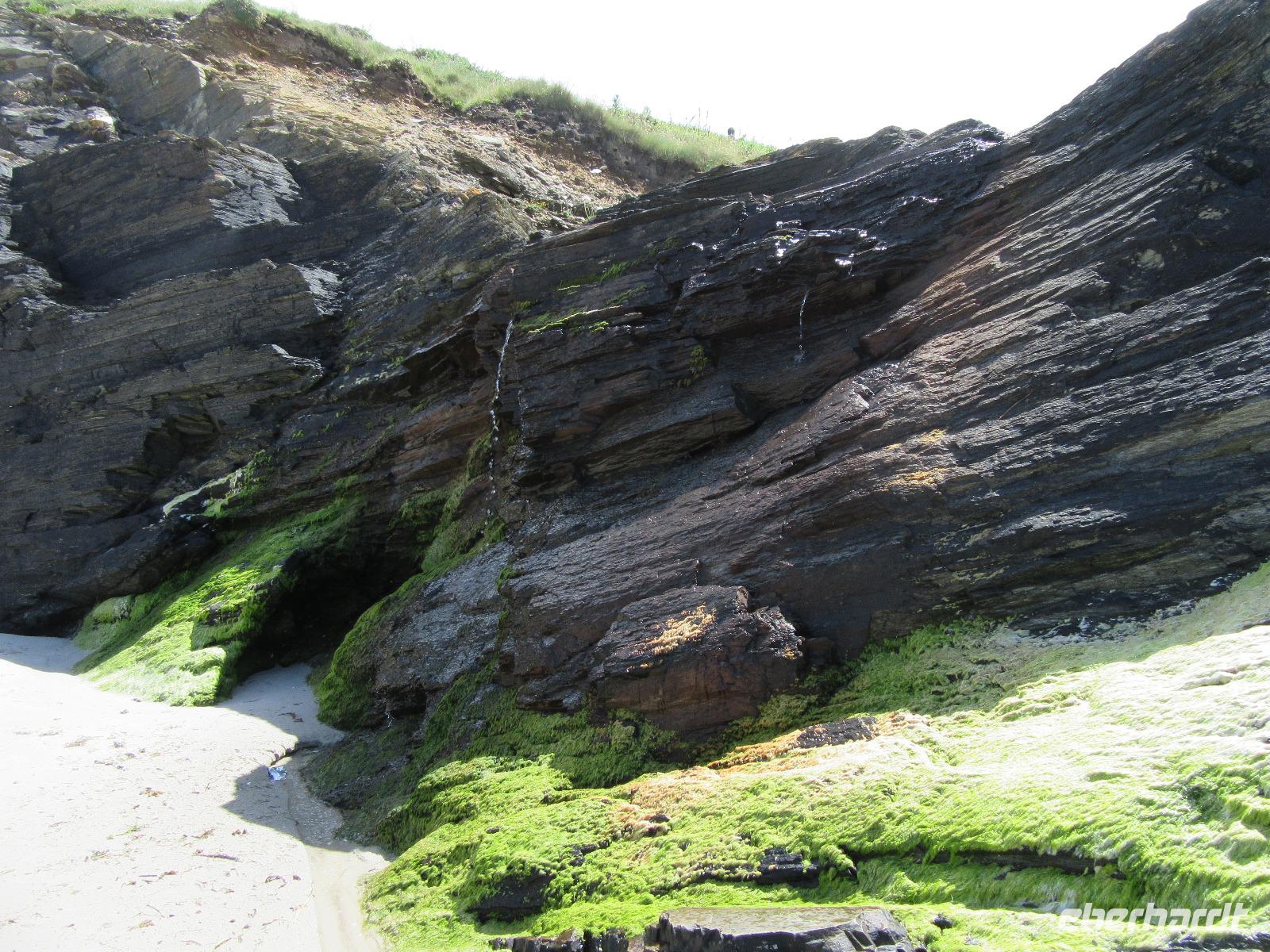 Dann machten wir eine Pause in der Umgebung, direkt im Dorf Ézaro. Wir versuchten uns den Wasserfall anzuschauen und darum machten wir eine Pause in diesem Dorf direkt an der Küste. Das Wetter war ganz angenehm, deswegen machten wir eine Olivenöl-Verkostung am Strand und schon waren zwei der drei Hauptattraktionen des Tages erledigt: Westlichsten Punkt Spaniens besucht und spanisches Gold verkostet.