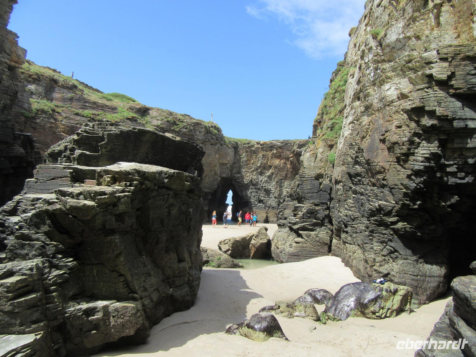 Nach unserer Freizeit trafen wir uns beim San Pedro Tor und fuhren weiter in die Umgebung von Ribadeo. Dort besuchten wir den berühmten Kathedralen-Strand von oben und unten. Die Sonne schien und wir konnten wunderschöne Fotos von den Bögen dieses schönen Strandes machen.