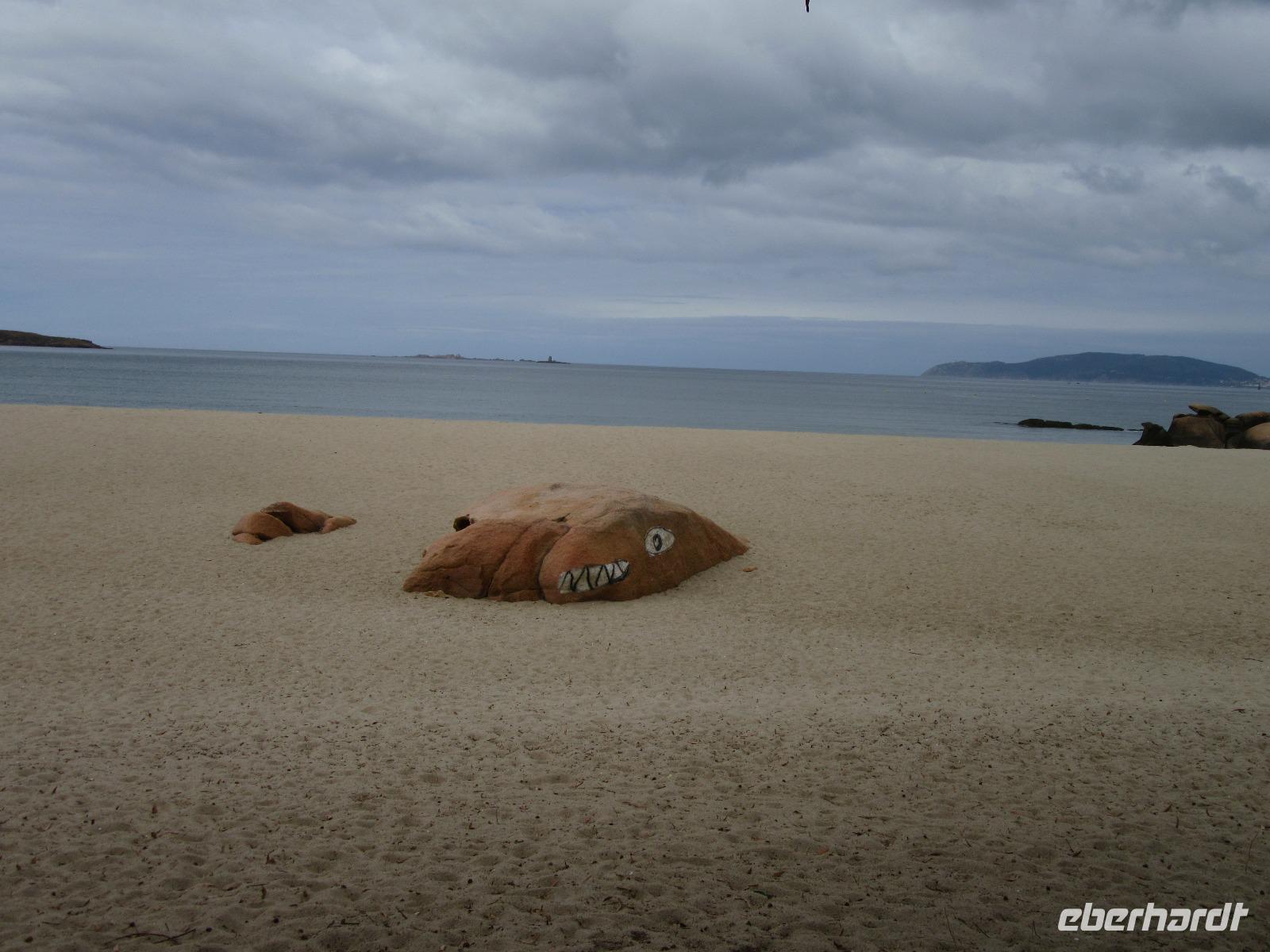 Dann fuhren wir weiter zur Halbinsel Magdalena, wo wir die drei Naos gesehen haben. Diese drei Boote sind von Veracruz (Mexiko) nach Santander gefahren und sind die Boots-Replik der „Santa Maria" von Kolumbus. Daneben fanden wir auch das Boot, mit dem Vital Alsar den Pazifik überquerte. Auf der anderen Seite der Boote fanden wir zwei Wasseranlagen mit Seelöwen.