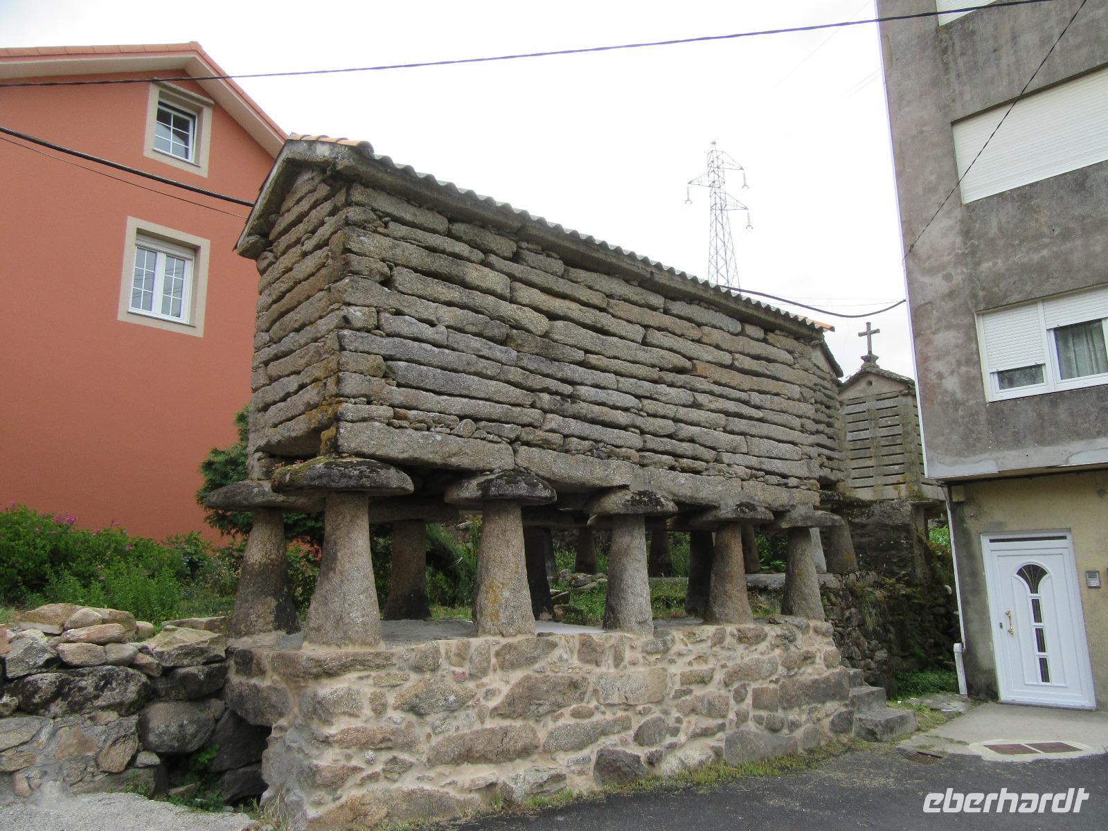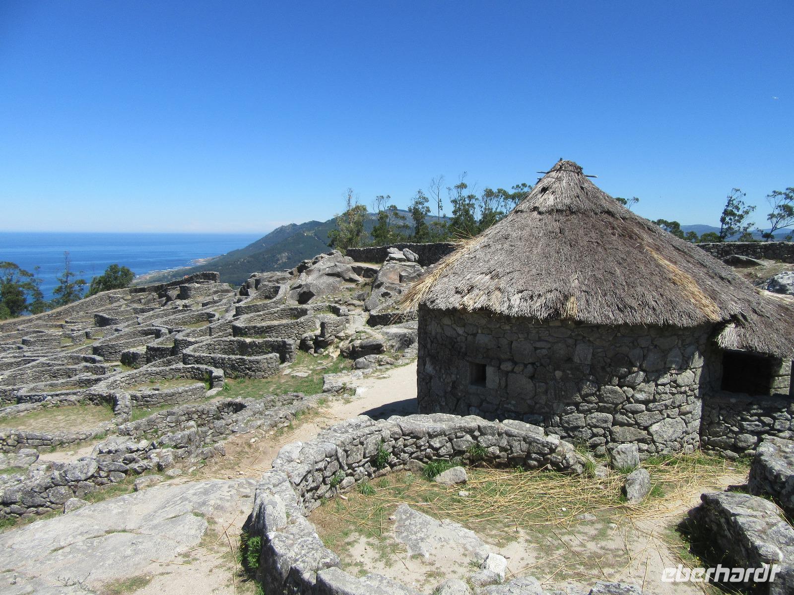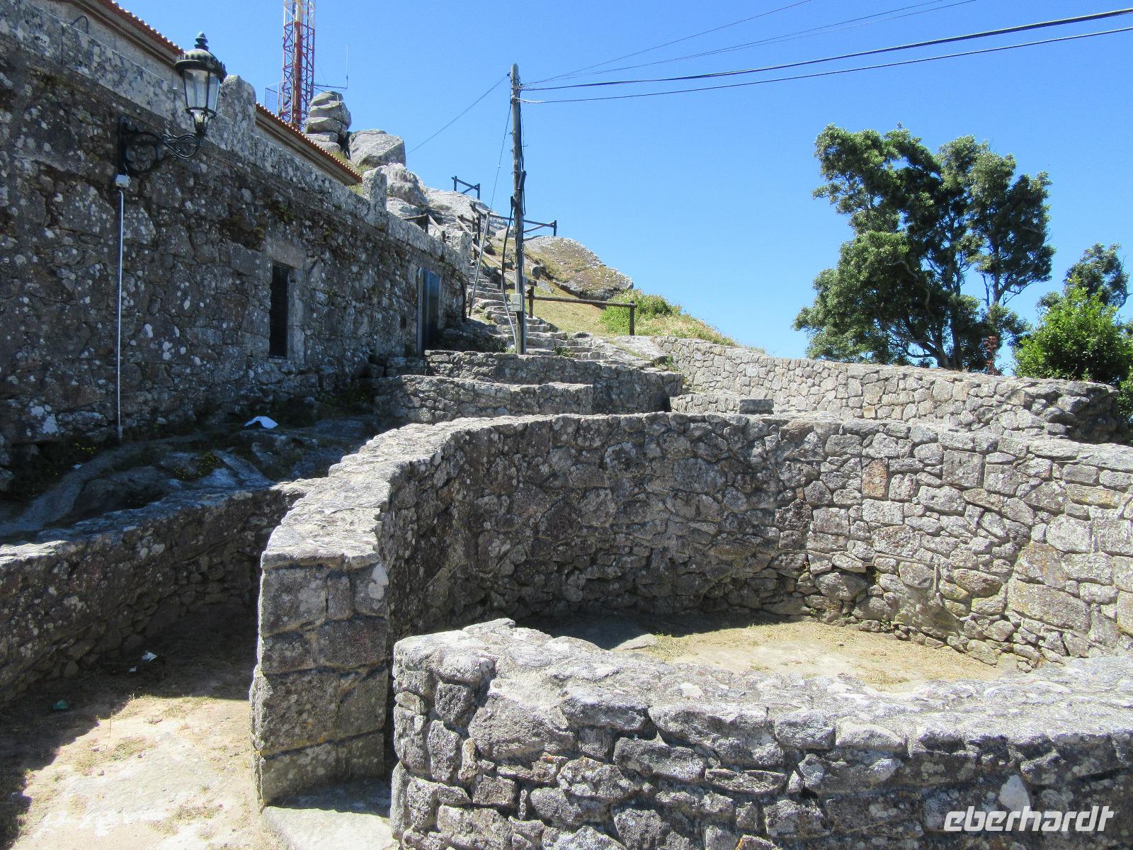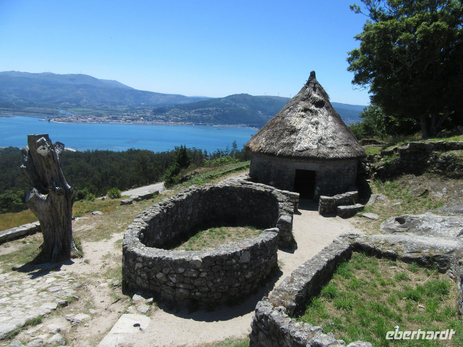 Nach diesem schönen Moment fuhren wir weiter nach A Guarda und auf den Berg Tecla. Da fanden wir das alte Kelten-Dorf mit seiner alten Mauer, sowie die Mühlen und Häuser. Leider waren nur die sanierten Ruinen aber so, dass wir erkennen konnten, wie das Dorf früher war. Auf dem höchsten Punkt des Bergs, sahen wir den Fluss Minho und die natürliche Grenze zwischen Spanien und Portugal. Bevor wir die Grenze überquerten, haben wir unseren letzten Albariño-Wein getrunken, um unseren letzten Moment in Spanien zu verewigen.