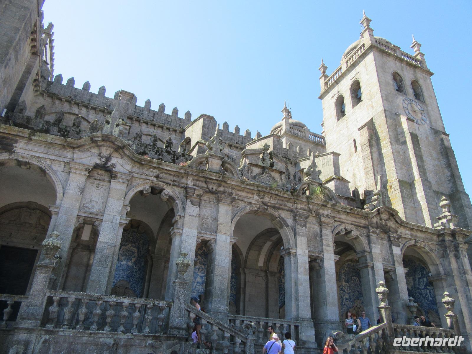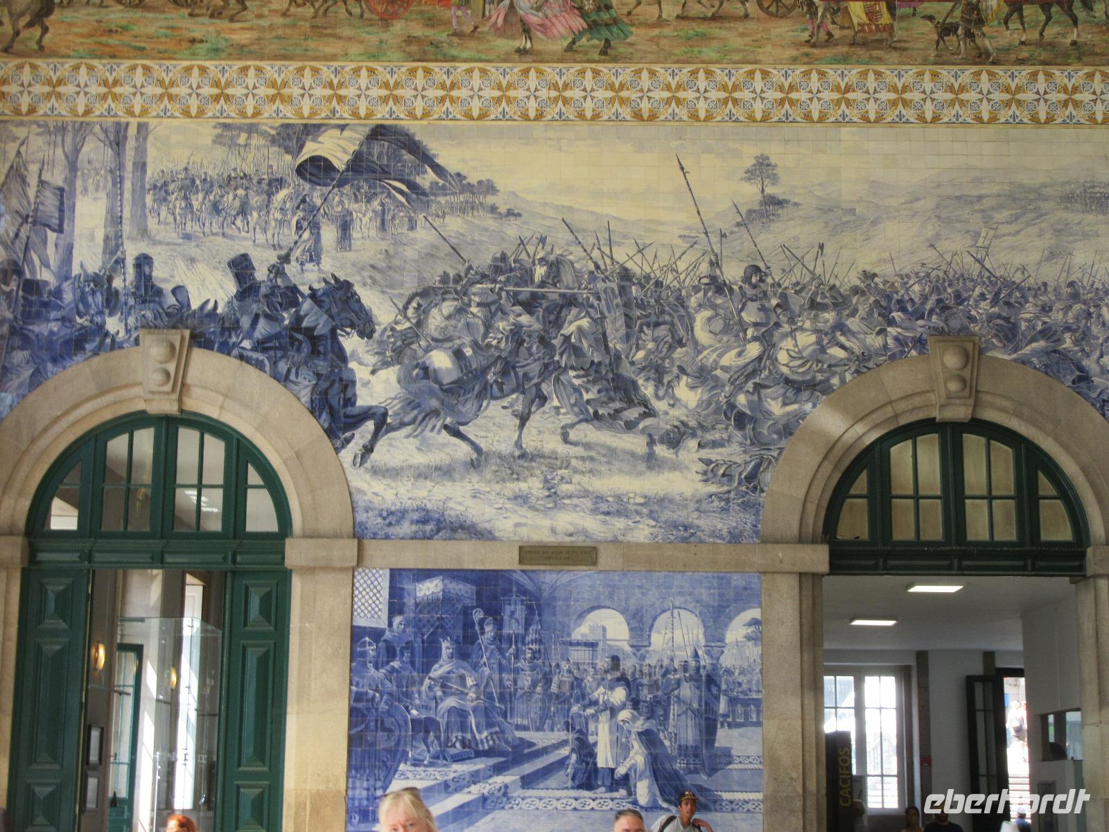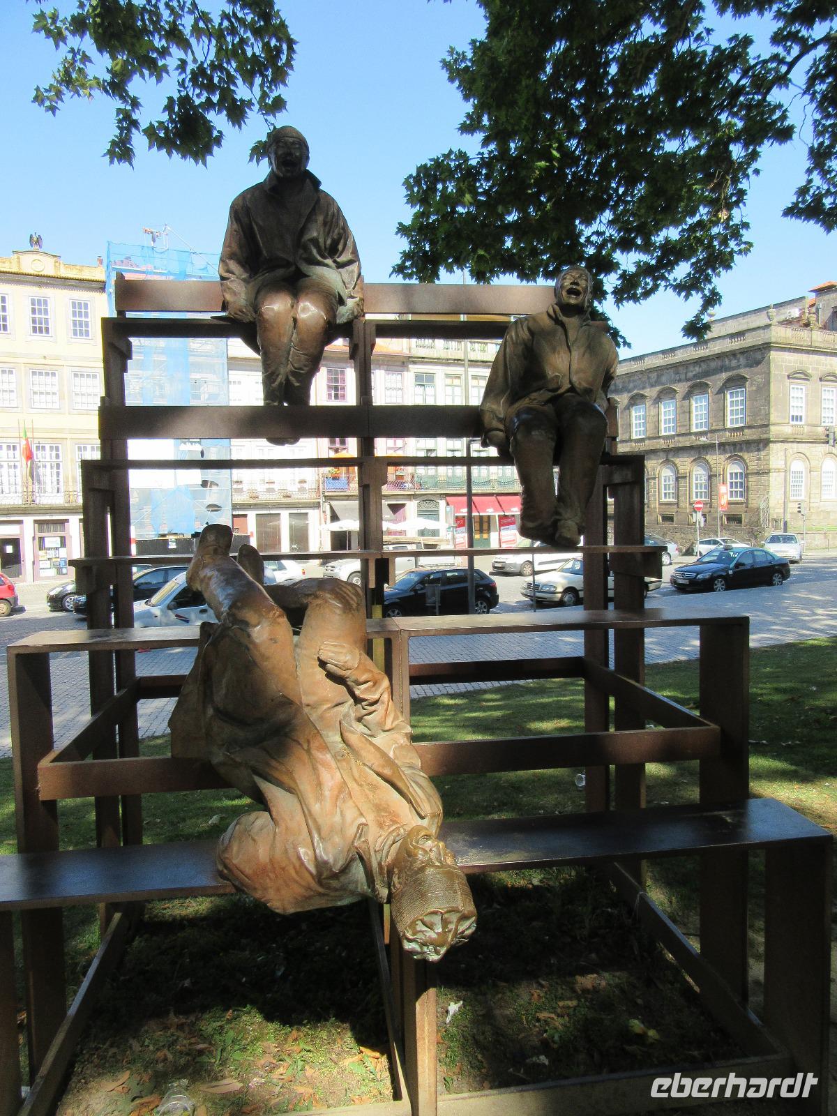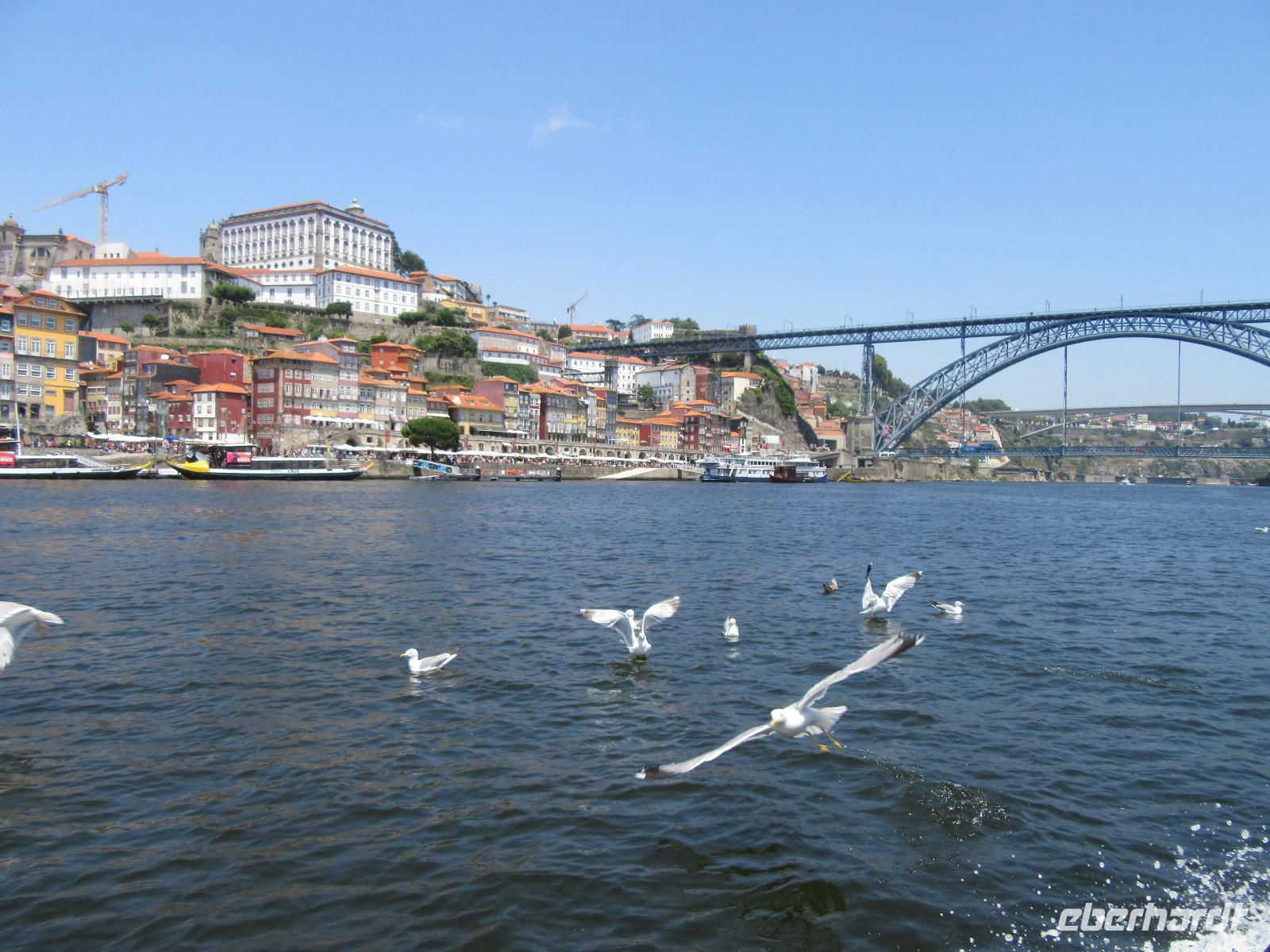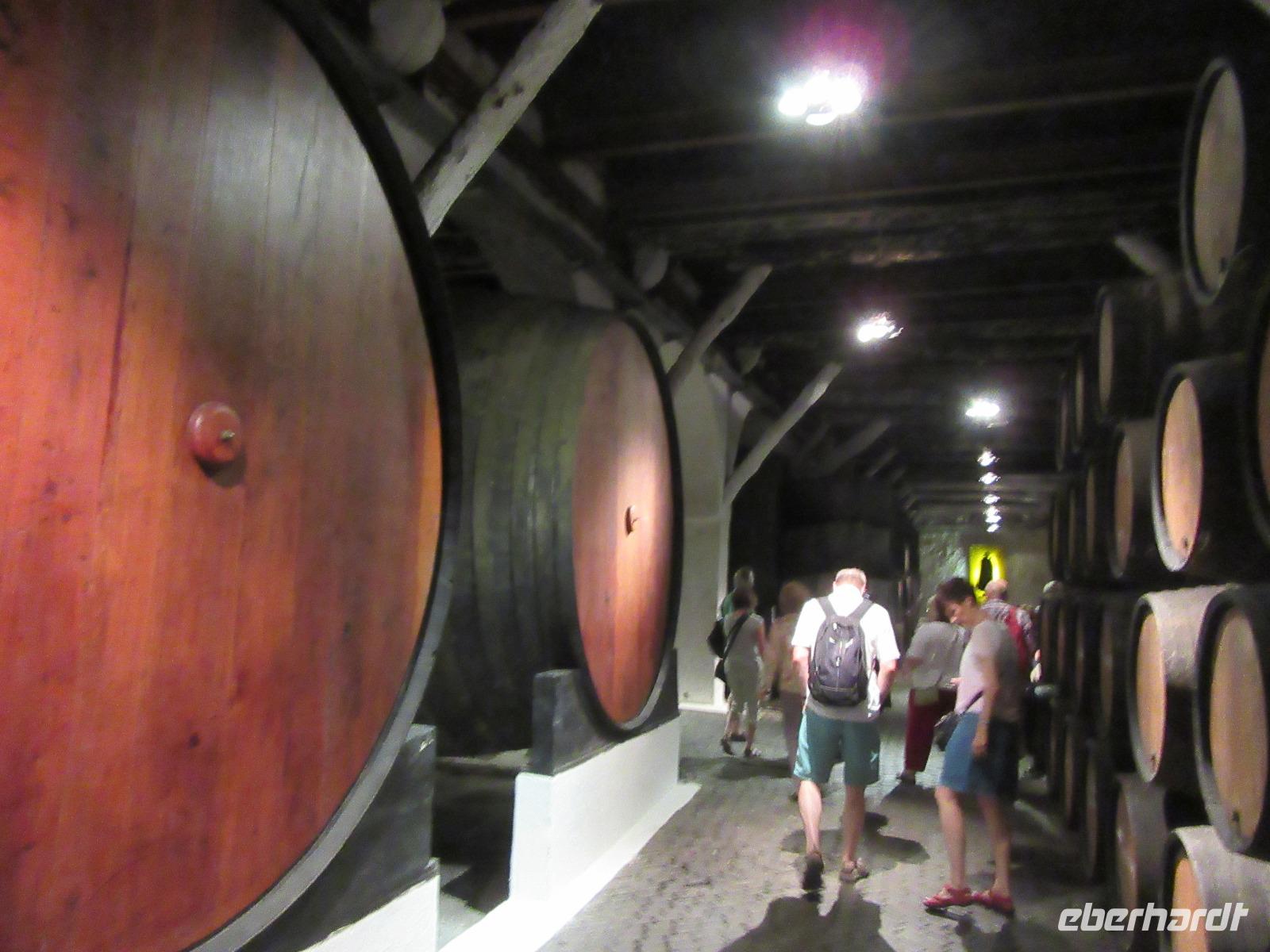 Danach passierten wir einen kleinen Fischerhafen im Fischerviertel der Stadt am Ende des Douro-Flusses, wo wir den alten Bahnhof und Züge gesehen haben. Die Stadtrundfahrt endet am Justiz-Palast, wo wir bei einem Spaziergang die lustigen Männer der Stadt kennengelernt haben. Es ging weiter und wir sahen die Kirche do Carmo mit ihrer hübschen Kachelfassade. Dann besuchten wir die bekannte Buchhandlung „Lello e Irmao", die schönste Portos und ein Drehort für die Harry-Potter-Filme. Von diesem Punkt sahen wir den größten Turm der Stadt mit 64 m Höhe: Torre dos Clérigos. Danach fuhren wir ein Stück weiter und besuchten die Kathedrale und kreuzten den Douro-Fluss bis Gaia, das alte Industriegebiet und wo sich die Weinkellerei befindet. In Gaia besuchten wir die bekannte Weinkellerei „Sandeman", haben den Herstellungsprozess und die Besonderheiten dieses Weines kennengelernt und natürlich diesen originalen Portwein auch probiert.