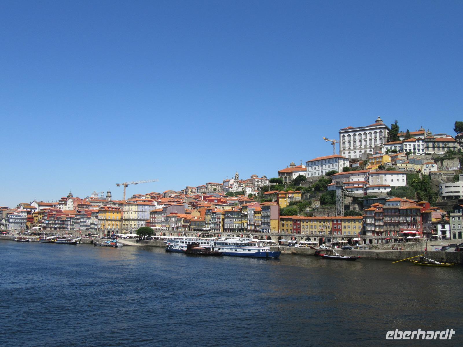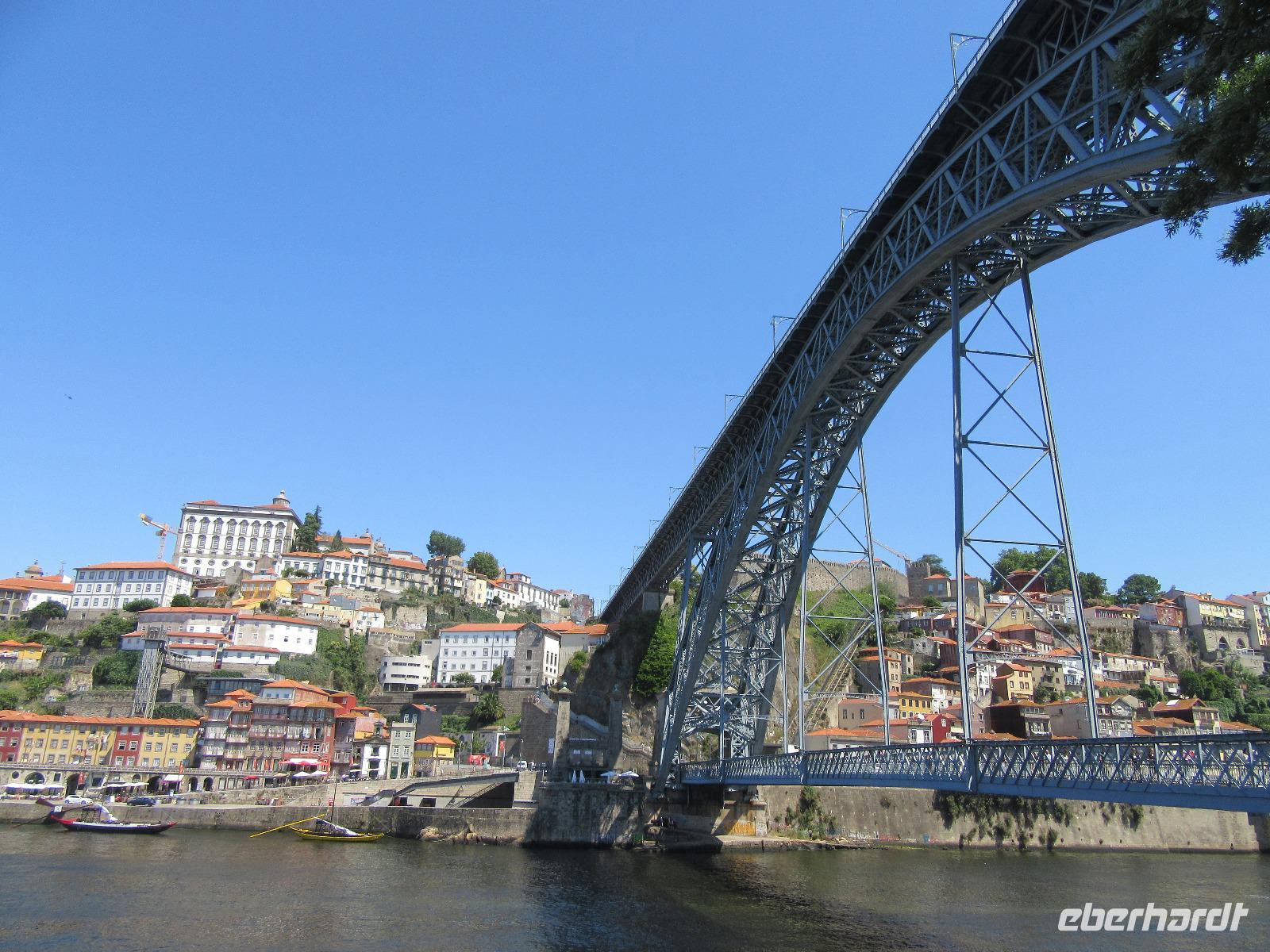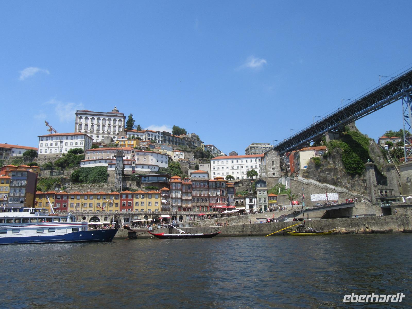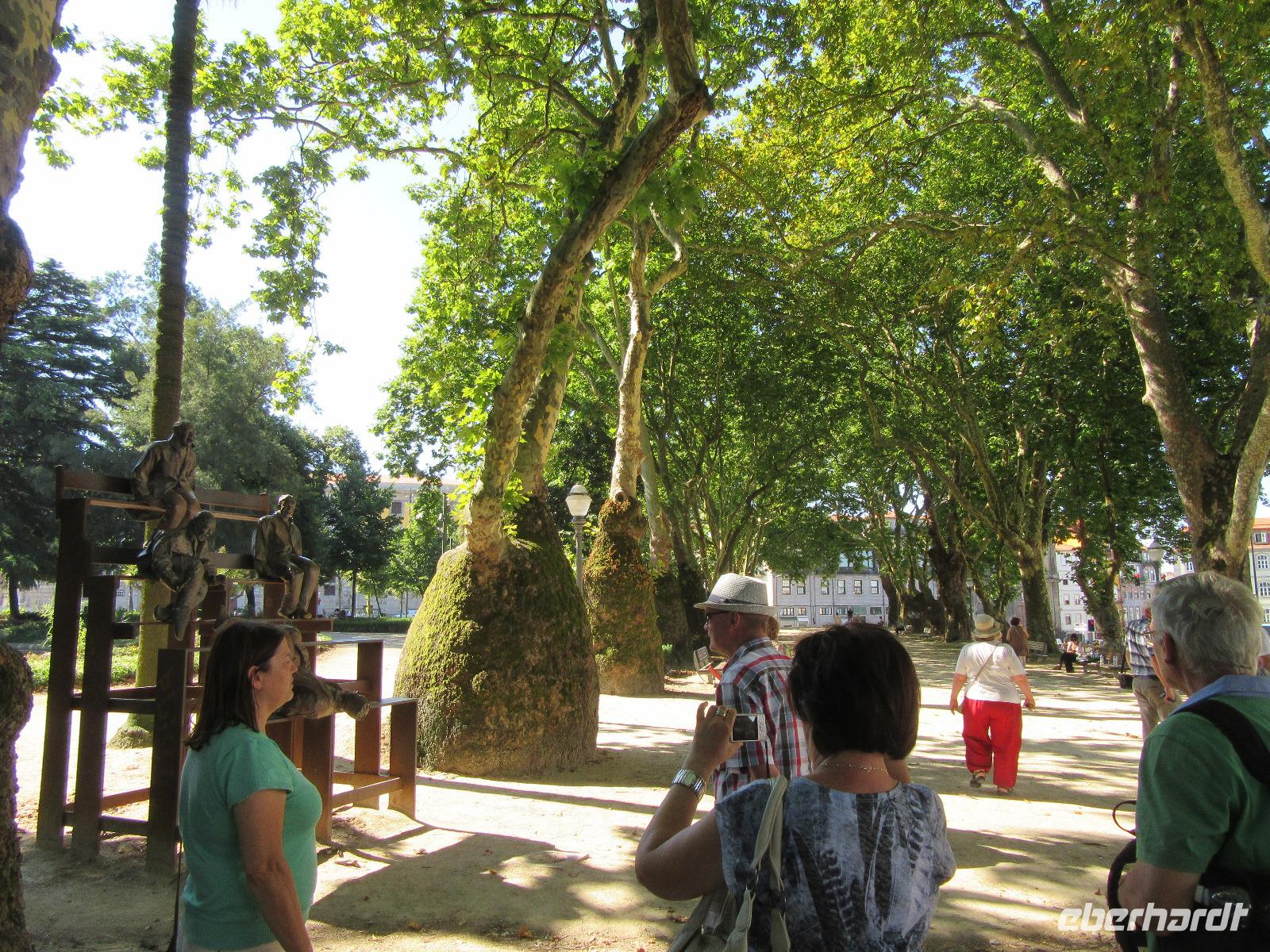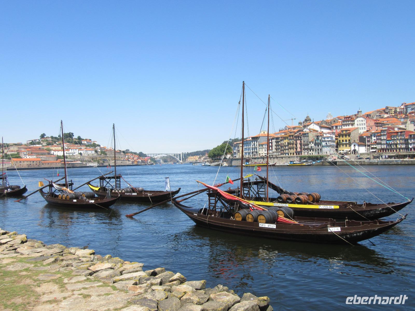 Danach passierten wir einen kleinen Fischerhafen im Fischerviertel der Stadt am Ende des Douro-Flusses, wo wir den alten Bahnhof und Züge gesehen haben. Die Stadtrundfahrt endet am Justiz-Palast, wo wir bei einem Spaziergang die lustigen Männer der Stadt kennengelernt haben. Es ging weiter und wir sahen die Kirche do Carmo mit ihrer hübschen Kachelfassade. Dann besuchten wir die bekannte Buchhandlung „Lello e Irmao", die schönste Portos und ein Drehort für die Harry-Potter-Filme. Von diesem Punkt sahen wir den größten Turm der Stadt mit 64 m Höhe: Torre dos Clérigos. Danach fuhren wir ein Stück weiter und besuchten die Kathedrale und kreuzten den Douro-Fluss bis Gaia, das alte Industriegebiet und wo sich die Weinkellerei befindet. In Gaia besuchten wir die bekannte Weinkellerei „Sandeman", haben den Herstellungsprozess und die Besonderheiten dieses Weines kennengelernt und natürlich diesen originalen Portwein auch probiert.
