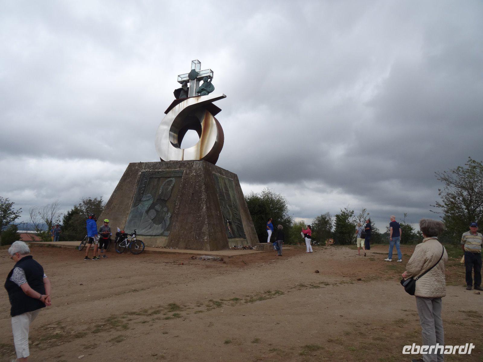 Auf der Rückfahrt nach Santiago de Compostela legen wir noch einen Halt auf dem Monte de Gozo ein, dem letzten Pilgerziel vor Santiago de Compostela. Von diesem Berg aus erblickten die Pilger die Stadt zu ihren Füßen und waren darüber natürlich sehr erfreut und dankbar. Wir fotografieren das Denkmal auf der Kuppe und lassen uns auch einen Pilgerstempel aufdrücken.