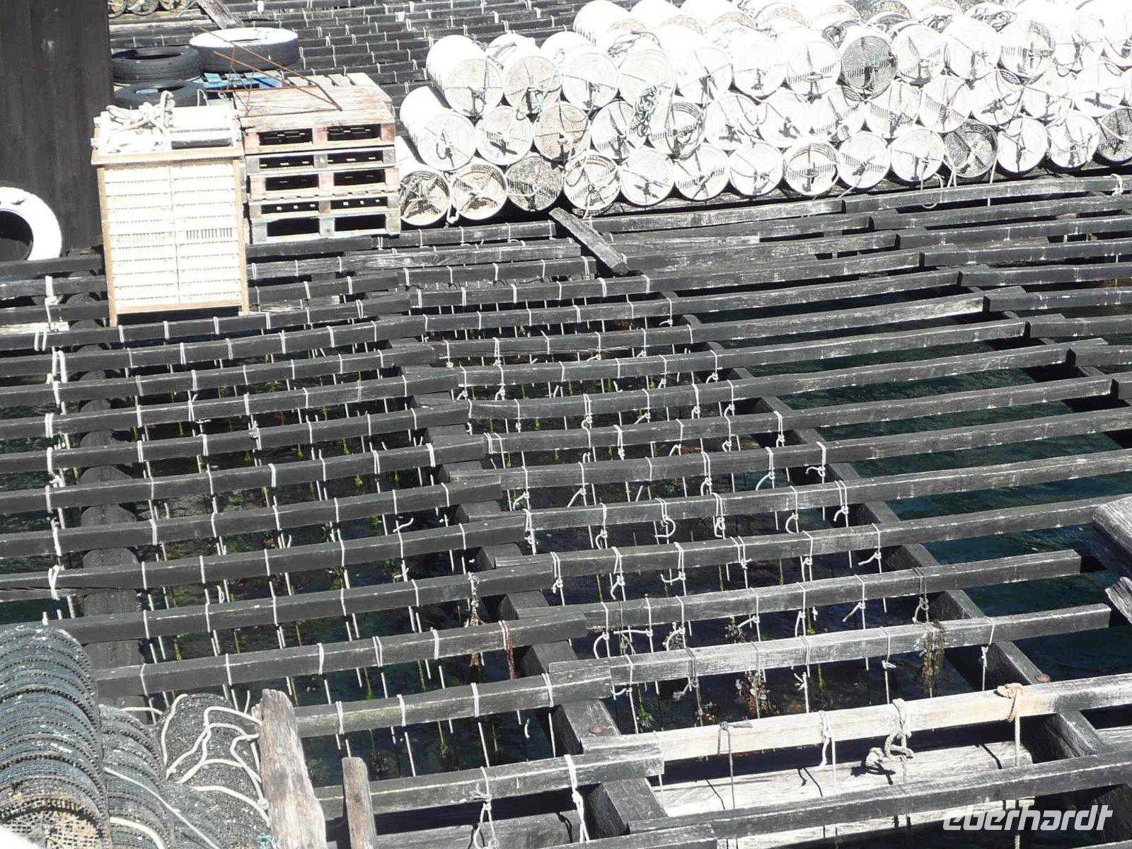 Der Tag wird durch eine Spezialität Galiziens bestimmt: den Muscheln. Wir fahren zur Halbinsel O Grove, sie wartet mit langen Sandstränden und einem Fischereihafen. Hauptbeschäftigung der Fischer ist hier nicht der Fischfang sondern die Zucht und Ernte der verschiedensten Meeresfrüchte. Mit dem Boot Crucero Pelegrin fahren wir ein Stück hinaus zu den Muschelbänken und lassen uns diese schwierige und mühselige Arbeit erklären. Überwiegend werden Miesmuscheln gezüchtet,sie werden an langen Seilen fixiert und hängen unterhalb der Flöße aus Eukalyptusholz. Nach 15-18 Monaten können sie geerntet werden. Auch Austern (Ostrea edulis), Herzmuscheln, Venusmuscheln und Jakobsmuscheln züchtet man vor Galiziens Küsten. Wir kommen in den Genuss fangfrischer Miesmuscheln al vapor und greifen herzhaft zu. Dazu schmeckt ein kühler Weißwein. Gegen einen Aufpreis kann man auch die delikaten Austern verkosten. MuntereDelfine begleiten unser Boot und sorgen für einen zusätzlichen Höhepunkt. Mittags kommen wir gut gesättigt wieder im Hafen an und wechseln nun das Beförderungsmittel - wir steigen in einen kleinen Touristenzug ein und umrunden in ihm die Insel La Toja mit ihren luxuriösen Hotels und Sportanlagen.