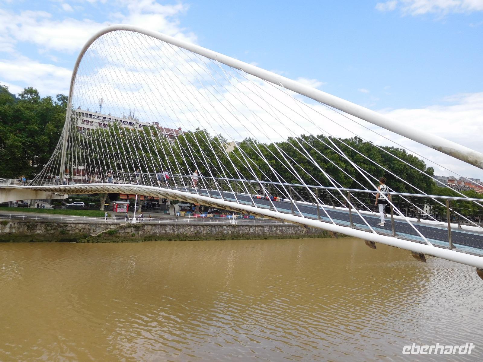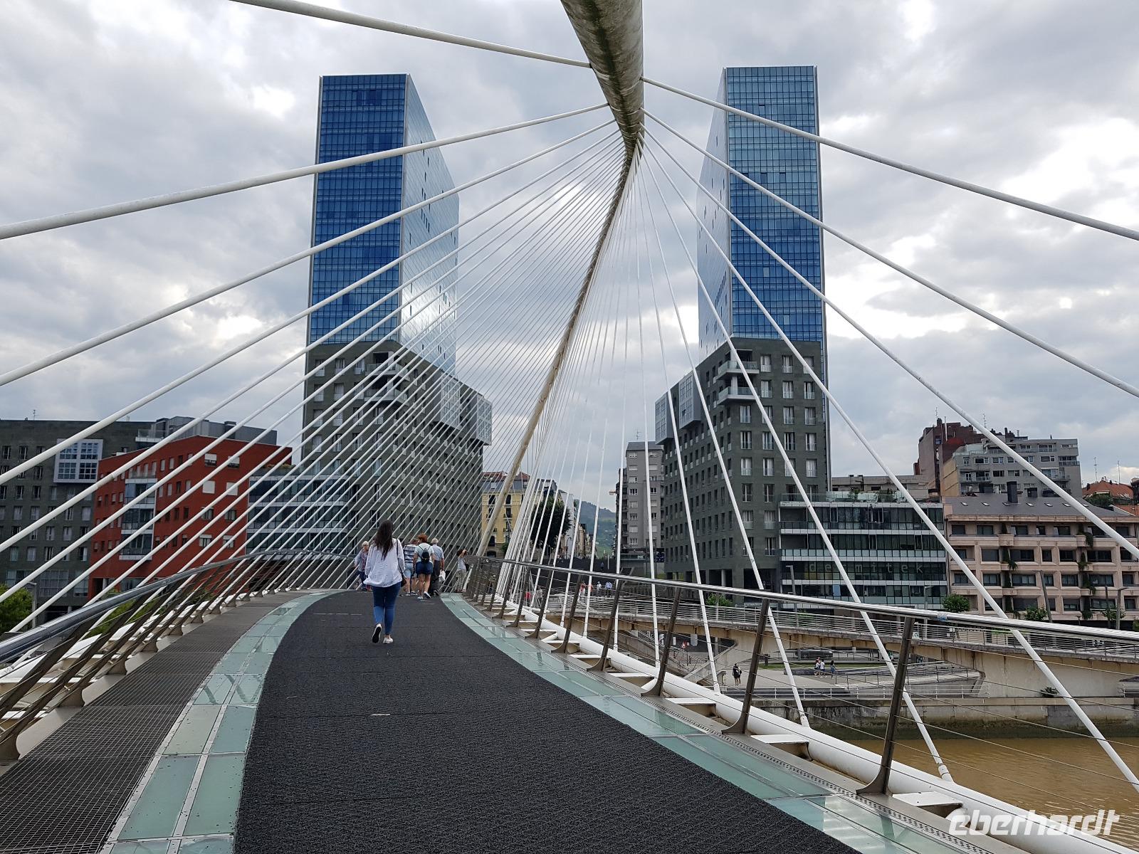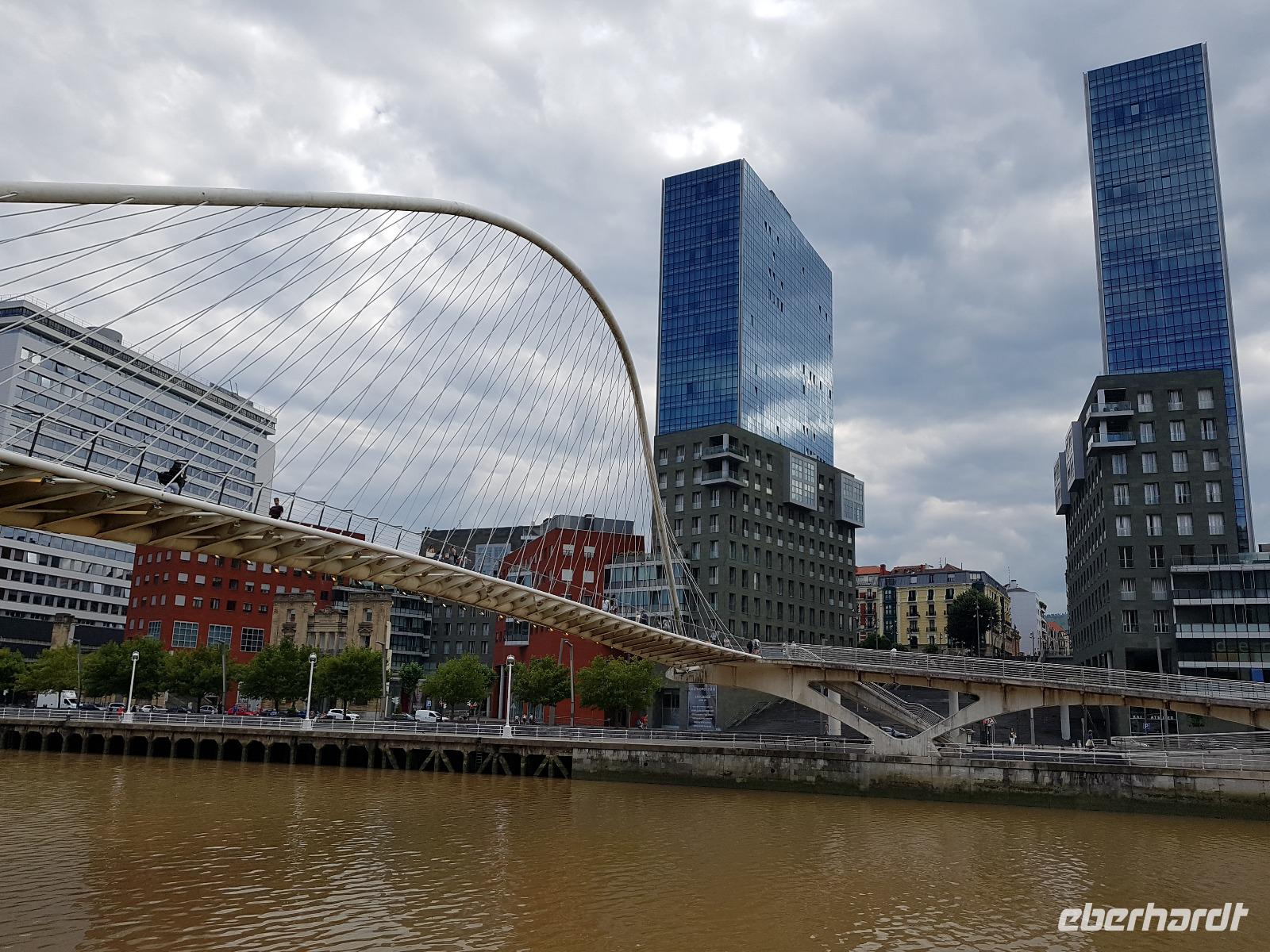 Wir haben gut geschlafen. Von Bilbao haben wir schon viel gehört, aber das es heute so schön sein würde, hat uns alle überwältigend überrascht. Nur allein diese Stadt ist eine Reise wert. Cristina kommt um 9 Uhr zum Hotel und gibt im Bus eine Einführung über Bilbao wie es war und was heute ist. Das eine Stadt sich so gut umwandeln kann hat uns alle überrascht. Von einer grauen, hässlichen, schmutzigen Industriestadt in eine schöne Weltmetropole mit einzigartiger Architektur direkt am Fluss Nervion. Wir machen erstmal eine Panorama -Stadtrundfahrt bis zur Altstadt. Unser Hotel liegt genau gegenüber der Isozaki Türme und Zubizuri Brücke, von Calatrava erbaut. Eine bessere Lage gibt es nicht.