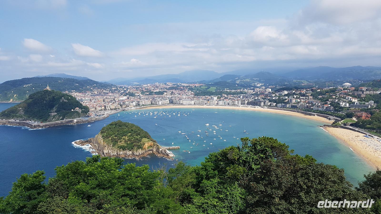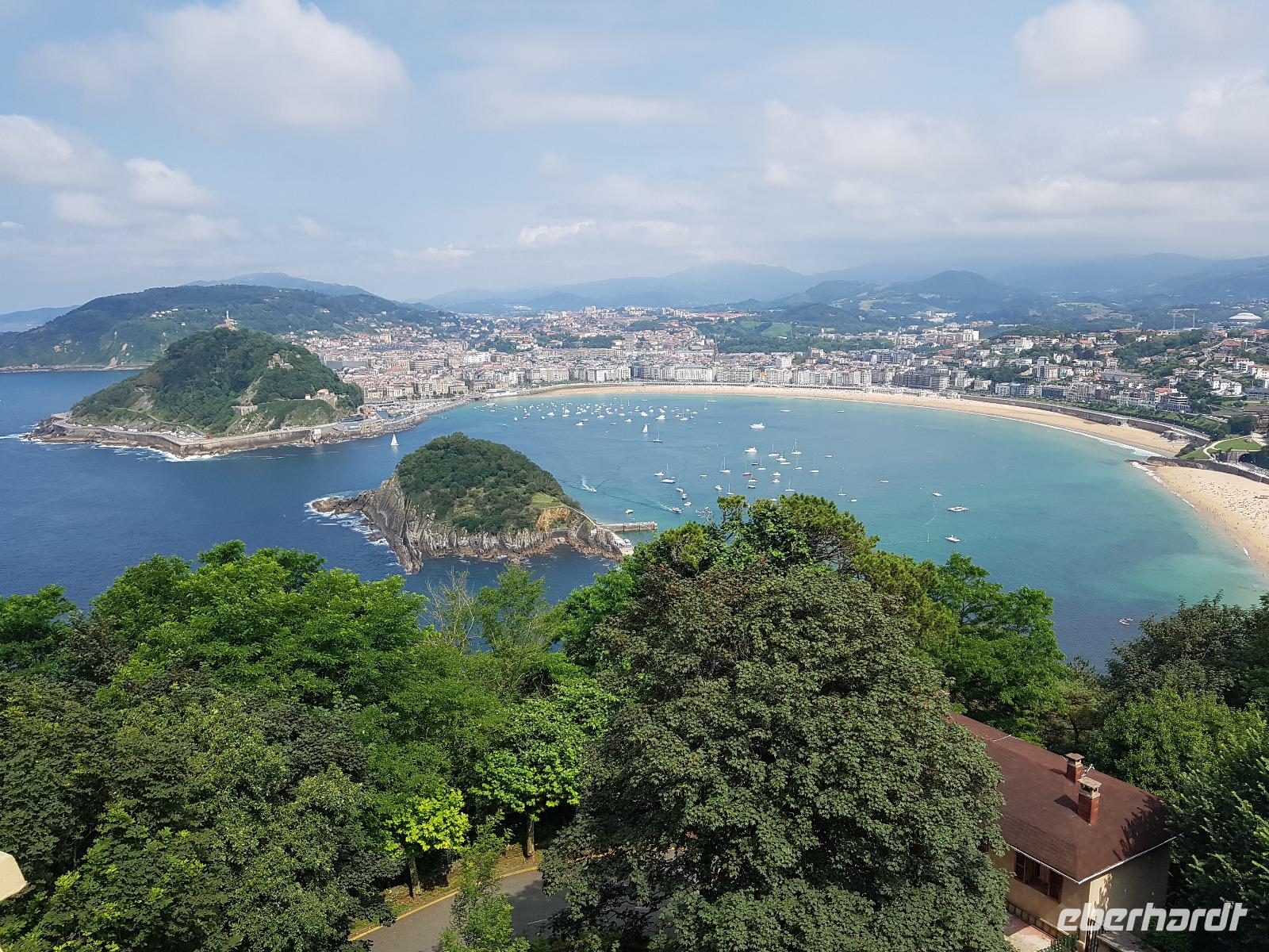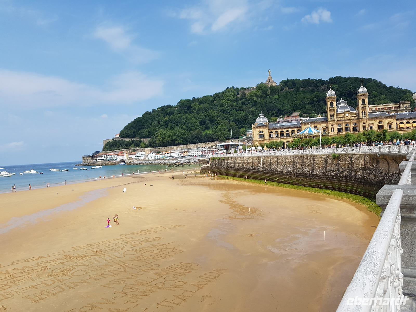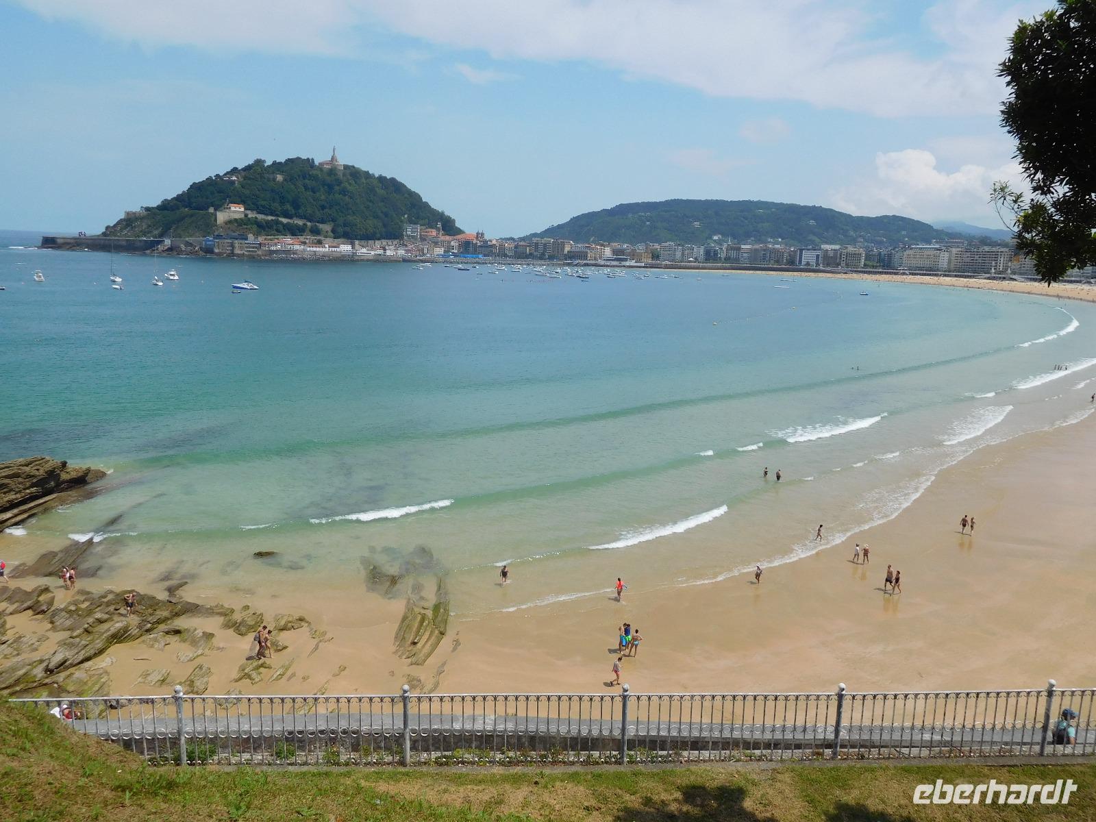 Heute freuen wir uns besonders darauf, dass wir zu der wohl schönsten Stadt des Baskenlandes und einer der schönsten Spaniens fahren. Nach einem wieder guten Frühstück begeben wir uns nach San Sebastian, Europäische Kulturhaupstadt 2016. Mit dem Wetter haben wir Glück, kein Regen. Mehr als eine Stunde fahren wir bis zum Busparkplatz in Donostia oder San Sebastian. Hier laufen wir gemütlich bis zum Kursaal und Kongresszentrum einmal pro Jahr gibt es da eine wichtige Filmverleihung wie in Cannes. Wir sehen die zwei schönen alten Brücken über den Fluß Urumea und gelangen erstmal zur Altstadt, besichtigen die Markthalle La Bretxa und sind von den Fischen begeistert. Anschließend besichtigen wie 2 schöne Kirchen, die man in San Sebastian auf jeden Fall sehen muss: San Vicente und Santa Maria del Coro. Einige wollen hier rein und wir geben uns 15 Minuten Freizeit. Danach laufen wir gemütlich weiter bis zum Rathaus oder dem ehemaligen Casino. Hier machen wir die Augen zu. 3, 2, 1.... Die Bucht und der herrliche Strand von San Sebastian ist vor unseren Augen. Jahrzehntelang war dies die Sommerresidenz des spanischen Königshofes. Wir sind begeistert von diesem Badeort und spazieren langsam und gemütlich die ganze Promenade bis zum Miramar Palast, wo Königin Maria Cristina weg von Madrid ihre Sommerurlaube machte. Ein herrliches Gebäude, gebaut im englischen Stil, welches mit seinen roten Ziegeln an eine englische Cottage mit seiner grünen Gartenanlage erinnert. Wir lassen uns von dieser prunkvollen Stadt mit der traumhaften Lage an der Bucht von La Concha und dem Ambiente eines eleganten Seebades einfach verzaubern. Nach diesem ausgedehnten Spaziergang, vorbei am Rathaus, entlang des schönen La Concha-Strandes bis hin zum Schloss Miramar machen wir 2 Stunden Freizeit. Einige gehen essen, andere baden und einige beides oder mindestens die Füße im Wasser nass machen. Herrlich.