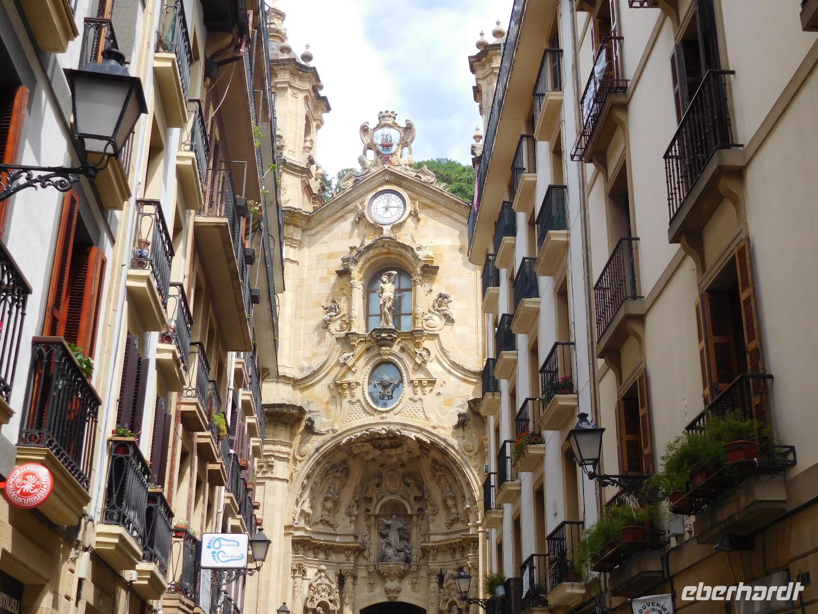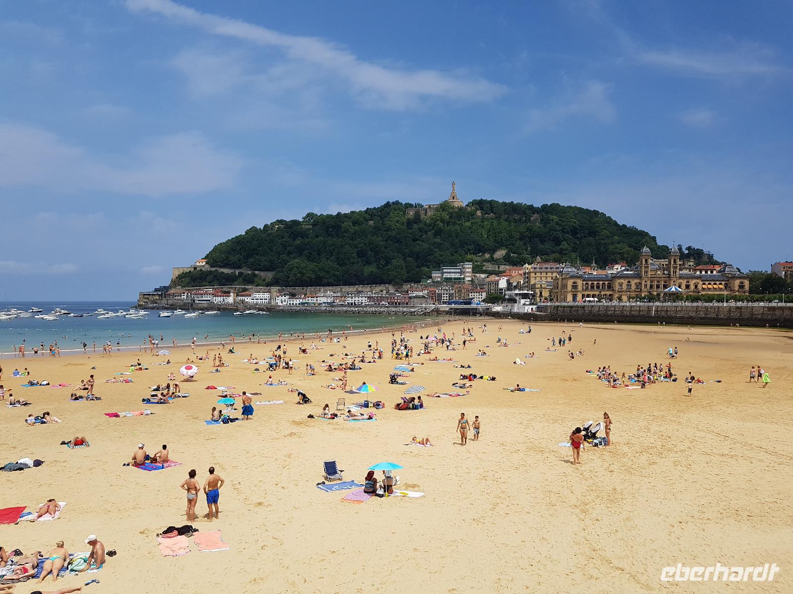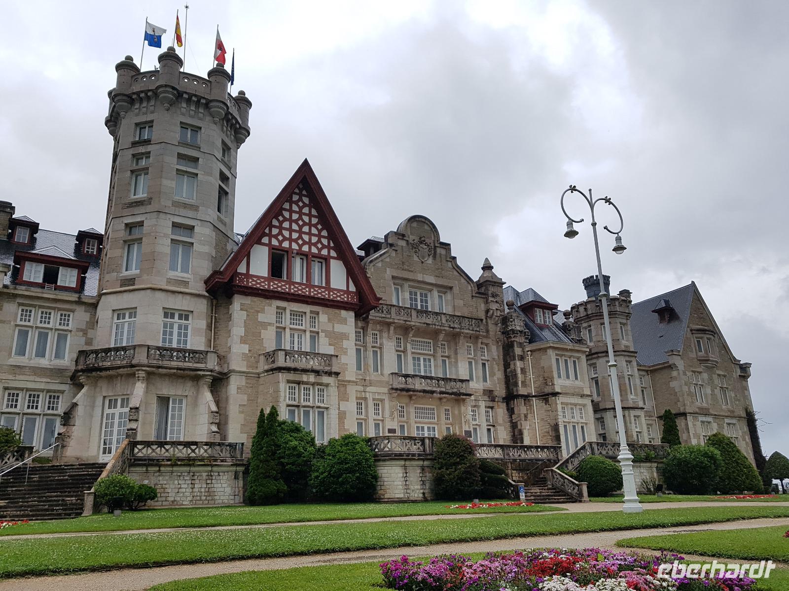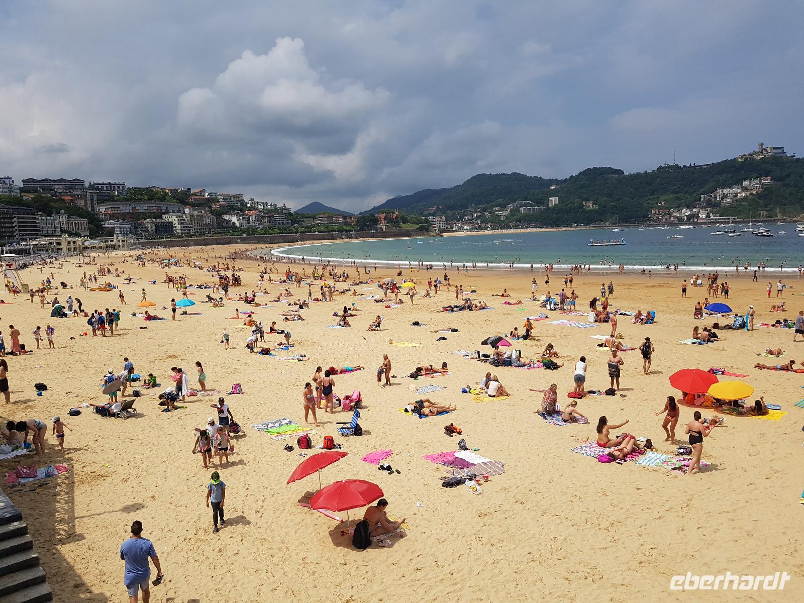 Heute freuen wir uns besonders darauf, dass wir zu der wohl schönsten Stadt des Baskenlandes und einer der schönsten Spaniens fahren. Nach einem wieder guten Frühstück begeben wir uns nach San Sebastian, Europäische Kulturhaupstadt 2016. Mit dem Wetter haben wir Glück, kein Regen. Mehr als eine Stunde fahren wir bis zum Busparkplatz in Donostia oder San Sebastian. Hier laufen wir gemütlich bis zum Kursaal und Kongresszentrum einmal pro Jahr gibt es da eine wichtige Filmverleihung wie in Cannes. Wir sehen die zwei schönen alten Brücken über den Fluß Urumea und gelangen erstmal zur Altstadt, besichtigen die Markthalle La Bretxa und sind von den Fischen begeistert. Anschließend besichtigen wie 2 schöne Kirchen, die man in San Sebastian auf jeden Fall sehen muss: San Vicente und Santa Maria del Coro. Einige wollen hier rein und wir geben uns 15 Minuten Freizeit. Danach laufen wir gemütlich weiter bis zum Rathaus oder dem ehemaligen Casino. Hier machen wir die Augen zu. 3, 2, 1.... Die Bucht und der herrliche Strand von San Sebastian ist vor unseren Augen. Jahrzehntelang war dies die Sommerresidenz des spanischen Königshofes. Wir sind begeistert von diesem Badeort und spazieren langsam und gemütlich die ganze Promenade bis zum Miramar Palast, wo Königin Maria Cristina weg von Madrid ihre Sommerurlaube machte. Ein herrliches Gebäude, gebaut im englischen Stil, welches mit seinen roten Ziegeln an eine englische Cottage mit seiner grünen Gartenanlage erinnert. Wir lassen uns von dieser prunkvollen Stadt mit der traumhaften Lage an der Bucht von La Concha und dem Ambiente eines eleganten Seebades einfach verzaubern. Nach diesem ausgedehnten Spaziergang, vorbei am Rathaus, entlang des schönen La Concha-Strandes bis hin zum Schloss Miramar machen wir 2 Stunden Freizeit. Einige gehen essen, andere baden und einige beides oder mindestens die Füße im Wasser nass machen. Herrlich.