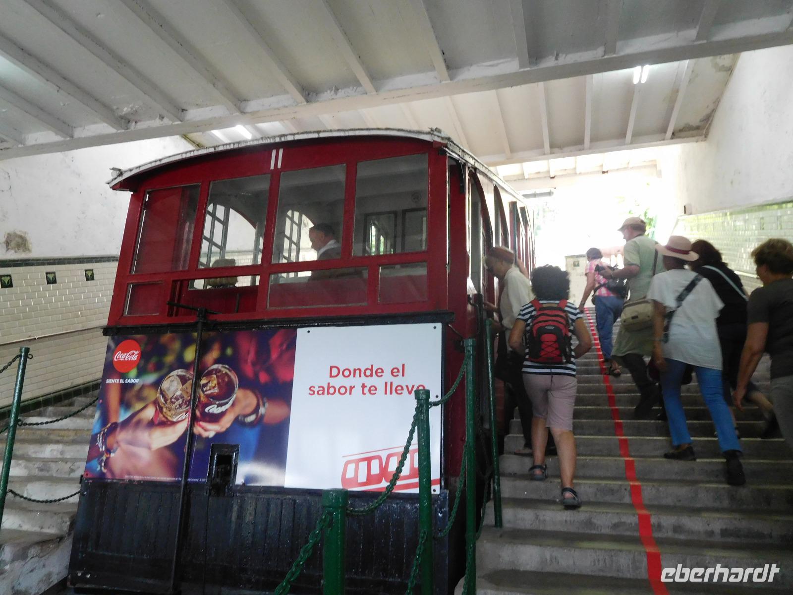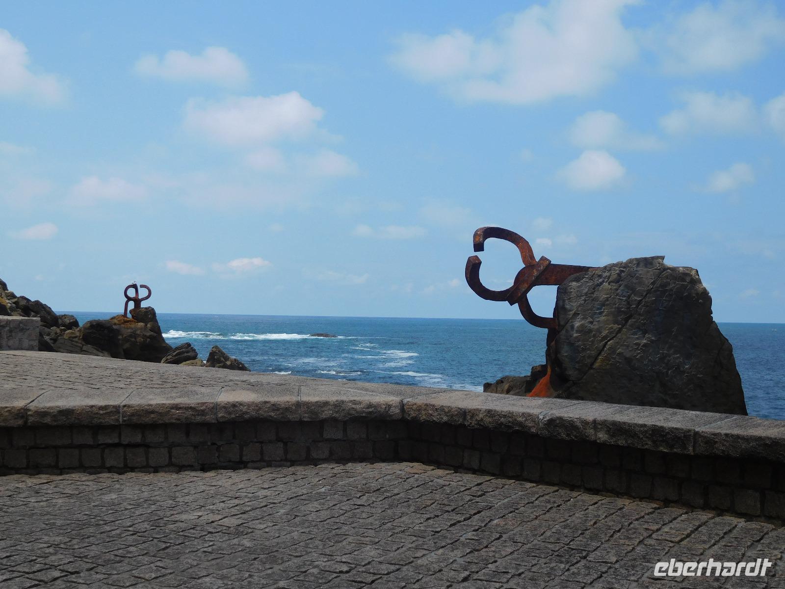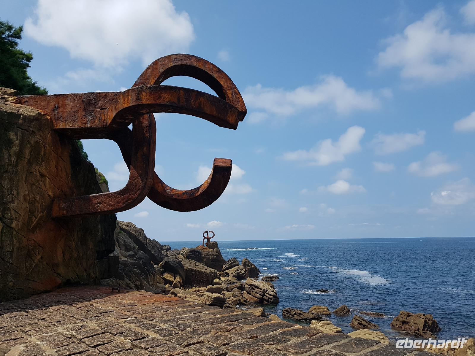 Danach hat Benjamin eine Überraschung aber vorher spazieren wir noch bis zur Kam des Windes, den wichtigsten 3 Skulturen aus Stahl von dem Künstler Eduardo Chillida. Jede wiegt 10 Tonnen und ist im Felsen verankert. Kunst am Meer. Die Überraschung kommt gleich..... wir fahren mit einer über 100 Jahre alten Zahnradbahn hoch auf den Monte Igeldo, von wo man die beste Aussicht auf San Sebastian hat. Wie eine Postkarte oder ein Bilderbuch. Unglaublich schön.