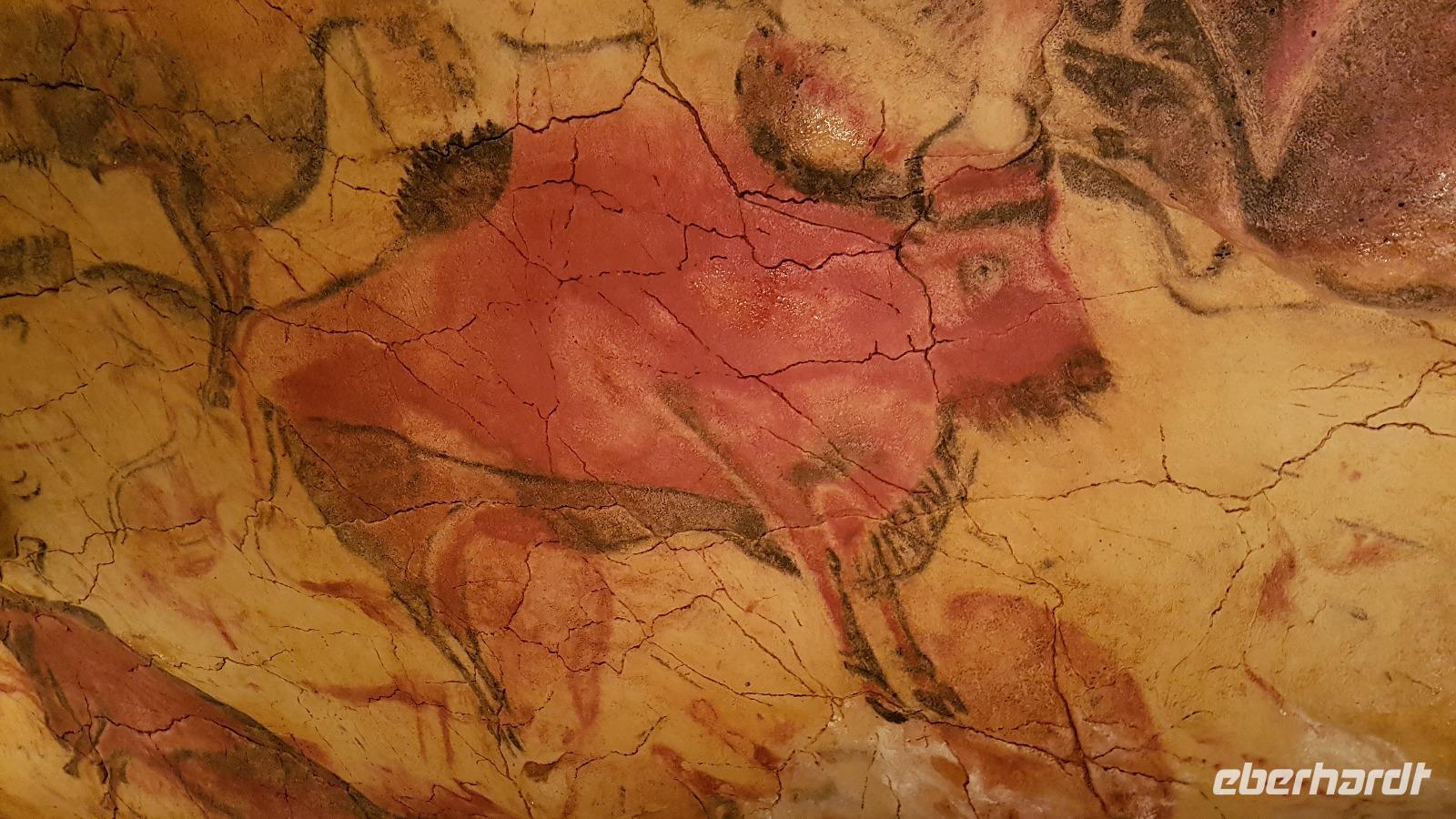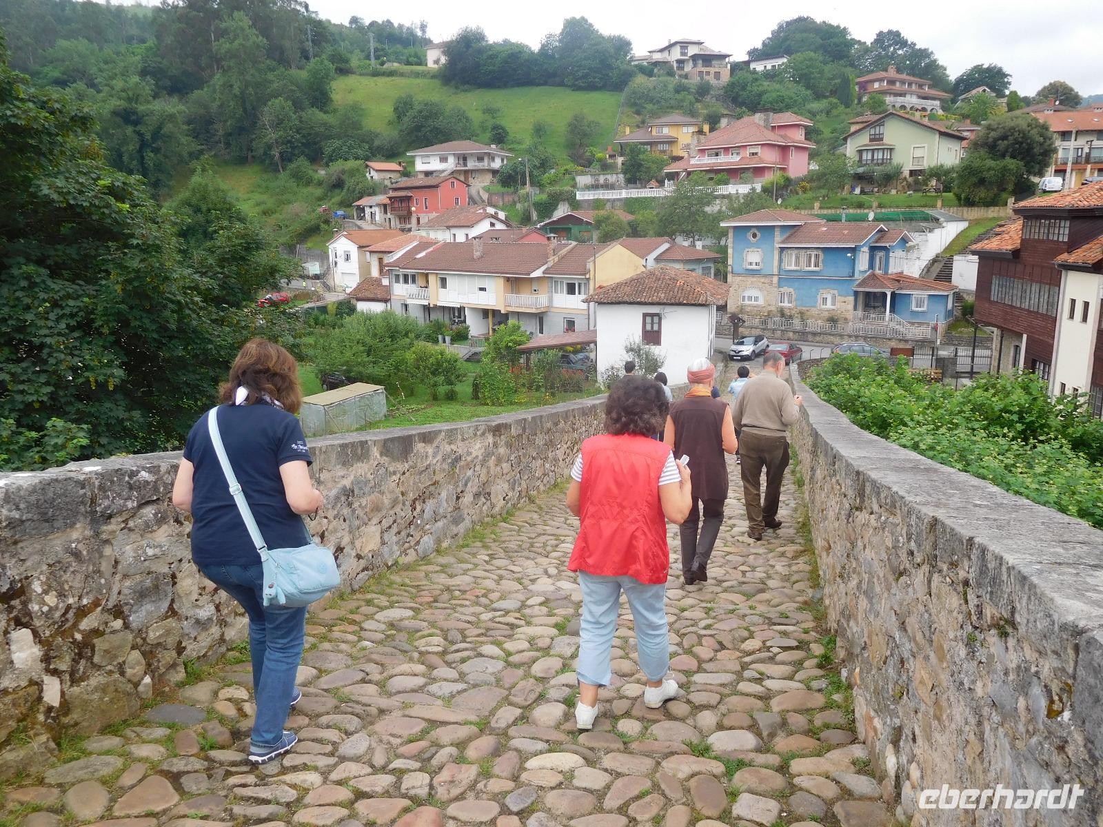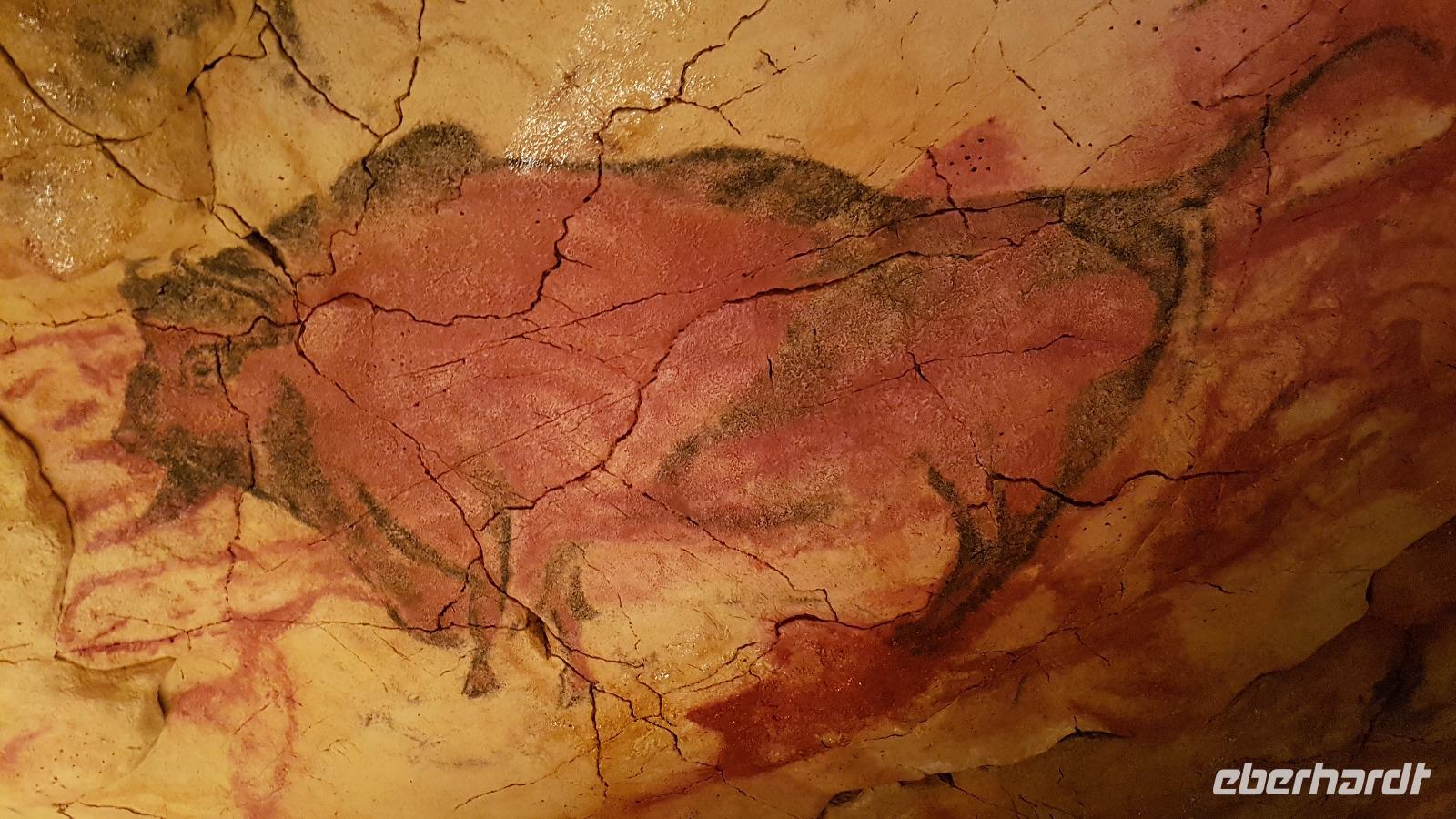 Das 4 Sterne Hotel Palacio del Mar in Santander hat uns sehr gefallen. Die Zimmer sind riesig groß. Nach dem Frühstück fahren wir nach Stadt Santillana del Mar, der Stadt mit den 3 Lügen: da Sie keine Heilige und nicht flach ist und nicht am Meer liegt. Aufgrund der wertvollen mittelalterlichen Konstruktionen dieses Kleinods stellte man im Jahre 1943 das gesamte Städtchen unter Denkmalschutz. Meistens ist es hier voll mit Touristen aber heute früh am Morgen sind wir fast allein außer ein paar Leuten, die nach Santiago pilgern. Herrlich hier zu spazieren. Viele von uns besichtigen das schöne alte romanische Kloster mit seinen wertvollen Säule und die Kirche der Heilige Juliana. Anschließend kommt ein Highlight der Reise mit dem Besuch der weltberühmten steinzeitlichen Höhlenmalereien von Altamira. Die richtige Höhle ist nur noch für Spezialisten zugänglich und gehört zum UNESCO-Weltkulturerbe. Für uns Besucher wurde eine sehr sehr gute exakte Kopie entworfen, welche wir in Ruhe besichtigen. Unglaublich, wie man das vor über zehntausend Jahren in die Decke der Felsen gemalt hat. Man nennt sie die Sixtinische Kapelle des Paläolithikums.