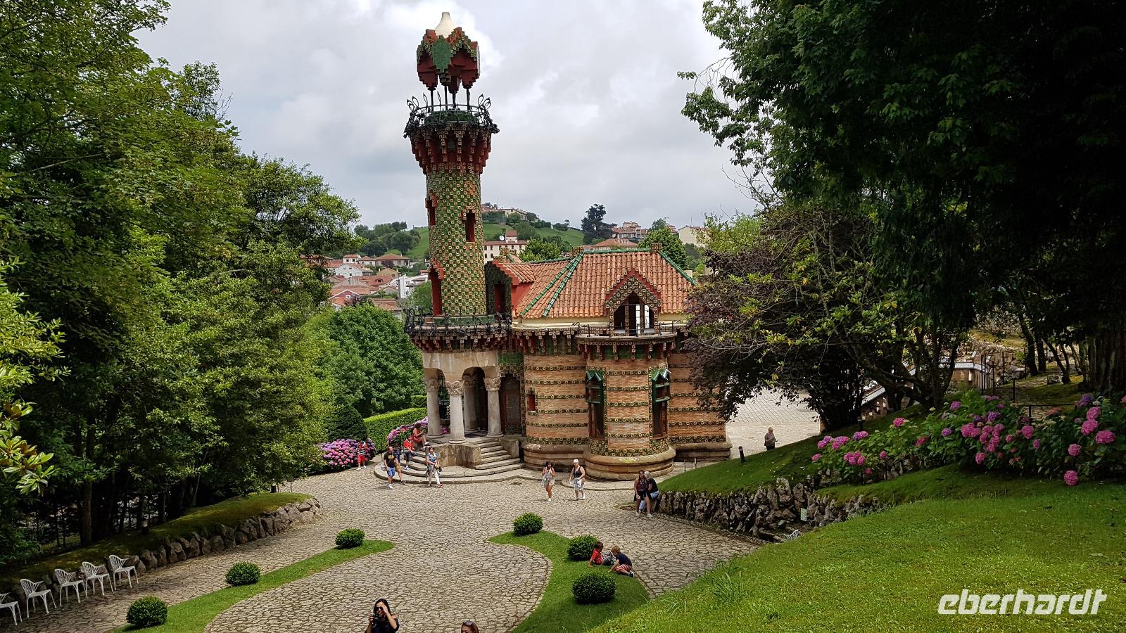 Anschließend fahren wir bis Comillas wo wir erstmal unser Mittagspausen einnehmen. Danach besuchen wir die Parkanlage von dem Schlösschen Sobrellano und um 14.15 Uhr werden wir schon erwartet um die Villa Quijano, auch unter Capricho de Gaudi (Die Laune) bekannt, zu besichtigen. Die örtliche Reiseleiterin Claudia erklärt uns sehr gut dieses bekannte Bauwerk, welches vom berühmten spanischen Architekten Antoni Gaudi entworfen wurde. Ein Haus voll Natur, Musik und Licht. Uns hat es sehr gut gefallen und viele von uns wussten nicht, dass dieses Haus das erste Bauwerk von Gaudi war. Danach fahren wir nach Arenas de Cabrales vor den Toren der National Park Picos de Europa, wo wir eine Käserei in einer Höhle besichtigen. Hier wird der berühmte Edelschimmelkäse Cabrales aus Asturien hergestellt. Wir genießen die Verkostung mit Sidra oder Apfel Wein dazu. Heute haben wir keine Termine mehr und fahren in unser 4 Sterne Grand Hotel Ribadesella von wo man ohne Wolken einen herrlicher Ausblick auf die Picos de Europa, die Gipfel Europas, hat. Einige von uns gehen noch vor dem Abendessen baden. Da hier der Fluss Ribadesella genau am Strand mündet, merkt man die untere Strömung des kalten Wassers aus dem Gebirge.