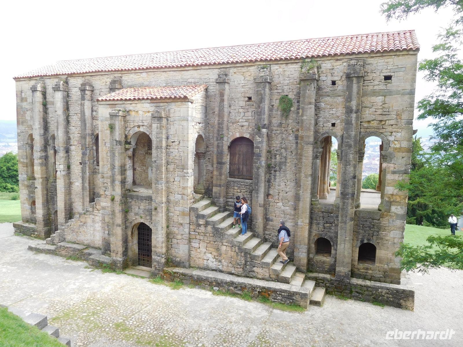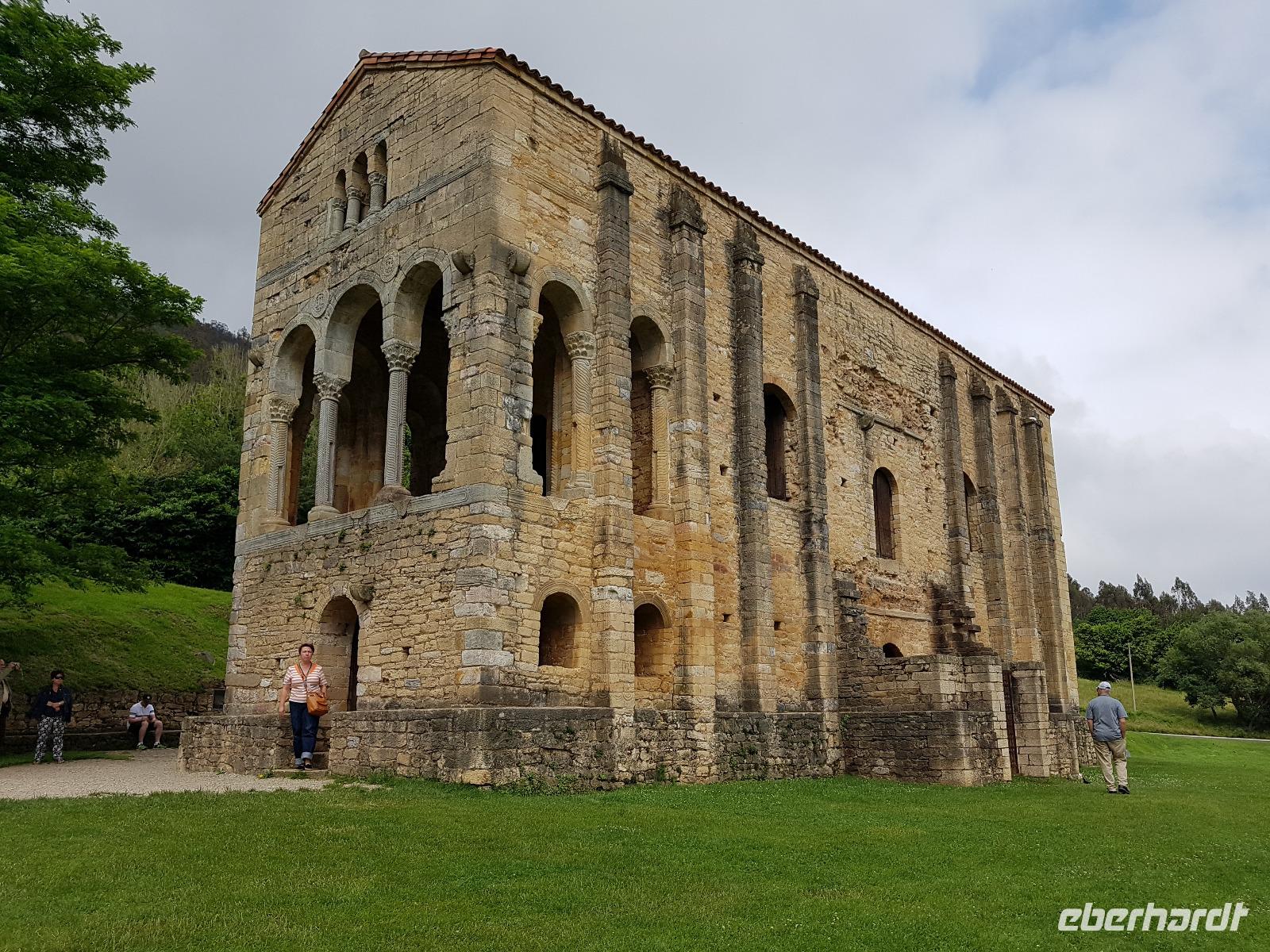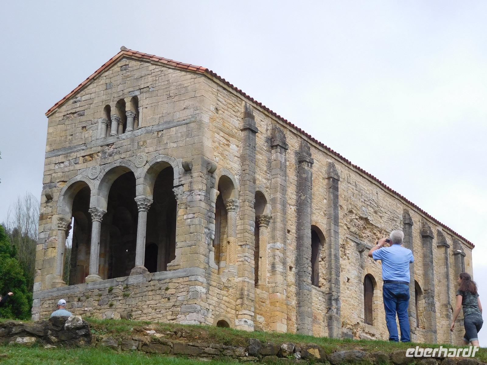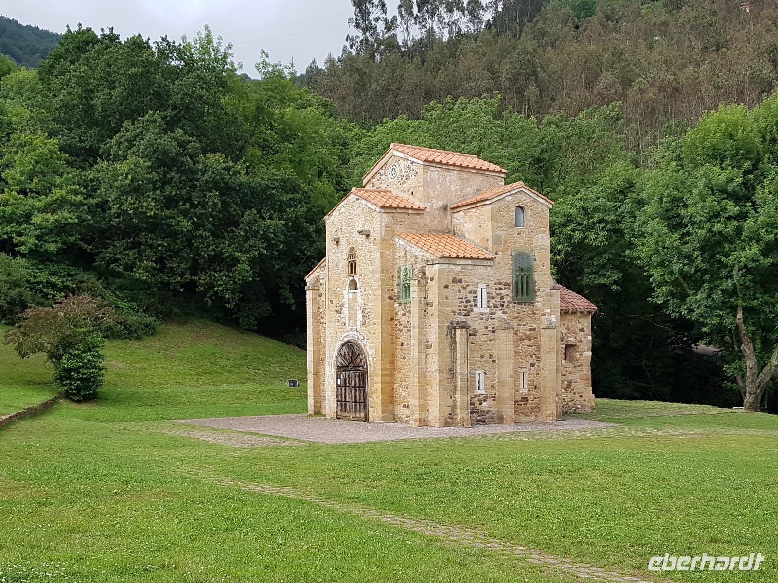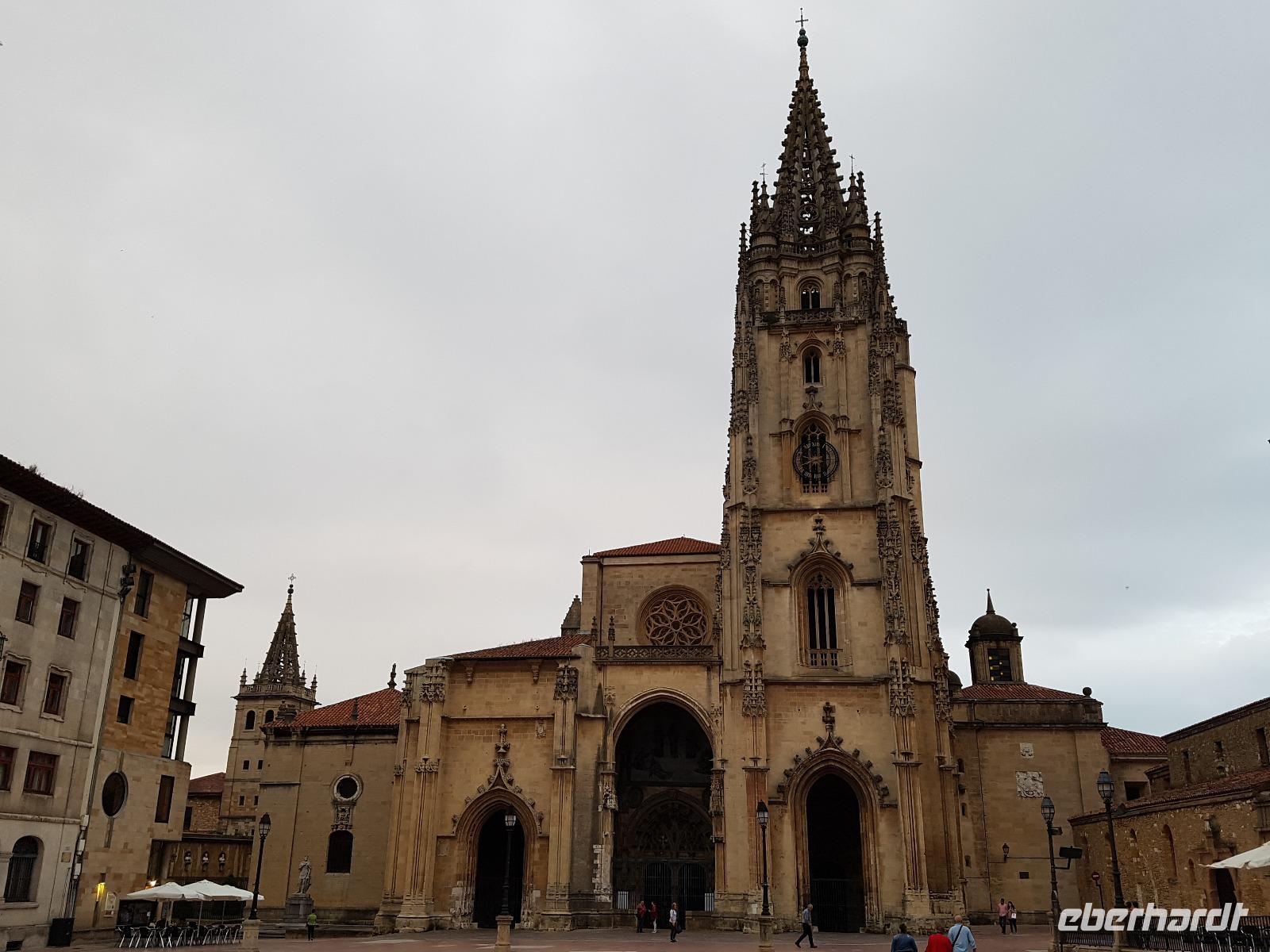 Wir haben in Ribadesella am Meer sehr gut geschlafen und freuen uns sehr heute auf die Spitzen Europas. Die Picos de Europa sind der höchste Gebirgszug der kantabrischen Kordilleren. Nach dem Frühstück fahren wir nach Covadonga vor den Toren der Picos de Europa, dem bedeutendsten Wallfahrtsort Asturiens. Hier in Covadonga bleiben 4 Gäste unten bei der Basilika und der heiligen Grotte. Der Rest nimmt den Bus um hoch zu den Covadonga-Seen zu fahren. Leider gibt es heute Nebel aber trotzdem ist es sehr schön hier oben über 1000 Metern. Wir besichtigen die Minen im Berg, aus welchem früher Magnesium gewonnen wurde. In der Hütte angekommen nehmen wir eine Suppe, welche uns sehr gut tat. Auf dem Rückweg fotografieren wir jede Menge Kühe, Schafe und Ziegen. Wieder unten angekommen besichtigen wir die Heilige Grotte mit der Madonna und dann die schöne neogotische Basilika. Gegen 14.15 Uhr fahren wir nach Oviedo wo unsere örtliche Reiseleiterin Marian schon auf uns wartet im Hotel. Wir beziehen die Zimmer im 4 Sterne Hotel Ciudad de Bilbao und fahren auf den Hügel Monte Naranco oberhalb der Stadt. Hier befinden sich zwei tolle vorromanische Kirchen und ein Palast, der Monumentos del Naranco. Es ist der älteste erhaltene Palast in ganz Europa. Wir haben schönes Wetter und damit einen herrlichen Blick über die asturische Hauptstadt. Gemeinsam mit Marian lernen wir diese malerische Altstadt bei einem Stadtrundgang kennen. In der Altstadt besichtigen wir das Kloster, in dem die Gründung von Oviedo stattfand und die Kathedrale von außen.