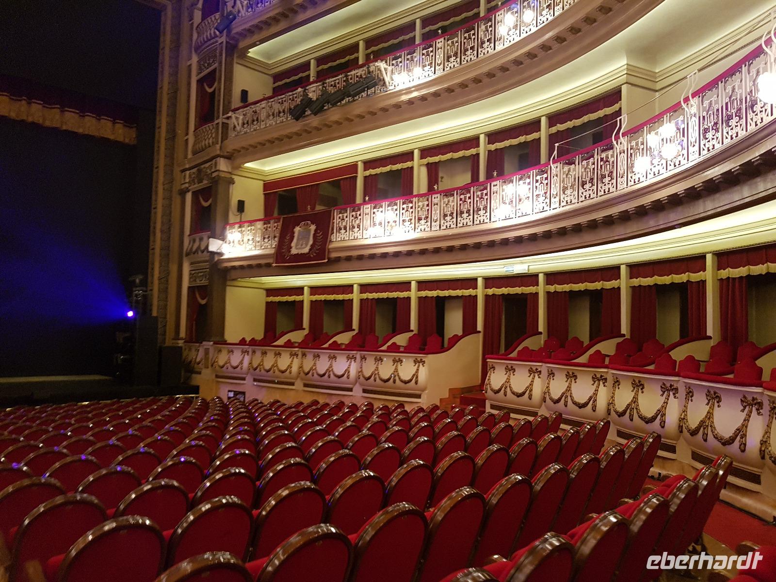Abendessen gibt es im Hotel mit einer leckeren Kürbiscreme und Hähnchen. Anschließend bietet Benjamin an, weiter die Altstadt zu besichtigen. Wir können sogar in das Teatro Campoamor hinein gehen, in welchem einmal pro Jahr mit den Königen von Spanien die Premios Principe de Asturias Preisverleihung stattfindet. Wir laufen durch die Gassen bis zum Rathaus und der alten Markthalle. Zum Abschluss besuchen wir eine Kneipe an der Straße, setzen uns auf die Terrasse, die voll mit Leute ist und trinken einen Sidra oder Apfelwein, dazu Wurst als Tapas. Herrlich. Uns hat Oviedo sehr gut gefallen, oder?