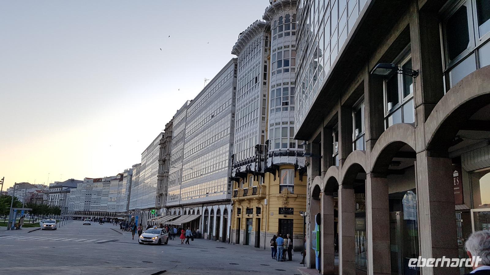 Anschließend fahren wir nach Lugo, einer Stadt, welche von der UNESCO zum Weltkulturerbe erklärt wurde mit einer beeindruckenden römischen Stadtmauer. Toll hier. Wir beginnen den Stadtrundgang am San Pedro-Tor und entdecken die ganze Altstadt. Auf der Plaza Mayor befindet sich das Denkmal des Gründers der Lucus-Augusti-Stadt. Die Kathedrale ist noch offen und wir können sie innen besichtigen. Am Campos Platz machen wir 40 Minuten Pause um etwas zu essen. Weiter laufen wir zum Santo Domingo Platz, bevor wir uns am Pedro Tor treffen. Am Schluss begeben wir uns nach A Coruña mit mehr als einer Stunde Fahrt. Wir beginnen unseren Rundgang direkt am Meer und besuchen den Herkulesturm, ebenfalls UNESCO-Weltkulturerbe. Neben dem alten herrlichen Leuchtturm besuchen wir auch die Menhires por la Paz, diese Findlinge erzählen die Geschichte der Kelten. Wir haben Kaiserwetter und wollen gemeinsam die Altstadt näher kennenlernen. Wir beschließen erstmal die Zimmer zu beziehen, Abendessen um 19.30 Uhr zu nehmen und danach gemeinsam die gläserne Stadt, den "Mutige Frau Maria Pita" Platz und die Altstadt zu erkunden. Es hat uns sehr sehr gut gefallen und einige von uns bleiben noch in den Gassen mit ihren Weinenkneipen um ein Glas Ribeiro- Wein zu verkosten und dabei zu sehen wie Kroatien Russland beim Elfmeterschießen aus der WM kickt. 23 Uhr zurück im Hotel freuen wir uns alle aufs Bett.