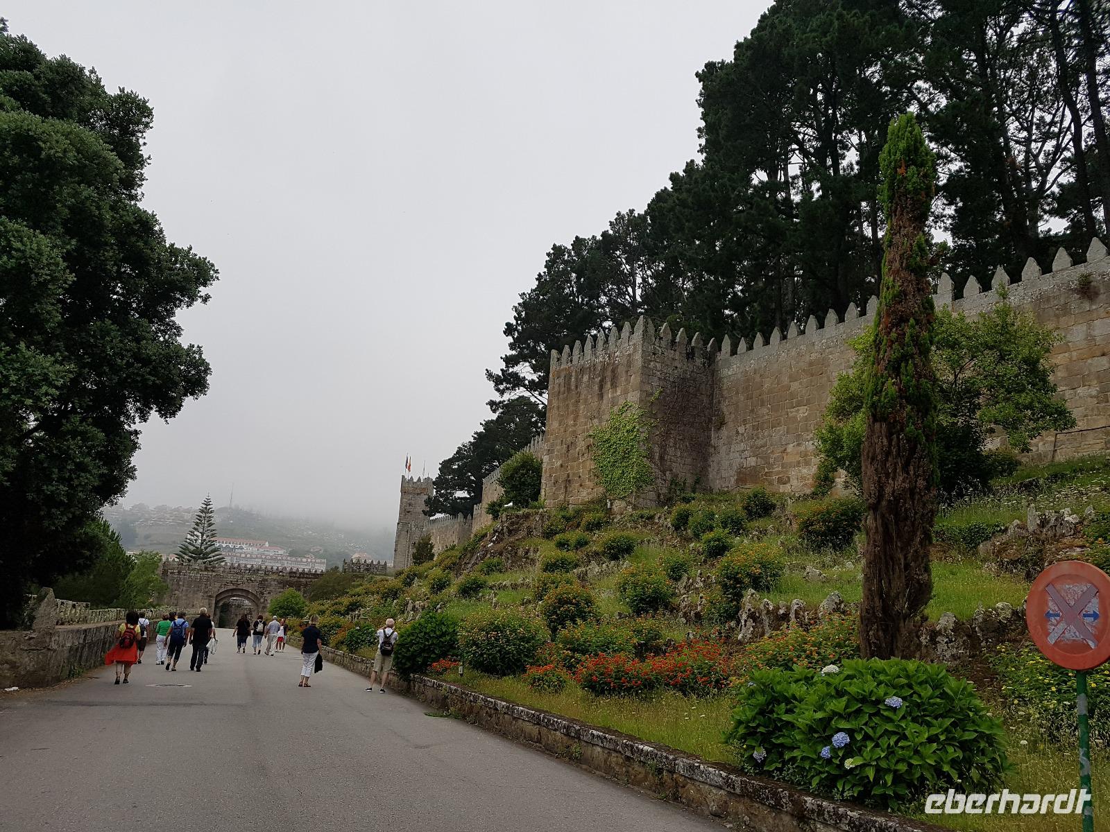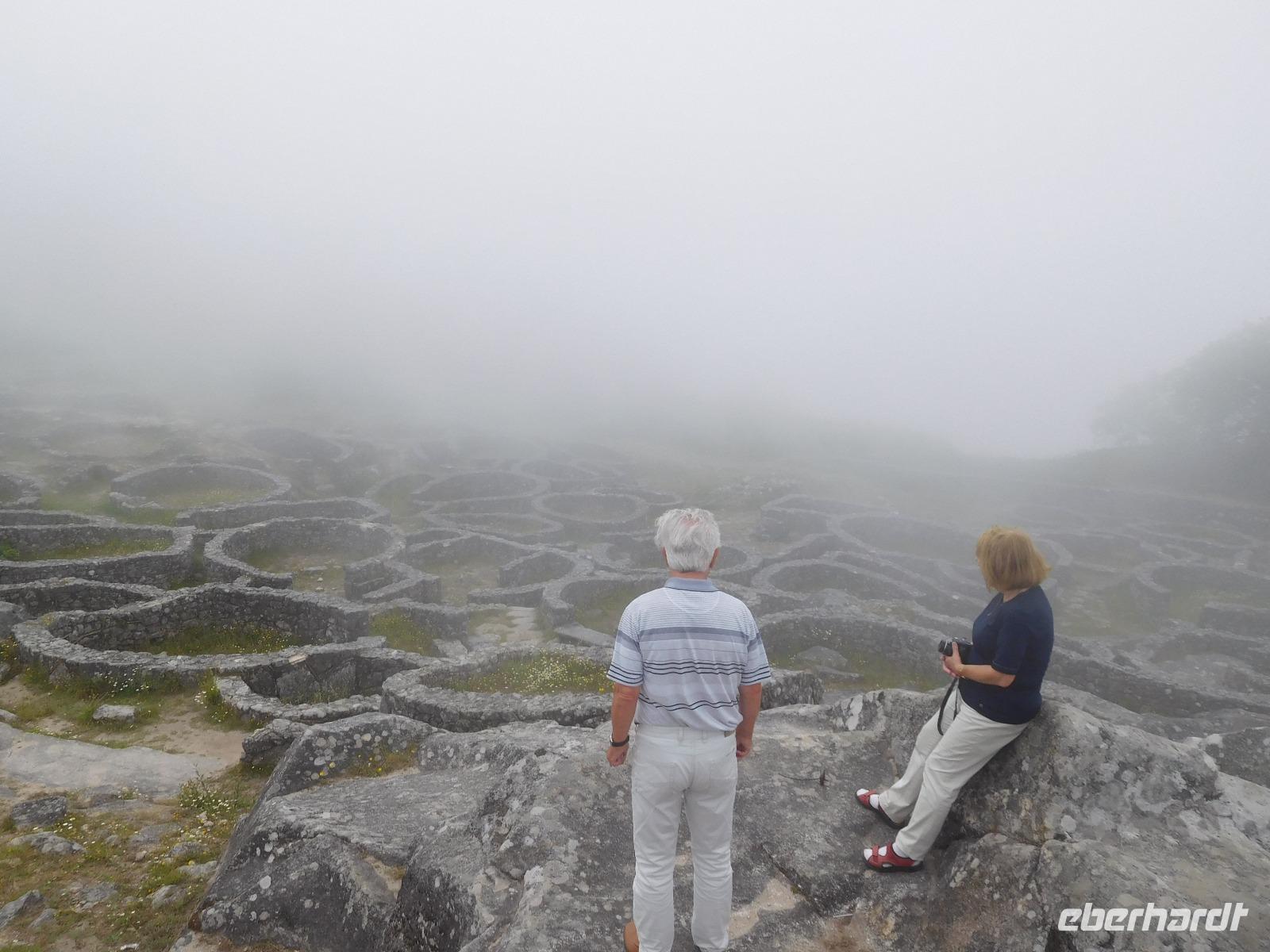 Eigentlich möchten wir Santiago nicht verlassen, aber die Reise geht weiter. Es warten wieder viele Highlights auf uns. 1 Stunde fahren wir entlang der Atlantikküste nach Baiona. Hier besuchen wir die Templerburg, die heute ein Parador Hotel ist und spazieren an der Mauer entlang. Eine tolle, grüne Anlage und tolle Sicht über die Bucht von Baiona. Von hier aus wurde zum ersten Mal das Pinta Schiff gesehen als es aus Amerika mit der Nachricht zurückkam, dass Christoph Kolumbus einen neuen Kontinent entdeckt hat. Uns beeindruckt auch unten am Hafen die Replik der Pinta, eines der ersten Schiffe, welches von der Expedition zurückkehrte. Von Baiona reisen wir weiter nach A Guarda wo wir am Hafen bis 14 Uhr Mittagspause machen. Hier kann man sehr gut Fisch essen: Oktopus, Muscheln, Fischsuppe, Garnelen..... alles einfach Spitze und gute Preise. Glücklich fahren wir weiter zum Keltendorf Castro de Santa Tecla. Wir machen uns wenig Hoffnung vom Aussichtpunkt auf dem Tecla-Berg etwas zu sehen, da der Nebel so dick war. Der Mann am Eingang sagte uns auch, dass wir hochfahren können, aber sicher nicht viel sehen werden aus diesem Grunf. Als wir oben parken, öffnet sich der Himmel...... Spektakulär, was wir vor unseren Augen haben.... Wir befinden uns über den Wolken, und vor unseren Füßen der Mino Fluß, welcher die Grenze zwischen Portugal und Spanien ist. Wie eine lebendige Postkarte. Oder ein Traum. Ein Wolkenmeer hinter uns und vorne der Fluss und die grünen Berge zwischen diesen 2 schönen Ländern. Mann, geht es uns gut! Wir sind überglücklich und besichtigen auch das archäologische Museum Santa Tegra um zu sehen wie die Kelten hier lebten. Wieder unten sehen wir das alte Keltendorf Castro mit seinen Steinhäusern und Gassen, wie ein Labyrinth. Danach fahren nach Porto wo wir die 2 nächsten Nächte verbringen. Abendessen ist heute um 19.30 Uhr portugiesische Zeit. Ja, wir müssen die Uhr eine Stunde zurückstellen wie in England. Heute verabschieden wir uns von dem Busfahrer Pedro, der uns immer heil und gut gefahren hat. Gracias Pedro. Es war eine Ehre mit Dir zusammen zu arbeiten.