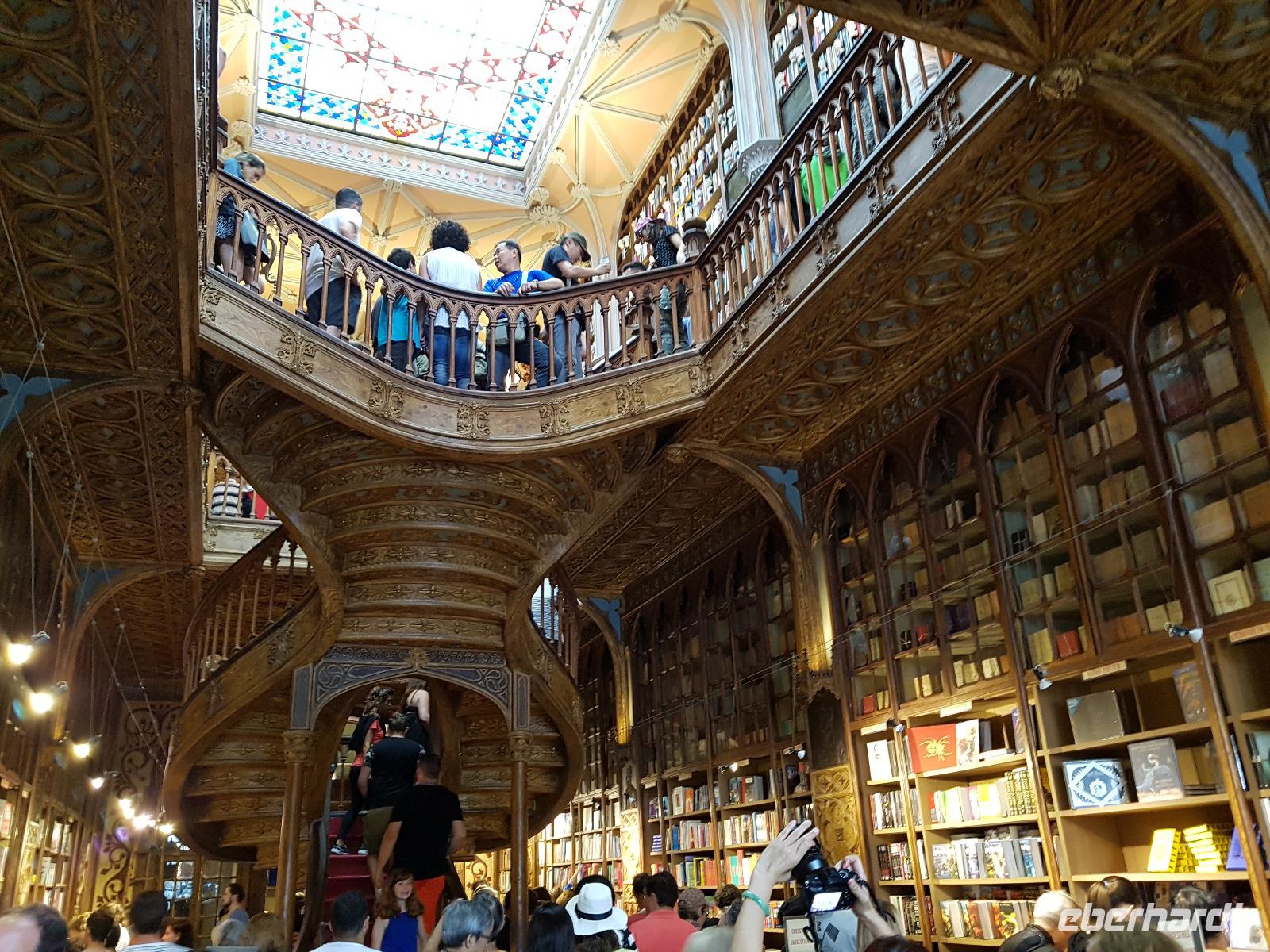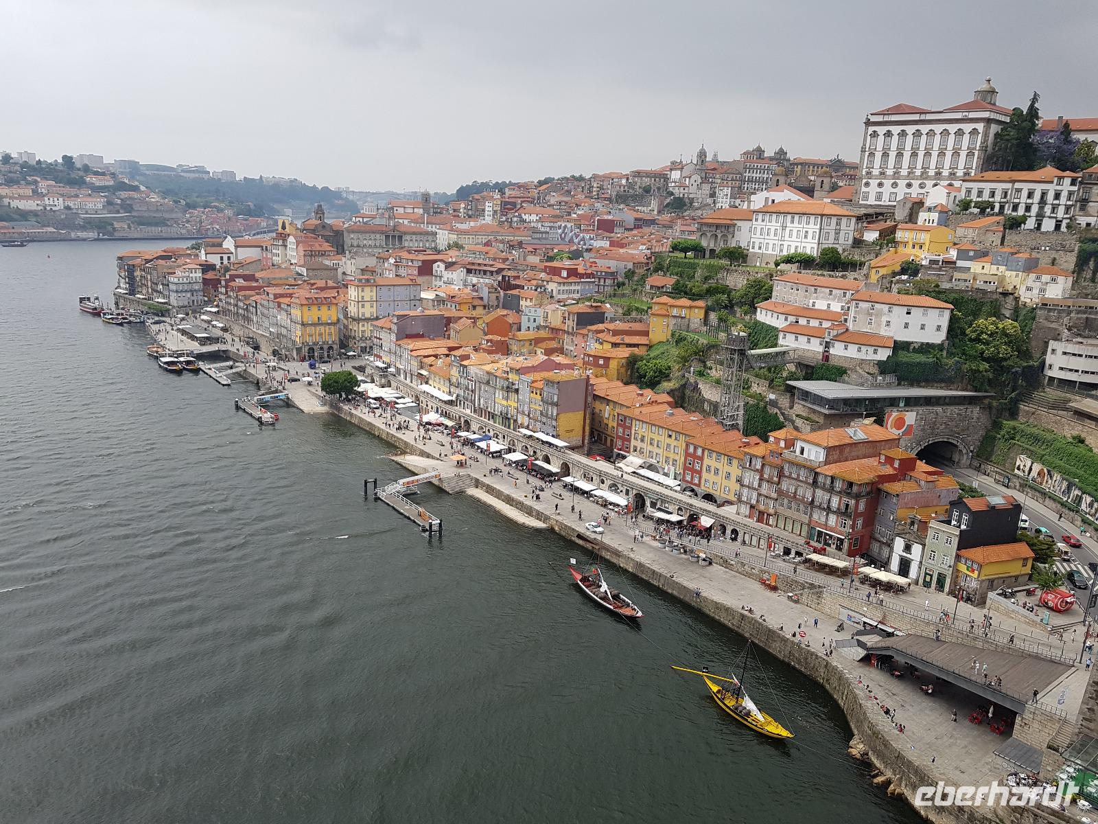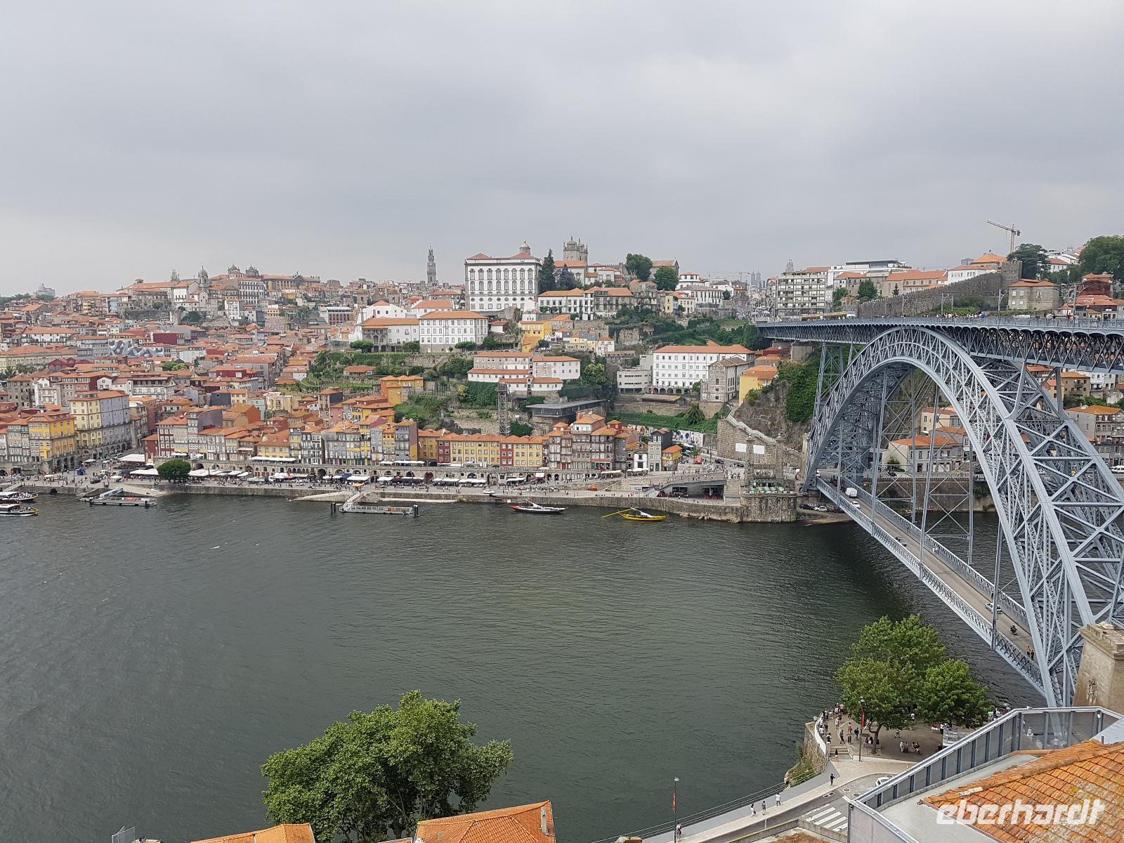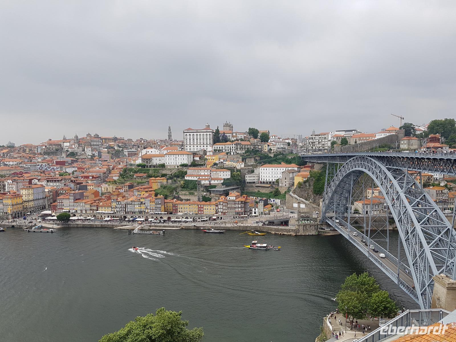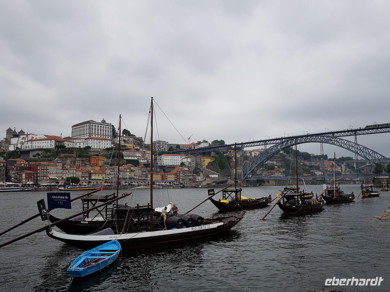 Früh am morgen begrüßt uns die Stadt Porto mit Wolken und ein klein wenig Regen bis 10 Uhr, aber besser so, als mit 30 Grad die Altstadt besichtigen, oder? Um 9 Uhr kommt die örtliche Reiseleiterin Luisa Cunha zum Hotel um gemeinsam mit uns diese tolle Stadt näher kennenzulernen. Luisa erklärt uns im Bus, dass auch Porto von der UNESCO zum Weltkulturerbe erklärt wurde. Zu Fuß entdecken wir verschiedene bekannte Gebäude bei einem Stadtrundgang, wie zum Beispiel den Bahnhof Sao Bento oder den emblematisch portugiesischen Turm Clerigos (von außen). Später besuchen wir die schönste Buchhandlung Portos , die Livraria Lello e Irmao. Hier wurde auch ein Teil von den Harry-Potter-Filmen gedreht. Danach fahren wir zur Real Companhia Vehla, einer typischen Weinkellerei. Wir erfahren alles über den originalen Portwein und selbstverständlich probieren wir diesen auch. Hier wurde auch mal gesungen. Der Nachmittag steht eigentlich zur freien Verfügung, doch Benjamin bietet an, gemeinsam mit den Gästen Porto weiter zu erkunden. Mittagspause gibt es unten am Hafen. Von da spazieren wir entlang des Duoro Flusses. Danach fahren wir hoch und sehen die tolle Eisenbrücke von oben, sie ist das Wahrzeichen von Porto. Wir besichtigen die tolle Kathedrale und das Kloster, laufen die unendlich lange Treppe wieder nach unten und wieder hinauf in die Stadt bis zur Haltestelle Carmo, wo viele von uns mit der Straßenbahn bis zum Hotel fahren wollen. Es war sehr lustig und wie in alten Zeiten.