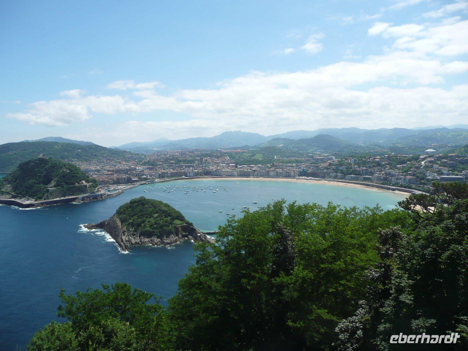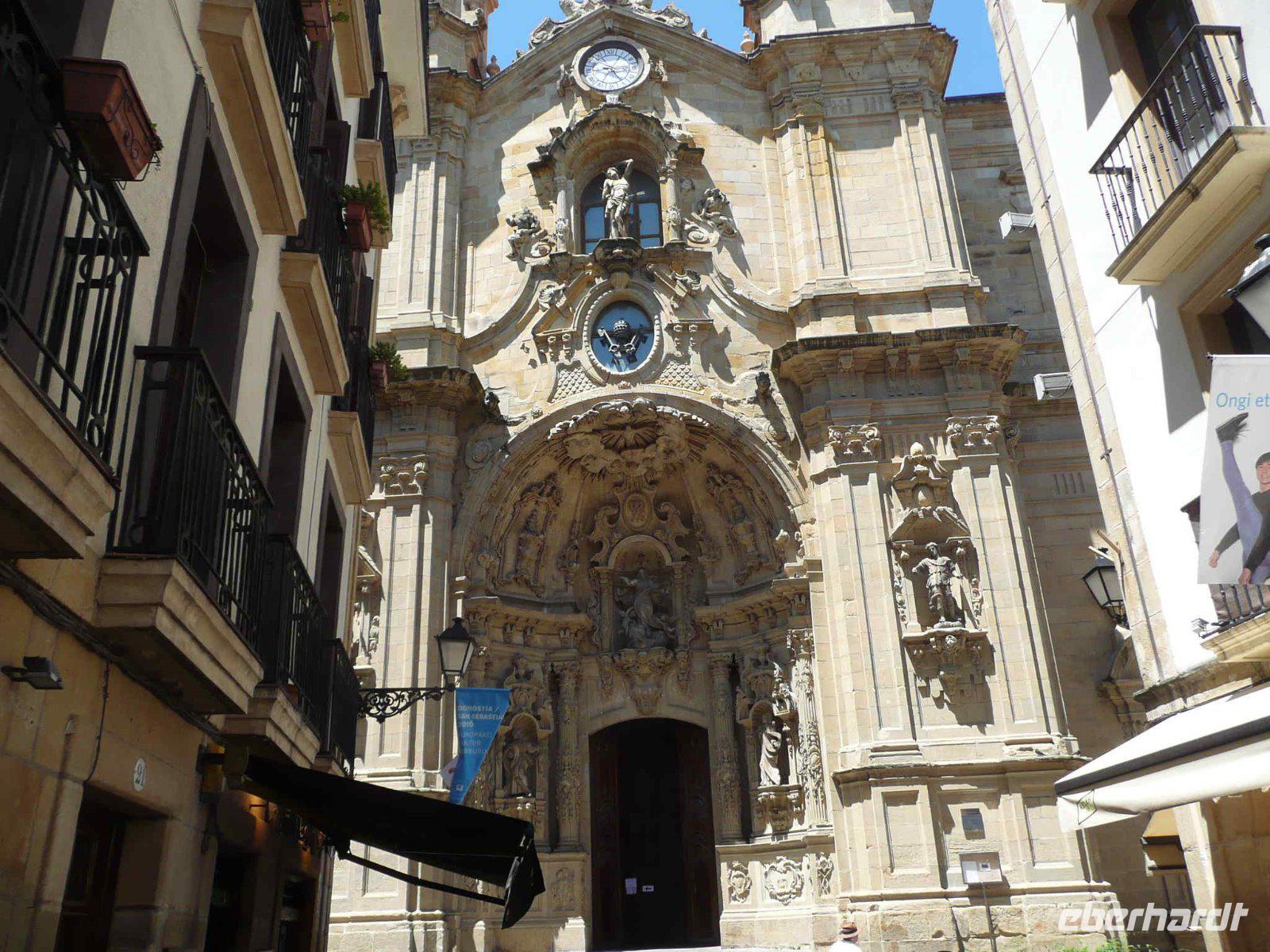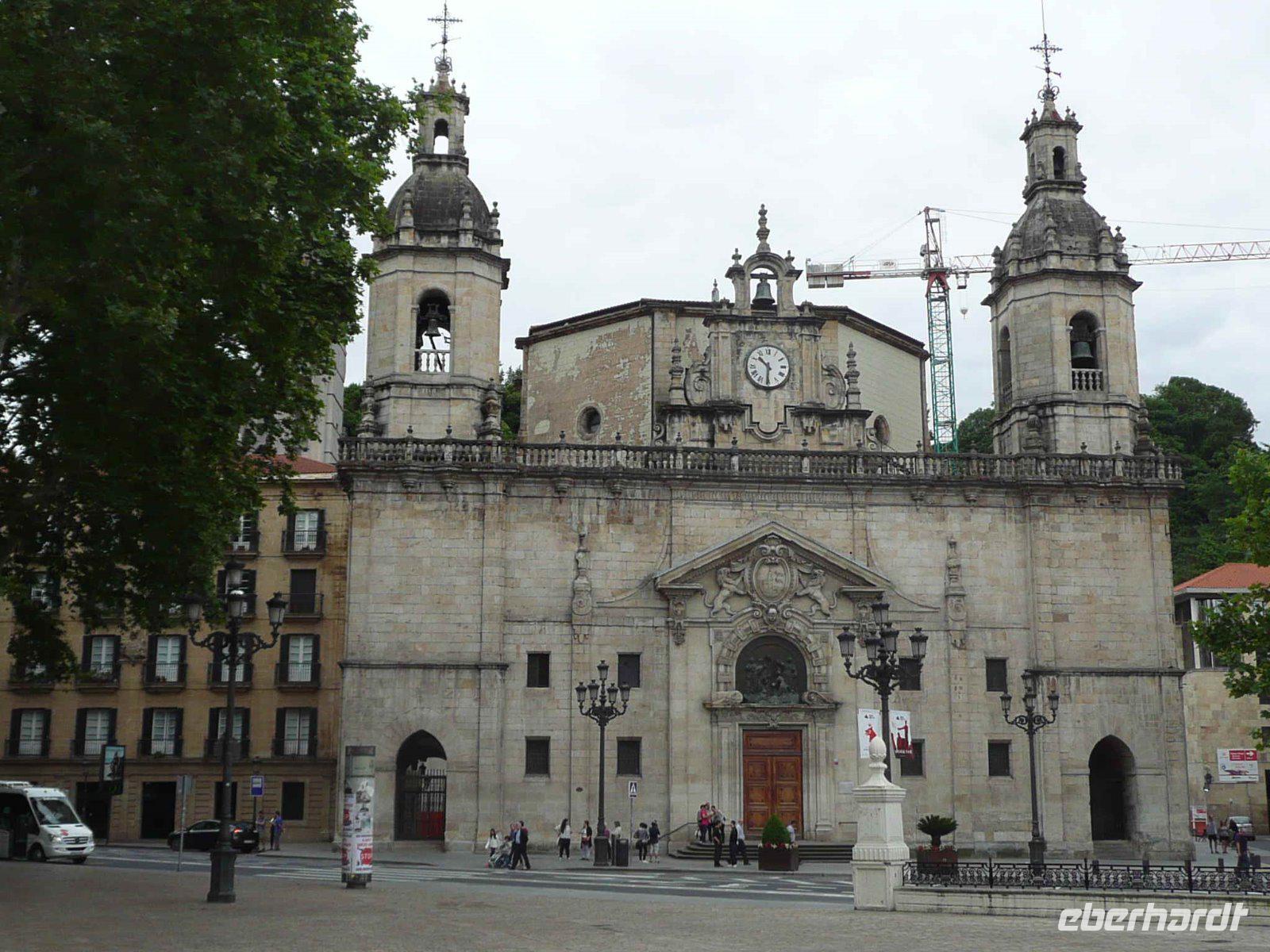 Von Bilbao aus unternahmen wir eine Fahrt nach San Sebastián, der Sommerhauptstadt Nordspaniens. Vom Monte Igueldo aus besahen wir das schöne Panorama der Stadt und des muschelförmigen Strandes La Concha. Danach unternahmen wir einen Rundgang durch die Stadt, beginnend mit der Brücke Maria Christina am Fluss Urumea entlang bis in die Altstadt. Hier besuchen wir die älteste Kirche der Stadt, die Iglesia San Vicente. Sie stammt aus dem 16. Jahrhundert und besitzt einen schönen geschnitzten Altar. Auf Grund verschiedener Stadtbrände und Zerstörungen hat San Sebastián nicht sehr viel alte Bausubstanz, besticht aber durch malerische Gassen und zahlreiche Pintxo-Bars. Unser Bummel führt uns noch vorbei am ehemaligen Dominikanerkloster San Telmo, jetzt ein Museum für baskische Kultur, bis zur Kirche Santa Maria del Coro. Sie steht in einer Sichtachse zur neogotischen Kathedrale zum Guten Hirten und hat ein auffallendes Barockportal. Nun wird es Zeit für eine Mittagspause. Sie wird entweder für einen Strandbummel genutzt oder für eine Probe der leckeren Pintxos, die im Süden Spaniens Tapas heißen. Eine Gruppe lässt sich in einem Café auf dem Platz der Verfassung nieder. Hier kann man an den Balkonen noch die Zahlen erkennen, welche die Logenplätze der einstigen Stierkampfarena bezeichneten.
