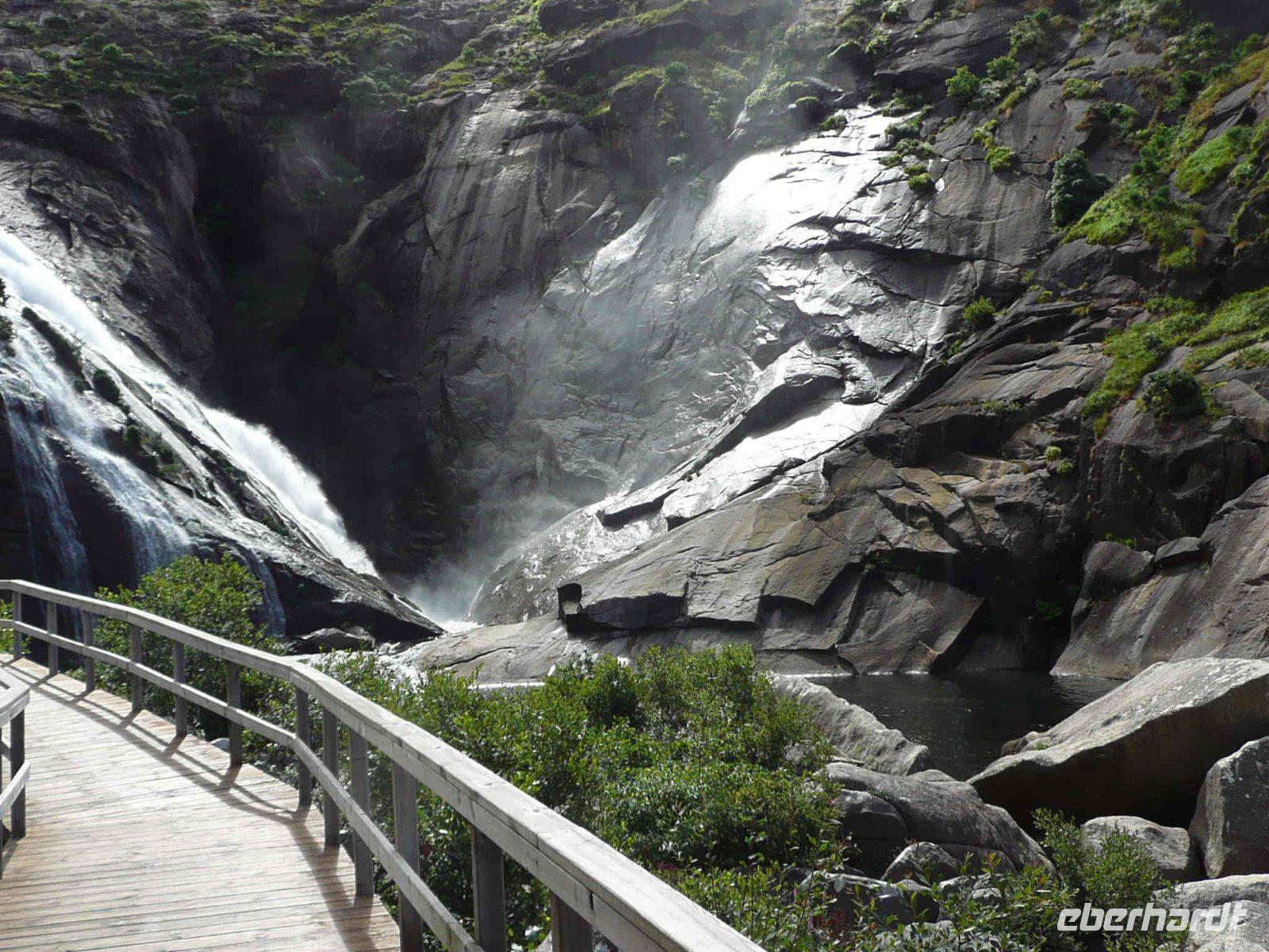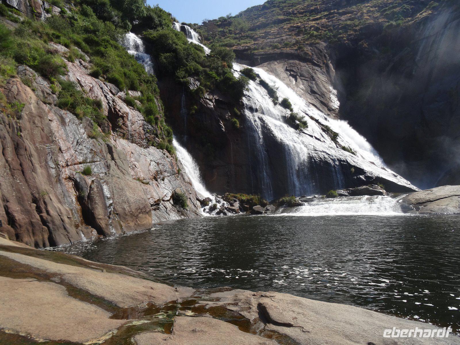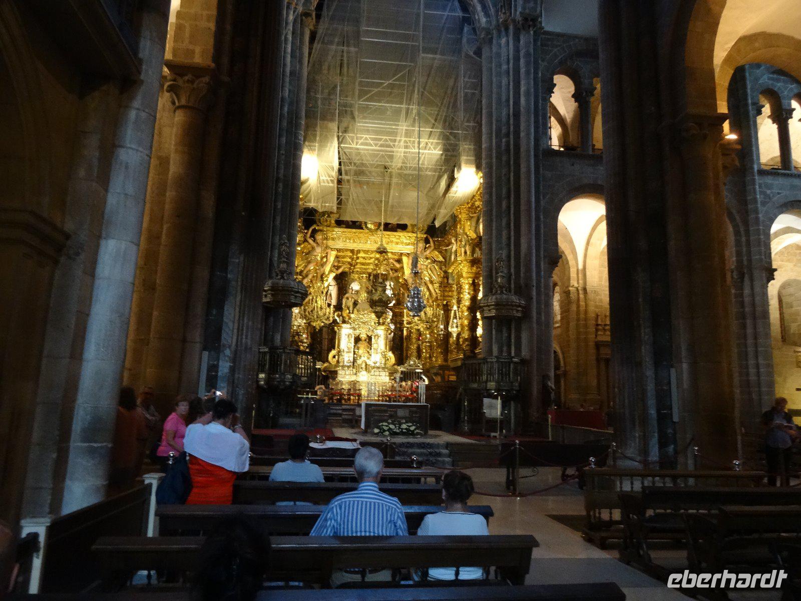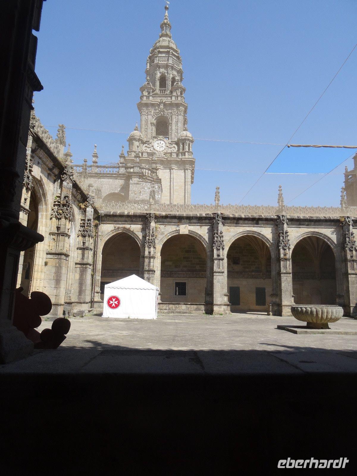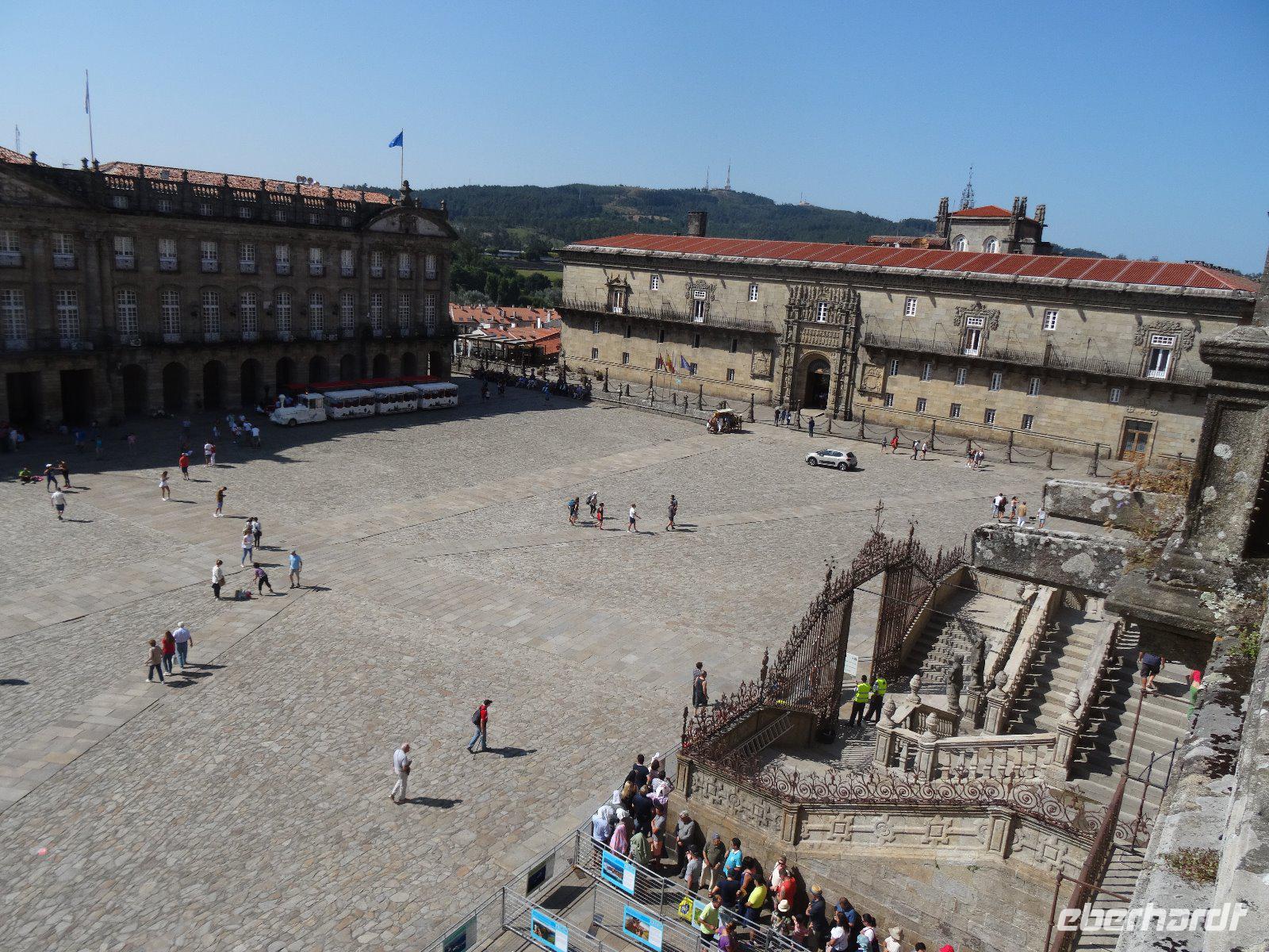 Heute heißt unser Ziel Santiago de Compostela, alle sind gespannt auf die Pilgerstadt. Aber vorher geht es noch ans Ende der Welt. Kap Finisterra ist zwar nicht der westlichste Punkt Spaniens, aber einer der schönsten. 300 m hoch ragen die Felsklippen auf und man schaut von hier in die Weite des Ozeans, so dass man sich leicht vorstellen kann, dass die Römer glaubten, die Sonne versinke hier im Meer. Viele Jakobspilger kommen hierher an das Kreuz und hinterlassen kleine Andenken an ihre Pilgerfahrt. Wir setzen den Weg fort und machen eine Mittagsrast am Ezaro-Wasserfall. Er dient der Stromgewinnung und ist Bestandteil eines ganzen Systems von Staustufen. Über wilde Felsen stürzt der Fluss ins Tal und mündet an einem kleinen Hafen ins Meer. Nun lockt aber Santiago de Compostela und wir überqueren den Hügelrücken des Monte Pindo und gelangen am frühen Nachmittag ans Ziel. Nach dem Einchecken im Hotel unternehmen wir einen Stadtrundgang mit dem Stadtführer Bartug. Er berichtet uns von der Entstehung der Jakobslegende und dem Beginn des Pilgerns. Die Sehenswürdigkeiten der Altstadt liegen eng beieinander und so können wir sie zu Fuß erkunden. Unser Weg führt durch die engen Straßen am Pferdebrunnen vorbei zur Kathedrale. Sie beherrscht den schönen Praza de Obradoiro zusammen mit dem Rathaus, dem romanischen Bischofspalast und dem Rektorat der Universität und einem Parador. Der Innenraum der Kathedrale ist überwiegend romanisch, die Außenfassade weist viele Veränderungen auf und zeigt Elemente der Romanik, Gotik, Renaissance und des Barock. Im Inneren interessieren sich die Pilger natürlich vor allem für das Grab des Jakobus. Über dem Grab befindet sich die Statue des Heiligen. Die Pilger umfassen und küssen sie und äußern sicher auch einen Wunsch am Ende ihrer Pilgerfahrt. Wir hingegen sehen noch das Museum der Kathedrale zu ihrer Baugeschichte, durchschreiten den wunderschönen Kreuzgang und bestaunen in der Bibliothek das riesige Weihrauchfass, welches an den Feiertagen in der Kathedrale geschwenkt wird. Nach dem Stadtrundgang kann man sich auf eigene Faust der Atmosphäre der Stadt hingeben, den Musikanten lauschen, etwas trinken oder auch ein Souvenir erstehen.