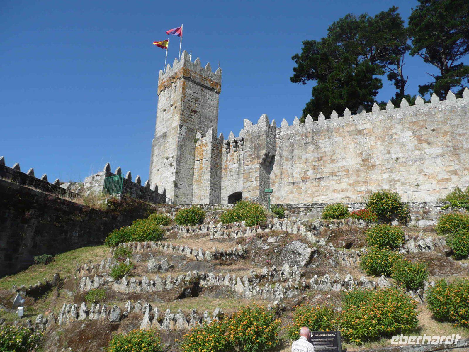 Hoch über der Stadt erhebt sich auf der Halbinsel Monterreal das Herrenhaus des Conde von Gondomar. Er ließ es im 16. Jahrhundert auf den Überresten einer alten Burg errichten. Heute ist es ein Parador und wir genießen die schöne Aussicht von der Terrasse bei einem guten Kaffee.