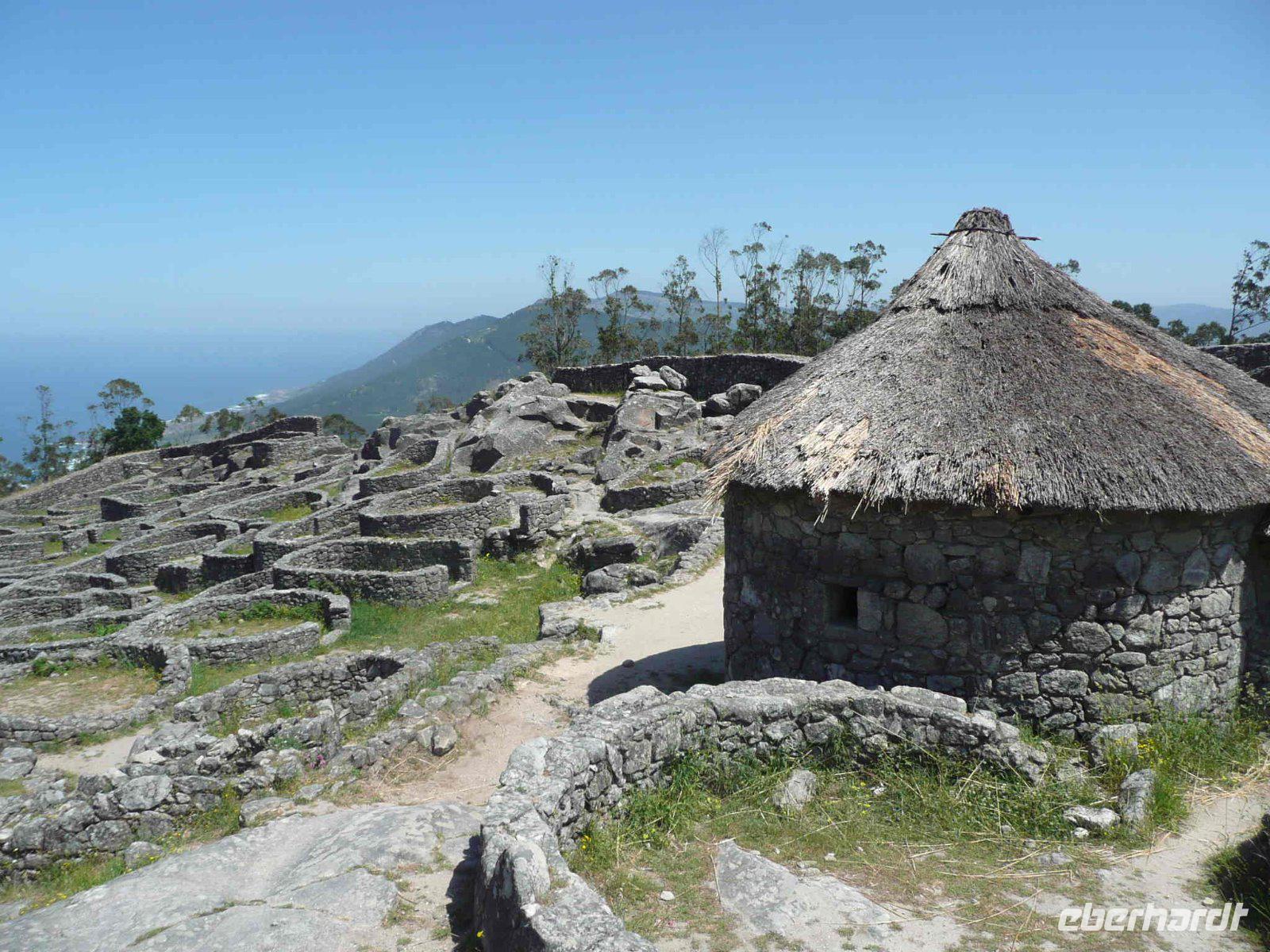 Bei Straßenbauarbeiten auf dem nahegelegenen Santa Tecla-Berg fand man im Jahre 1913 steinerne Überreste einer keltischen Siedlung aus dem 1. Jahrhundert v. Chr. Die runden Hütten standen dicht gedrängt und die Archäologen glauben, dass hier bis zu 3.000 Menschen gelebt haben. Wir laufen durch das Dorf und stellen uns vor, wie die Menschen hier oben wohl gelebt haben mögen.