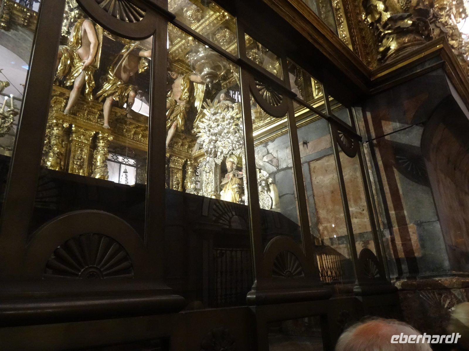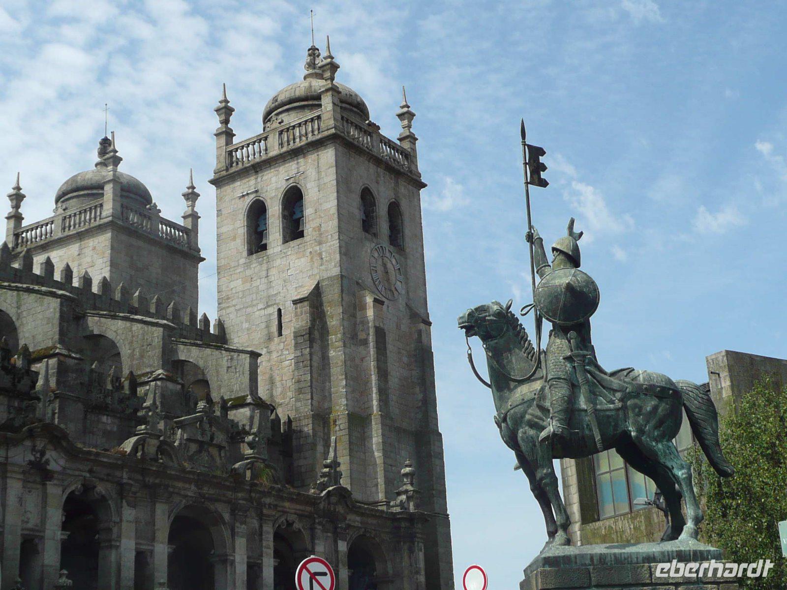 Natürlich besuchen wir bei unserem Rundgang die Kathedrale Sé auf ihrem Granithügel. Die Fassade wirkt wehrhaft und zeigt noch romanische Elemente. Vor der Kathedrale steht ein Schandpfahl aus dem Spätbarock, aber es wurde wohl nie jemand daran festgebunden.