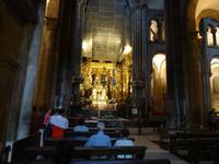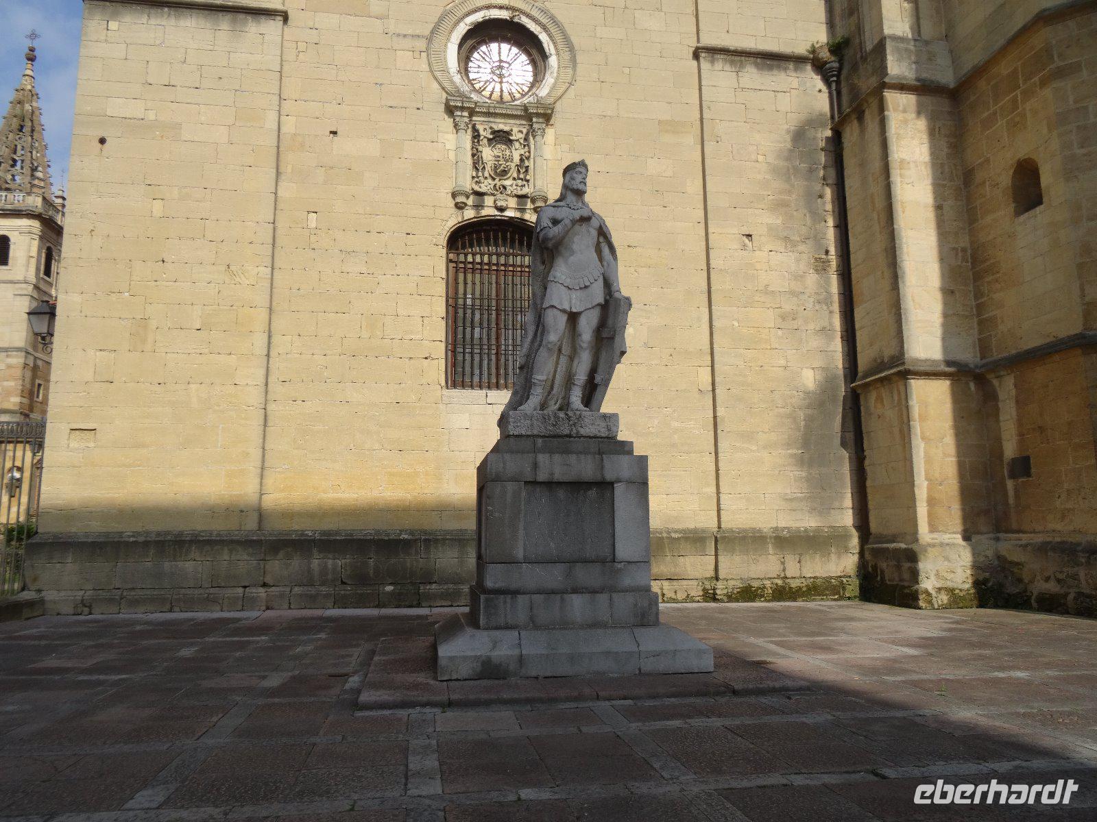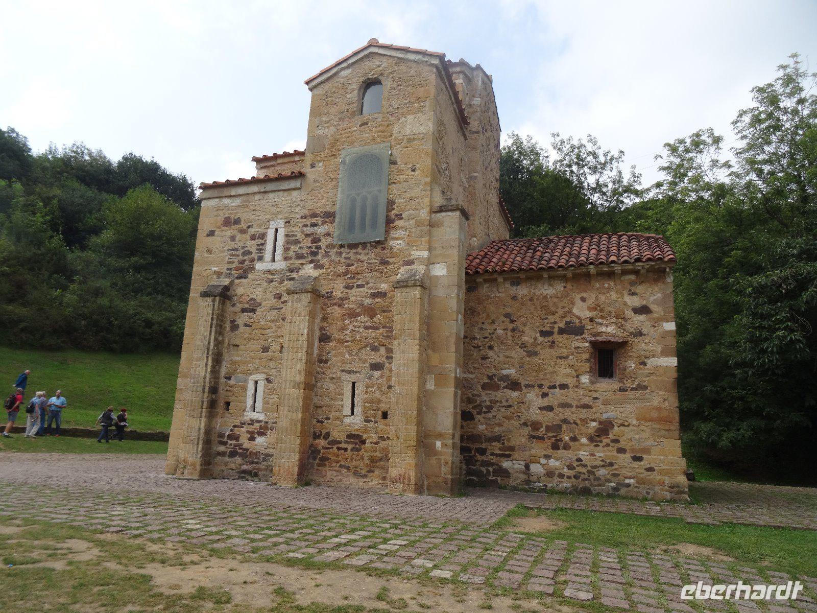 Da der Nebel weiterhin anhält, wird es nichts mit der Fahrt zu den Gletscherseen und so gönnen wir uns eine ausgiebige Mittagspause und setzen dann den Weg fort in Richtung Oviedo. Die Stadt ist das politische Zentrum der Region Asturien und unsere Stadtführerin Andrea beginnt mit den ältesten Zeugnissen der Besiedlung, den Kirchen Santa Maria del Naranco und San Miguel de Lillo aus dem 9. Jahrhundert. Beide Gebäude sind UNESCO Weltkulturerbe seit 1985. Danach geht es in die Altstadt zur Kathedrale San Salvador und vorbei an der Universität über kleine Marktplätze durch verwinkelte Gassen. Skulpturen schmücken die Plätze, es gibt eine Fischverkäuferin, die Milchhändlerin und auch Woody Allen. In der Schatzkammer der Kirche befindet sich das Engelskreuz, welches Alfons II. der Kirche stiftete, sie besitzt auch das Siegeskreuz, welches Alfons III. der Kirche schenkte. Unser Hotel liegt in der Straße der Sidrerias und so gehen wir nach dem Abendessen zum Probieren in eine nahegelegene Apfelweinschenke um das Nationalgetränk zu kosten. Schon das Einschenken ist eine interessante Zeremonie und verlangt das ganze Geschick des Kellners.