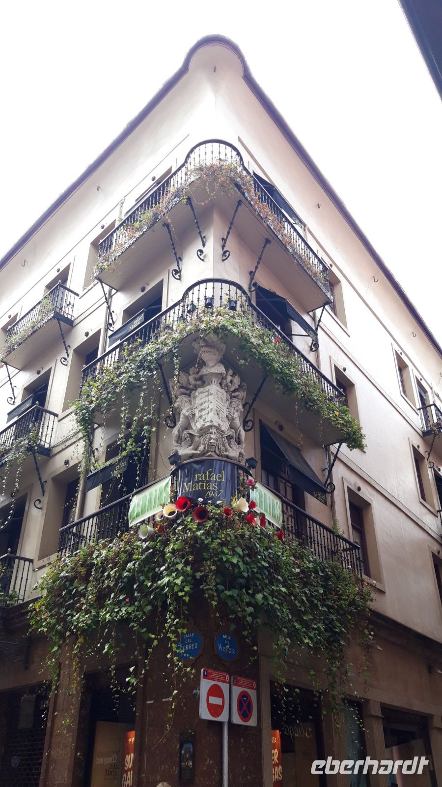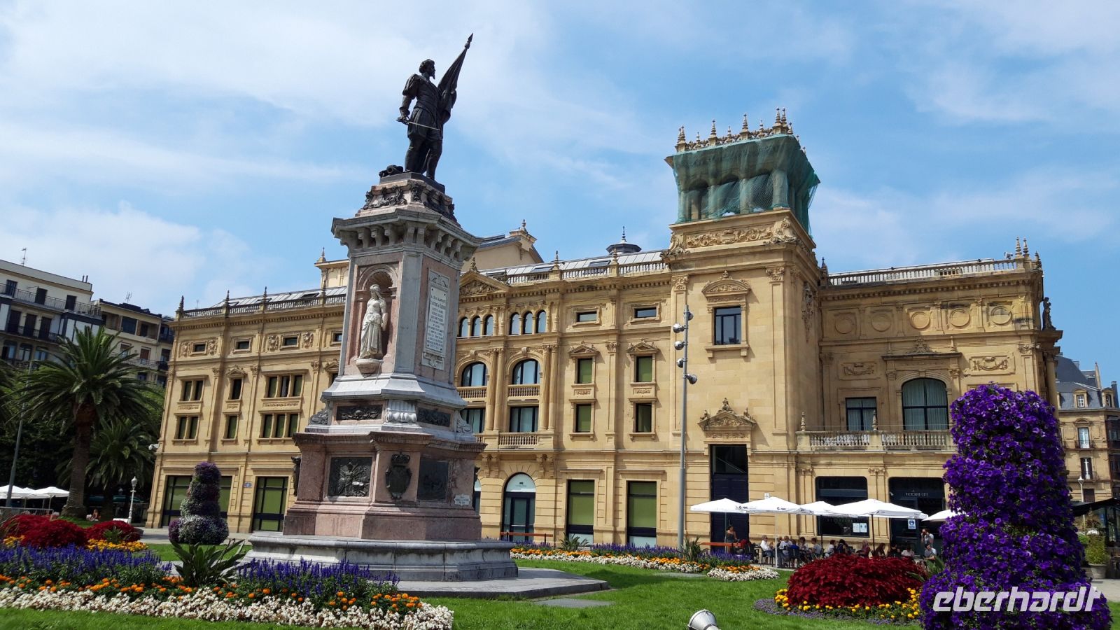 Wir beginnen unseren gemeinsamen Spaziergang am Palacio Miramar, den sich María Cristina von Österreich, die Witwe des Königs Alfons XII. 1886 errichten ließ und die Stadt somit ganz offiziell zum königlichen Seebad machte. Es folgten luxuriöse Hotels, Kursäle und Casinos und keine 30 Jahre später war San Sebastián kulturelles und kosmopolitisches Zentrum für die europäische Elite. Davon zeugt beispielsweise das alte Casino, das heute als Rathaus dient. Auf der Plaza Cervantes begegnen wir noch zwei ganz berühmten Spaniern: Don Quijote und seinem treuen Gefolgsmann Sancho Panza. Da die Stadt im Laufe ihrer Geschichte mehrmals Opfer von Bränden wurde, ist die Altstadt zwar klein, dafür aber umso pittoresker. Zusammen besuchen wir die Plaza de la Constitución, bei der uns sofort auffällt, dass die Balkons aller umliegenden Häuser nummeriert sind. Erklären lässt sich auch dies wieder mit dem Unternehmergeist der Basken: als auf dem Platz noch Stierkämpfe stattgefunden haben, vermieteten die Hausbesitzer ihre Balkons als teure Logen, von wo aus es die beste und gleichzeitig sicherste Aussicht auf das Kampfgeschehen gab.