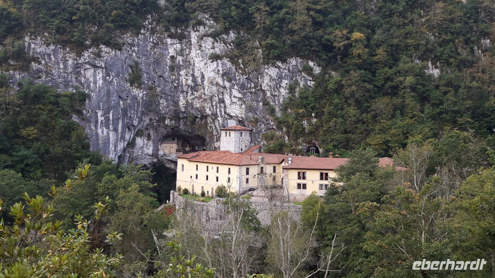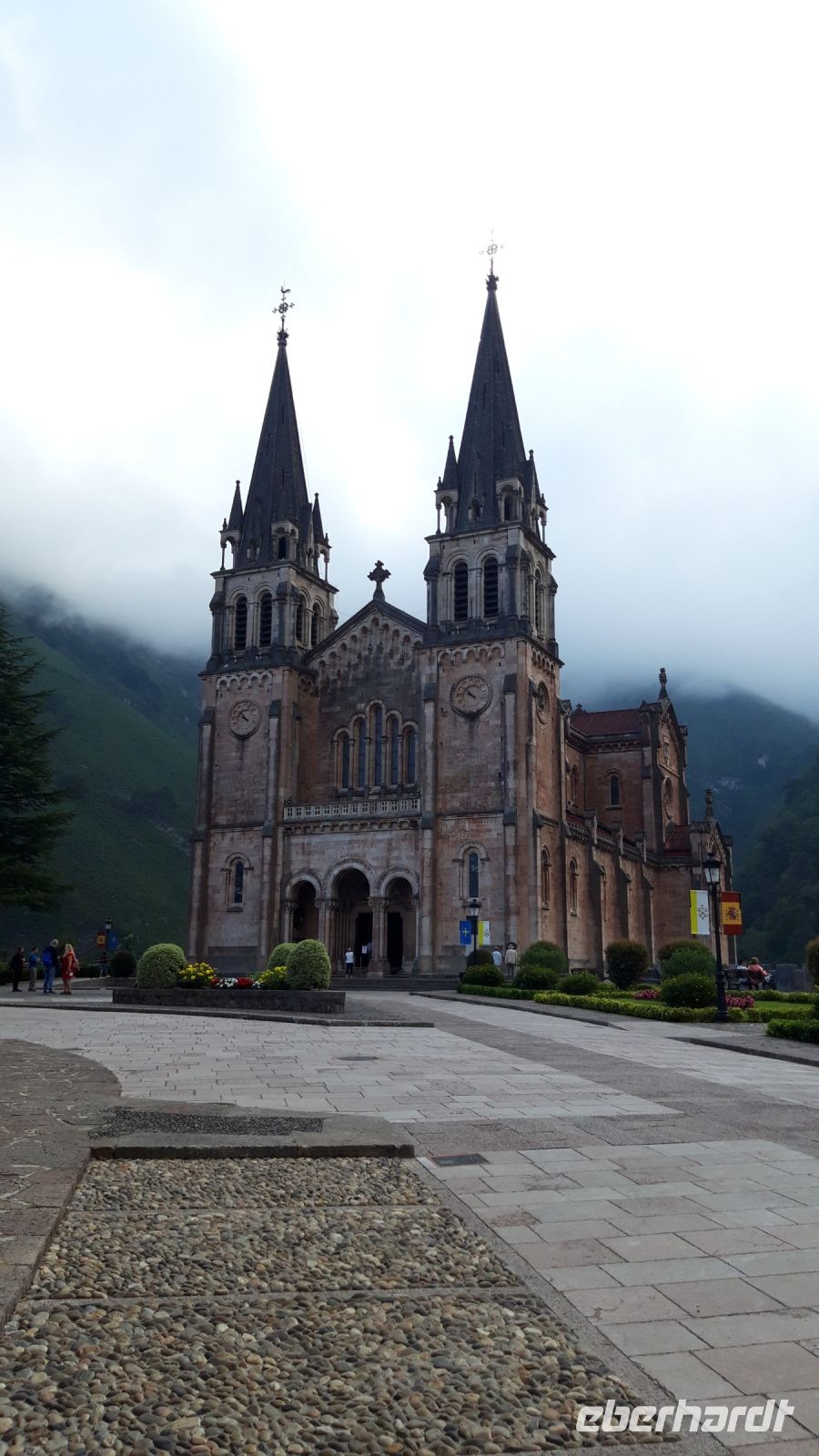 Das schöne Hotel am Meer müssen wir leider nach einer Nacht schon wieder verlassen, dafür geht es noch einmal zurück in den Nationalpark Picos de Europa, genauer gesagt nach Covadonga. Der Wallfahrtsort mitten in den Bergen ist schon seit Jahrhunderten wichtiger Anlaufpunkt der Jakobspilger auf dem Camino del Norte. Hier soll es zudem gewesen sein, wo der Gotenfürst Pelayo sich 722 erfolgreich gegen die maurischen Besatzer aufgelehnt hat und somit den Anfang der Reconquista, sowie das Königreich Asturien begründete. Wie sich die Begebenheit tatsächlich zugetragen hat, das kann heute keiner mehr nachvollziehen, sicher ist nur, dass sich die christliche und die maurische Version der Geschichte doch deutlich voneinander unterscheiden. Wie auch immer die Wahrheit gewesen sein mag, die wundertätige Jungfrauendarstellung wird auch von uns begutachtet, genauso wie die zugehörige neuromanische Kirche, die im 19. Jahrhundert aufgrund des erhöhten Pilgeraufkommens erbaut wurde.