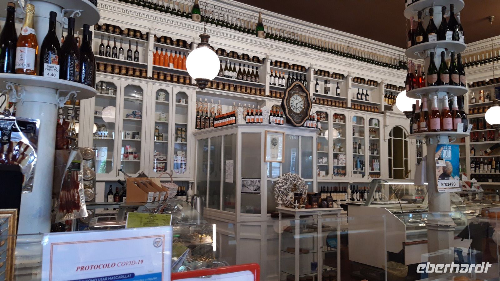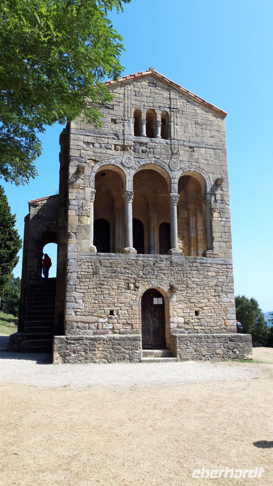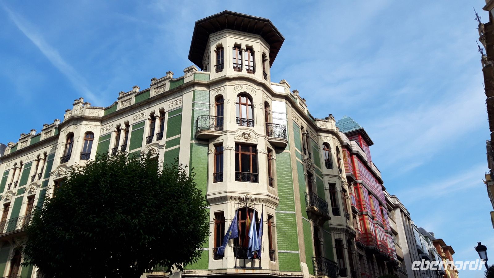 Zurück in Covadonga werden wir abgeholt von Rafa und die Fahrt geht nun weiter in die Hauptstadt Asturiens, Oviedo. Wir treffen Stadtführerin Elena und fahren zusammen weiter auf den Hausberg Naranco. Von dort hat man nicht nur eine fantastische Sicht auf die Stadt, dort befinden sich auch zwei der wichtigsten vorromanischen Bauwerke der spanischen Kunstgeschichte: Santa María del Naranco und San Miguel de Lillo. Ausführlich erklärt uns Elena die architektonischen Besonderheiten, bevor wir in die Stadt hinunter fahren und dort einen gemeinsamen Spaziergang machen. Als Hauptstadt des Königreichs Asturien und Zentrum des Widerstands gegen die maurische Herrschaft auf der iberischen Halbinsel war Oviedo Ausgangsort des ersten und „originalen“ Pilgerwegs nach Santiago de Compostela. Auf 310 anspruchsvollen Kilometern führt der Camino Primitivo mitten durch das Kantabrische Gebirge und ist damit so anspruchsvoll, dass nur 4% der Pilger diesen Weg wählen. Unser Spaziergang durch die schöne Altstadt Oviedos ist weitaus angenehmer und neben der Kathedrale San Salvador sehen wir auch die Plaza de Daoíz y Velarde mit ihren farbenfrohen Häusern sowie die Jugendstilhäuser der Neustadt aus dem 19. Jahrhundert. Wir spazieren dann zusammen durch den Stadtpark und auf dem Rückweg zum Bus führt uns Elena dann noch zur Bäckerei Camilo de Blas: nicht nur deren Mandeltörtchen sind über die Stadtgrenzen hinaus bekannt, sondern auch die von 1914 original erhaltene Inneneinrichtung des Geschäfts einfach unglaublich schön.