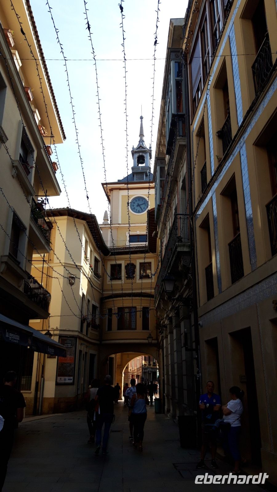 Den ehemaligen Weg der Schiffe verfolgen wir nun auch mit dem Bus, circa 15 Kilometer dem Flusslauf folgend, bis zum alten Zollhaus in der Innenstadt. Unterwegs können wir uns überzeugen von den fortlaufenden Veränderungen, die sich heute noch immer in der Stadt vollziehen: verlassene und zerfallende Industriegebäude weichen neuen, modernen Wohnkomplexen und Kultureinrichtungen. Schließlich erreichen wir die Altstadt, auch Siete Calles genannt, wo wir zunächst einen kleinen Stopp in der Markthalle einlegen und dann unsere Erkundungen zu Fuß fortsetzen. Vor der Kathedrale landen wir zum ersten Mal auf der Reise ganz unbedarft auf dem Jakobsweg – ein Umstand, der uns für den Rest der Reise begleiten wird, doch dazu später mehr.